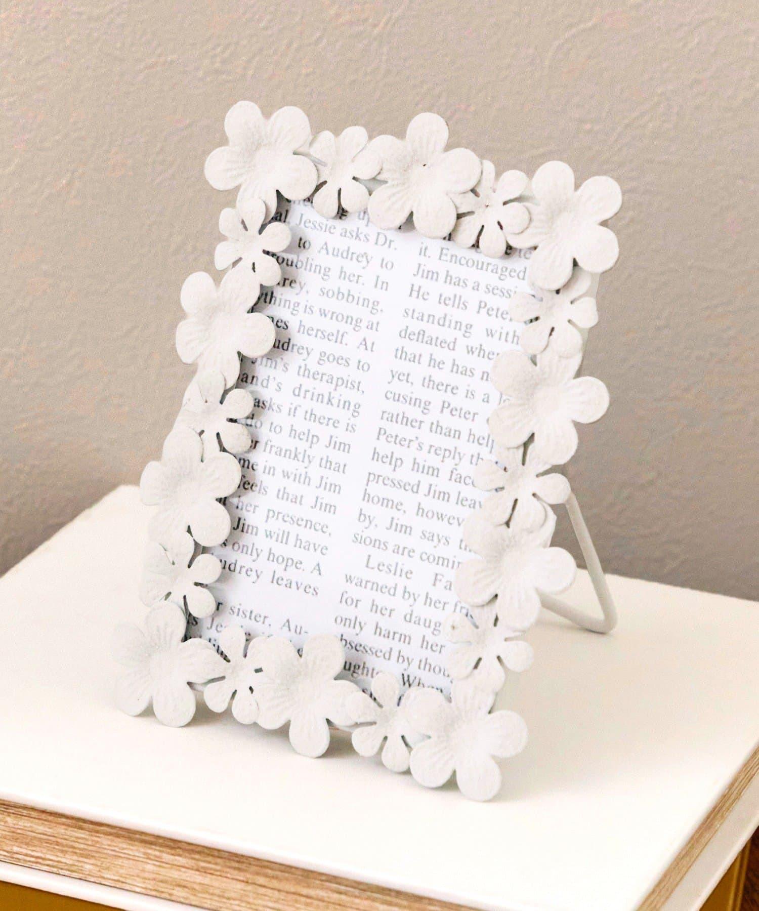 相框上的花朵圖案給人留下深刻印象,整個相框都有花朵裝飾。
