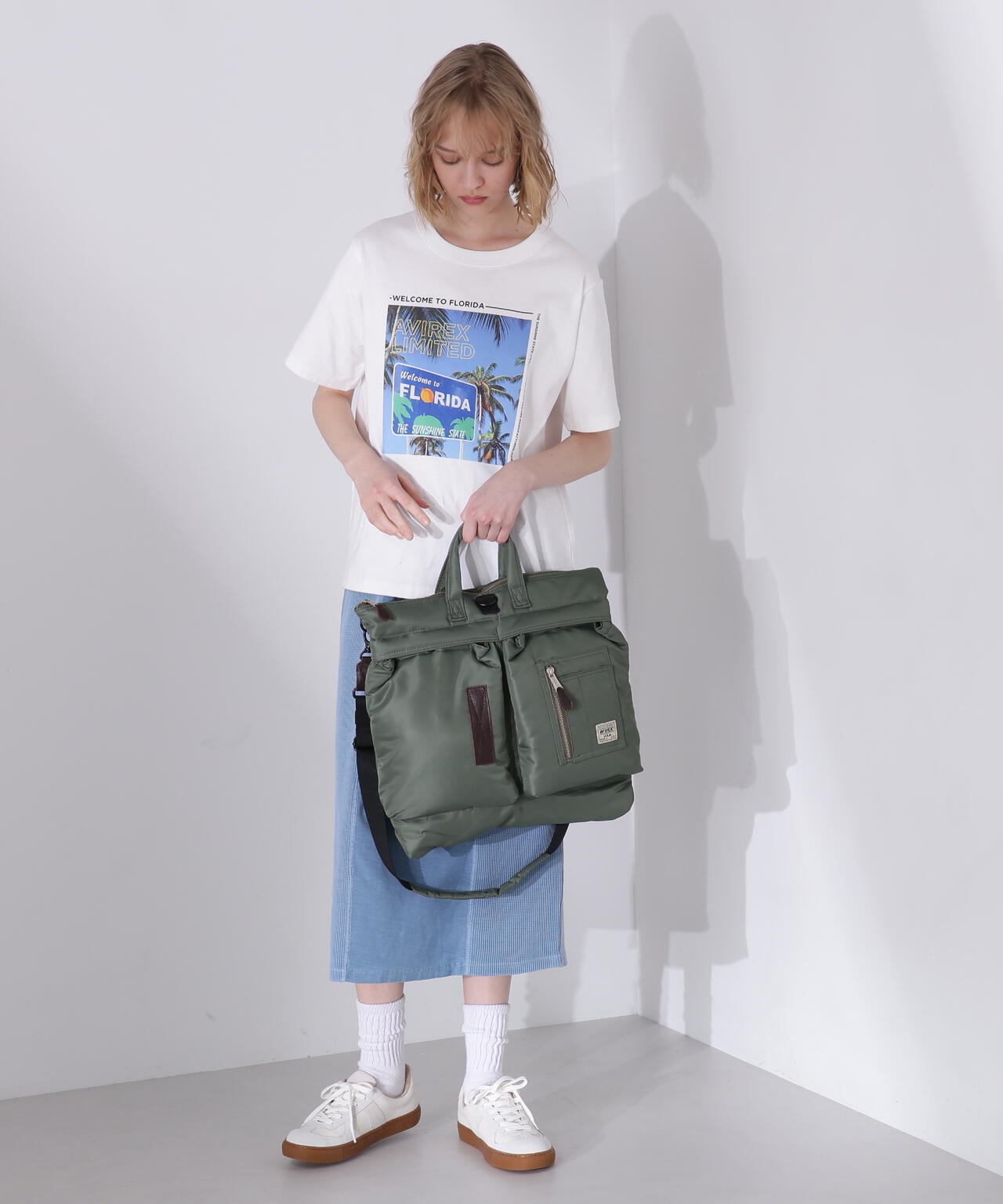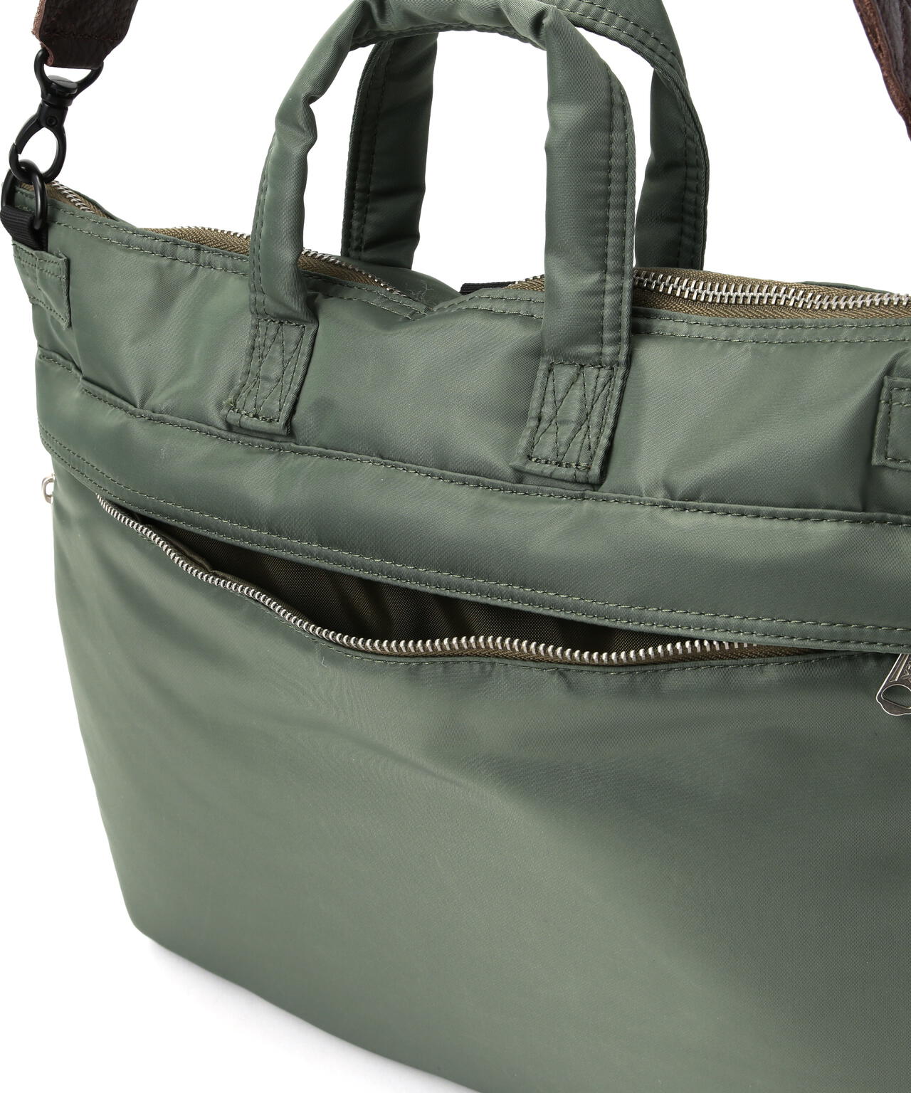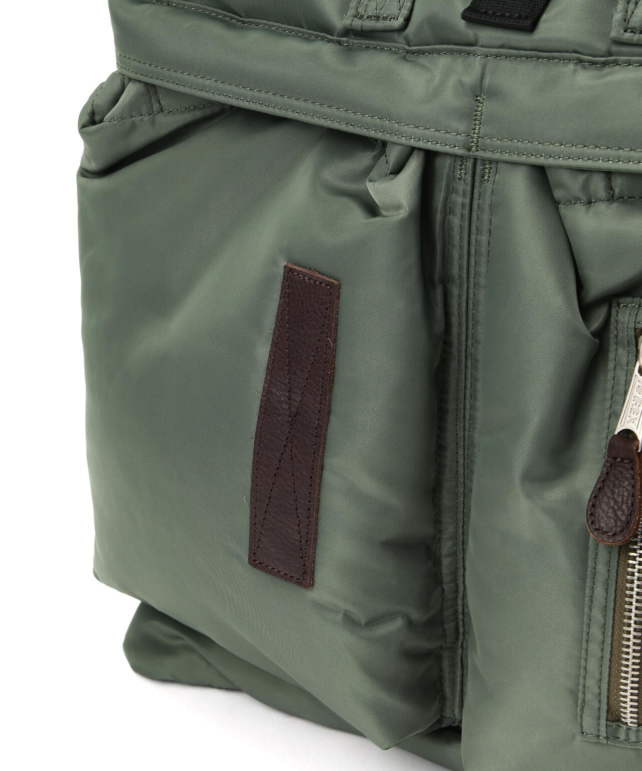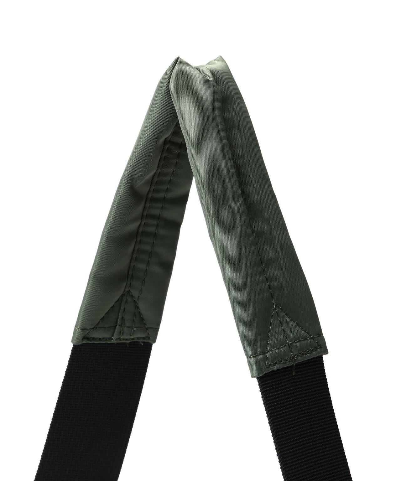 <設計融合了 MA-1 的雪茄袋,尼龍斜紋布(表層)+滌棉(中層)+襯裡(反面)的三層面料展現了 MA-1 的質感。主隔層採用了現代風格,可容納筆記本電腦和平板電腦,肩部縫製了襯墊,減輕了肩部負擔。