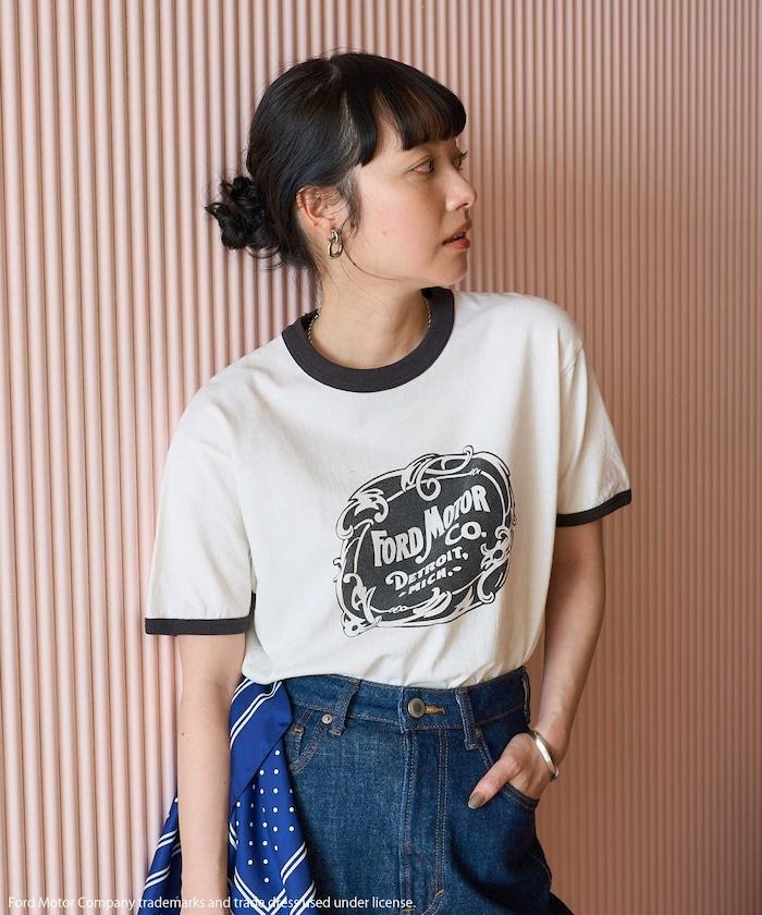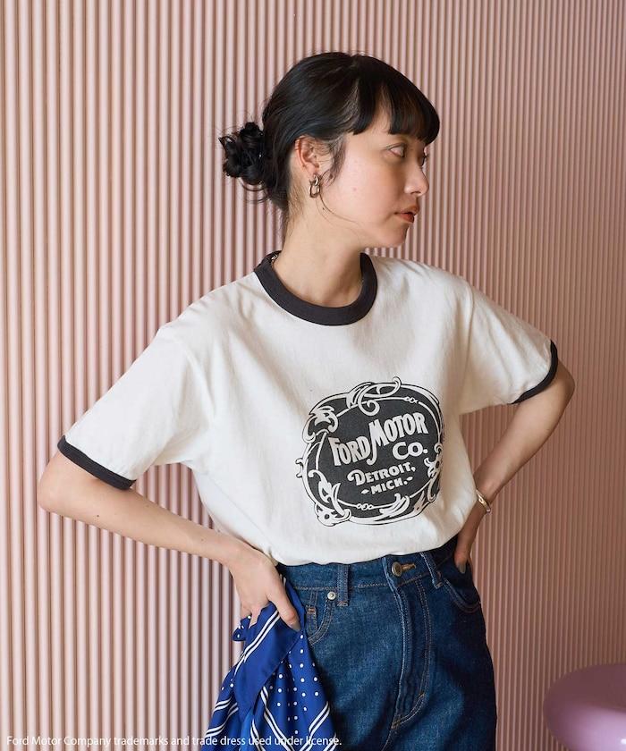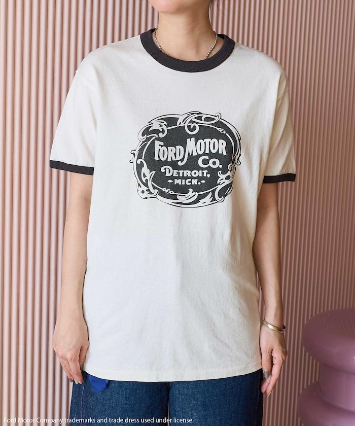 印有復古汽車和美國汽車製造商福特標誌的 Ringer T 恤。