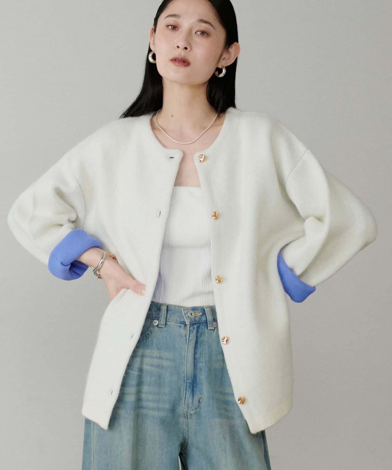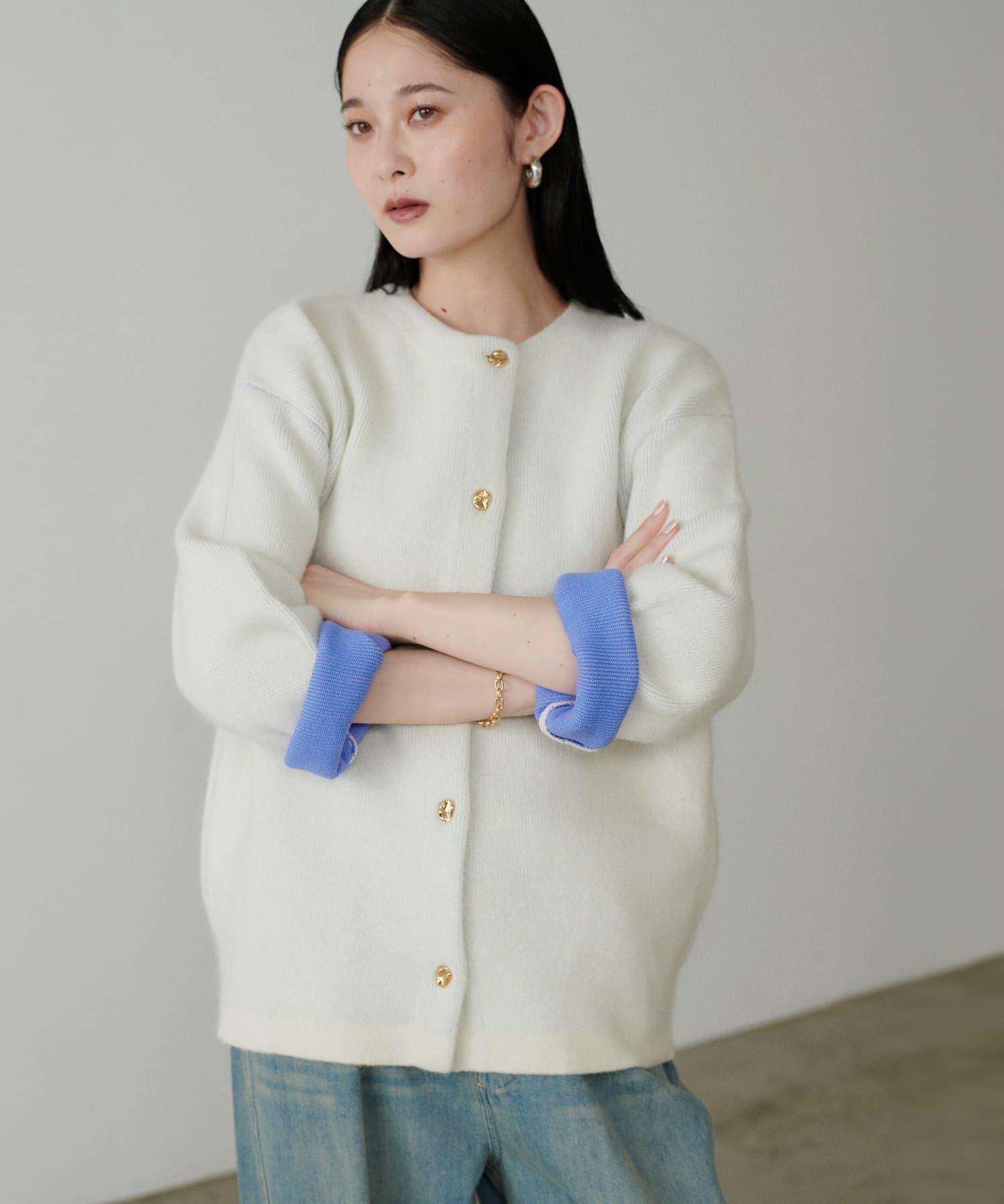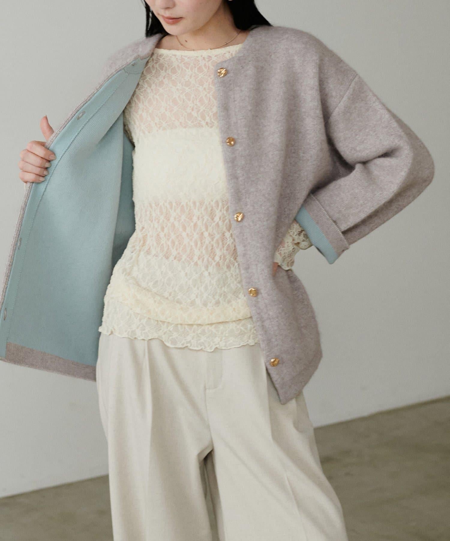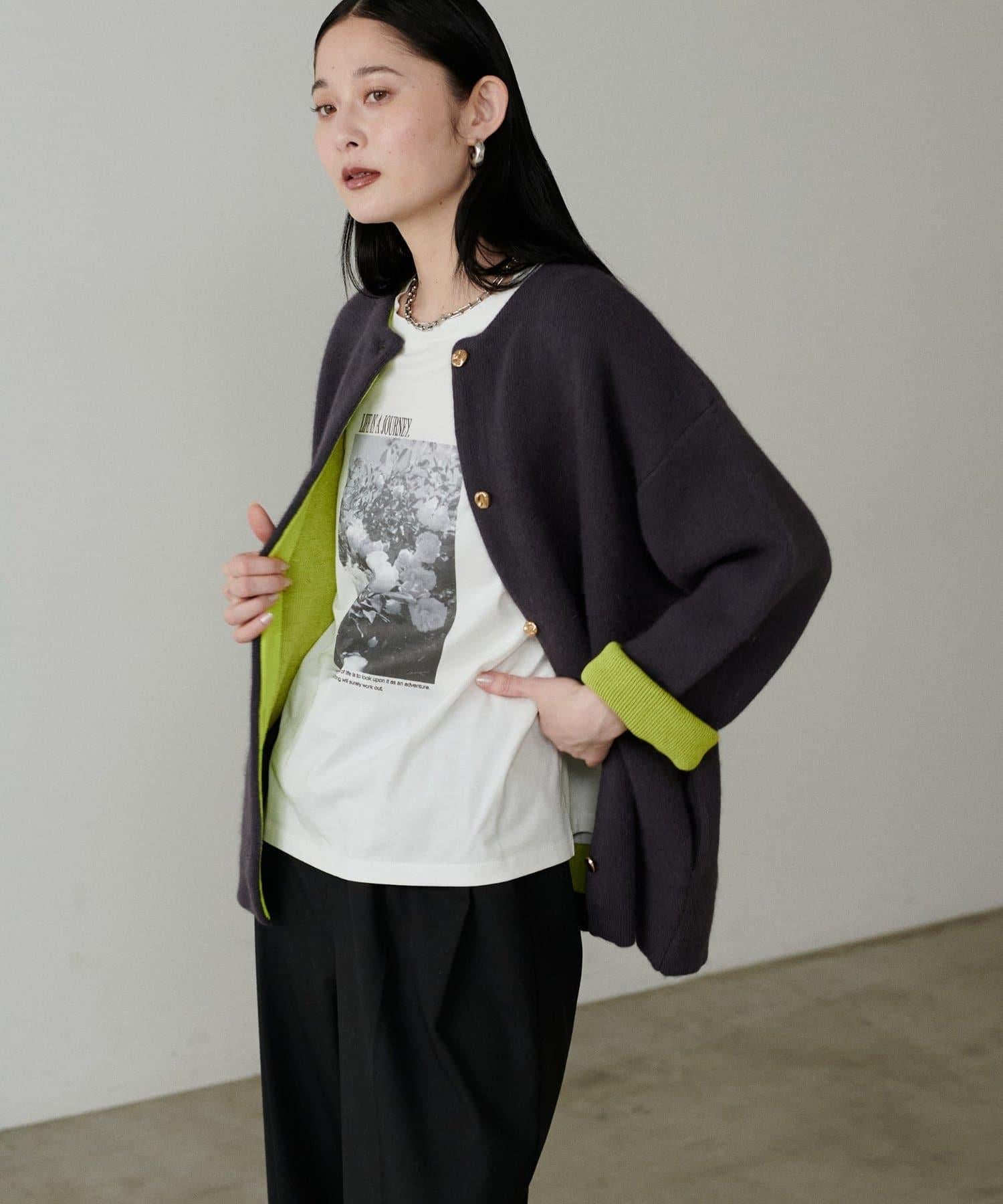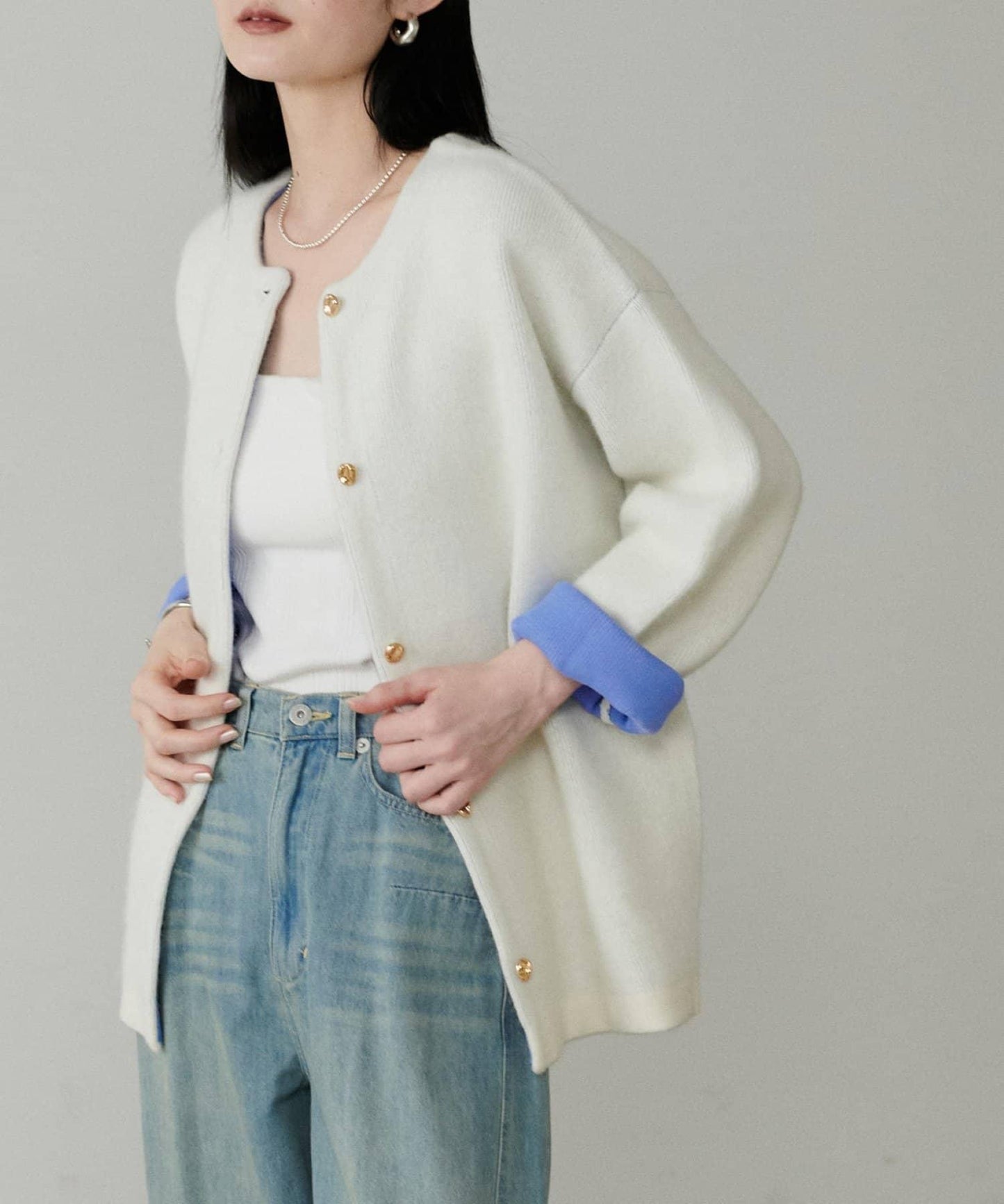 開衫內側採用雙面剪裁設計,配色豐富,可打開紐扣穿著、