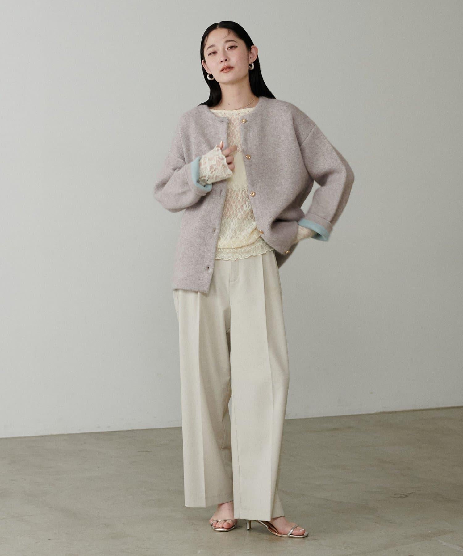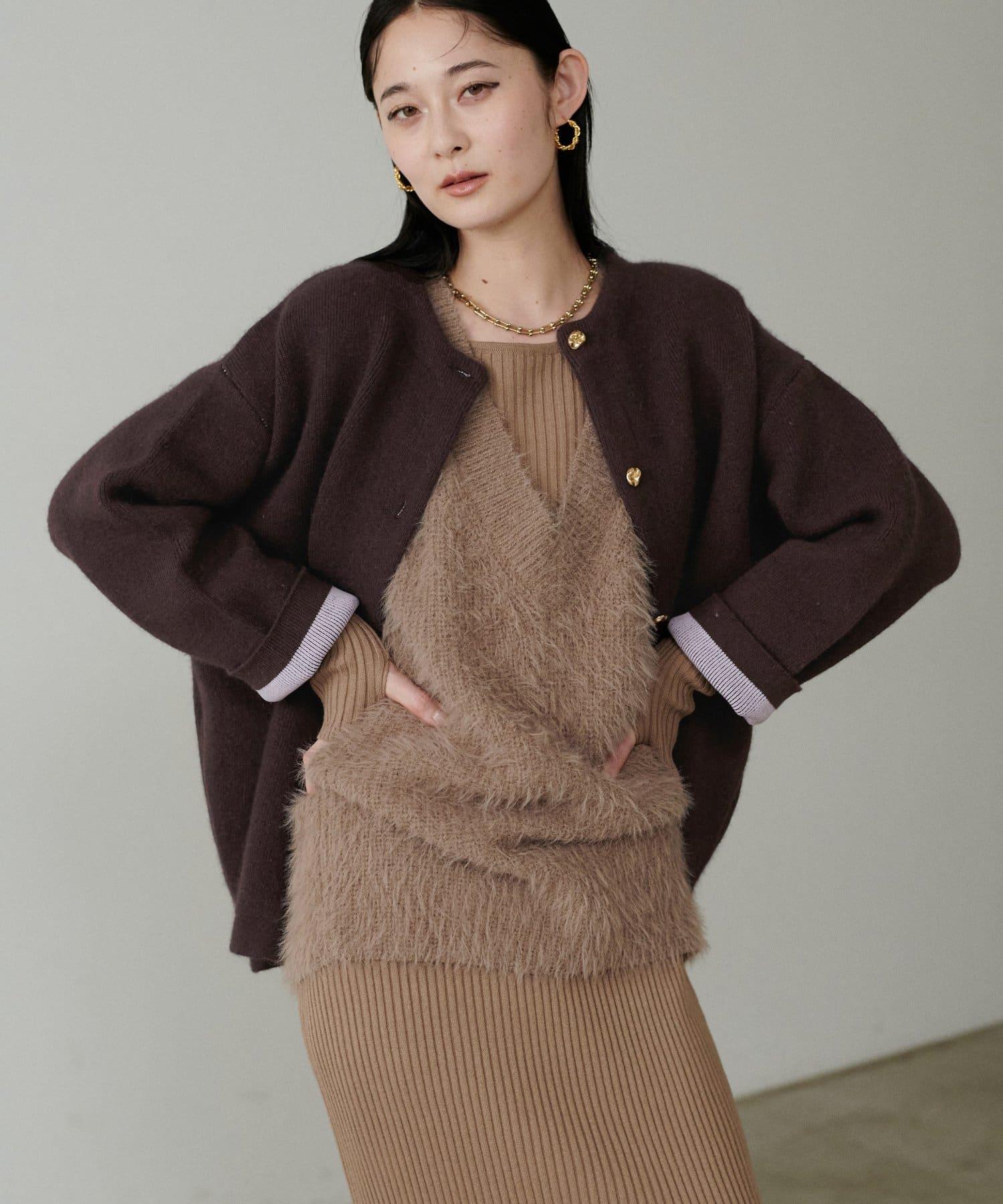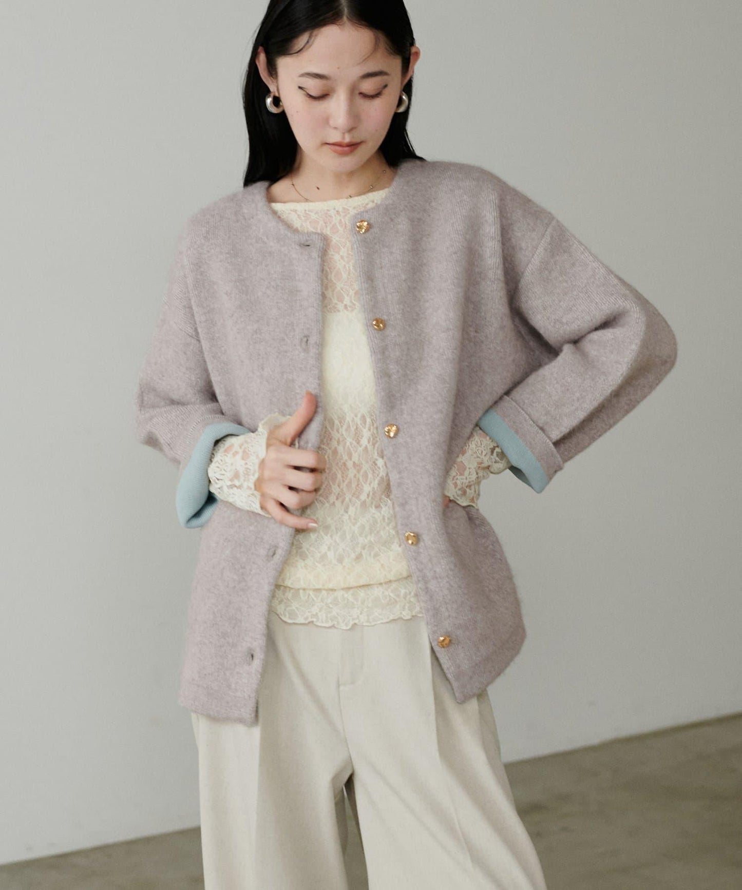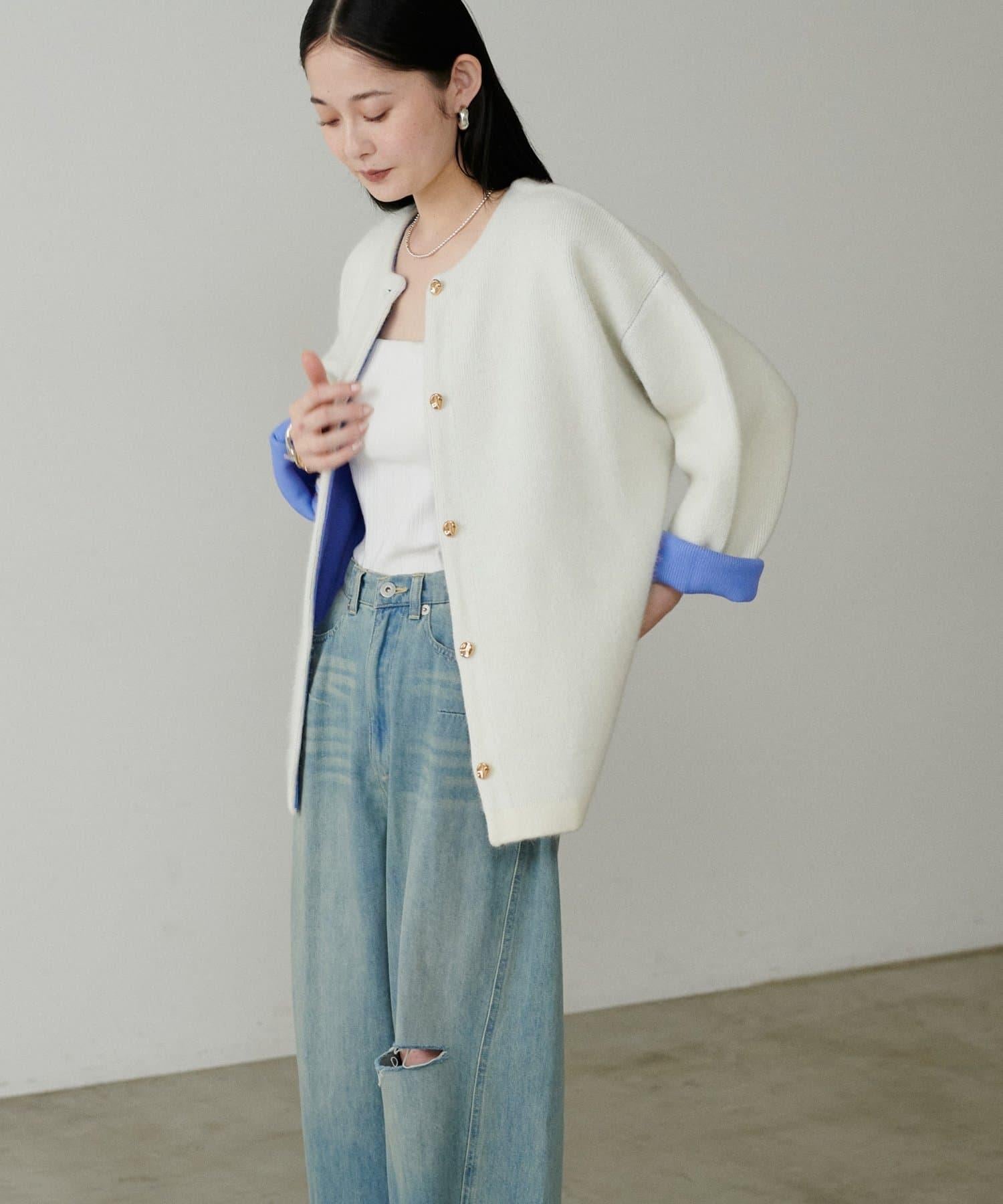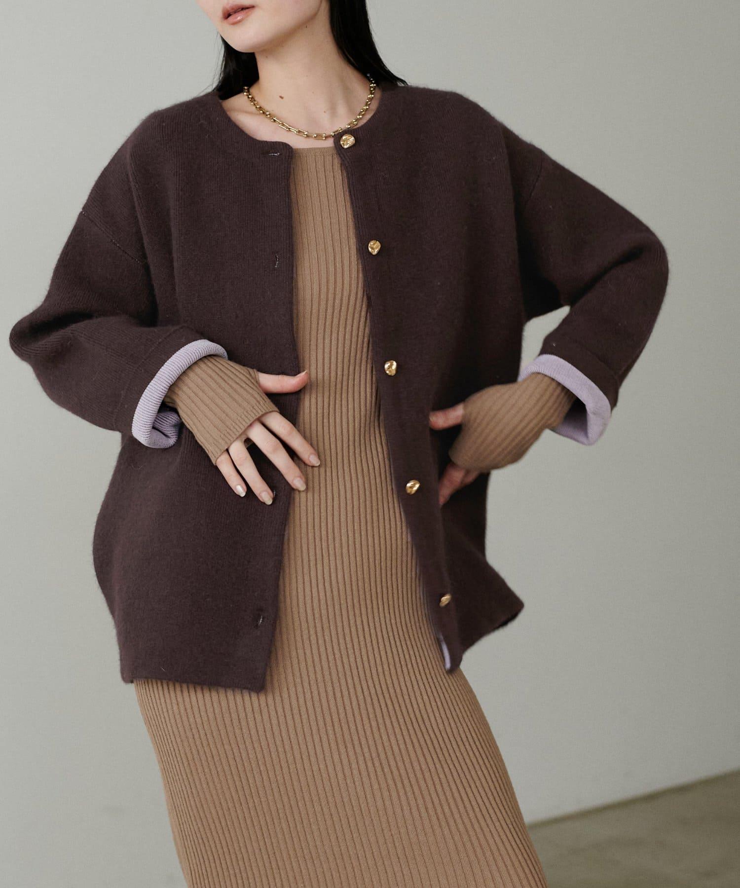 開衫內側採用雙面剪裁設計,配色豐富,可打開紐扣穿著、