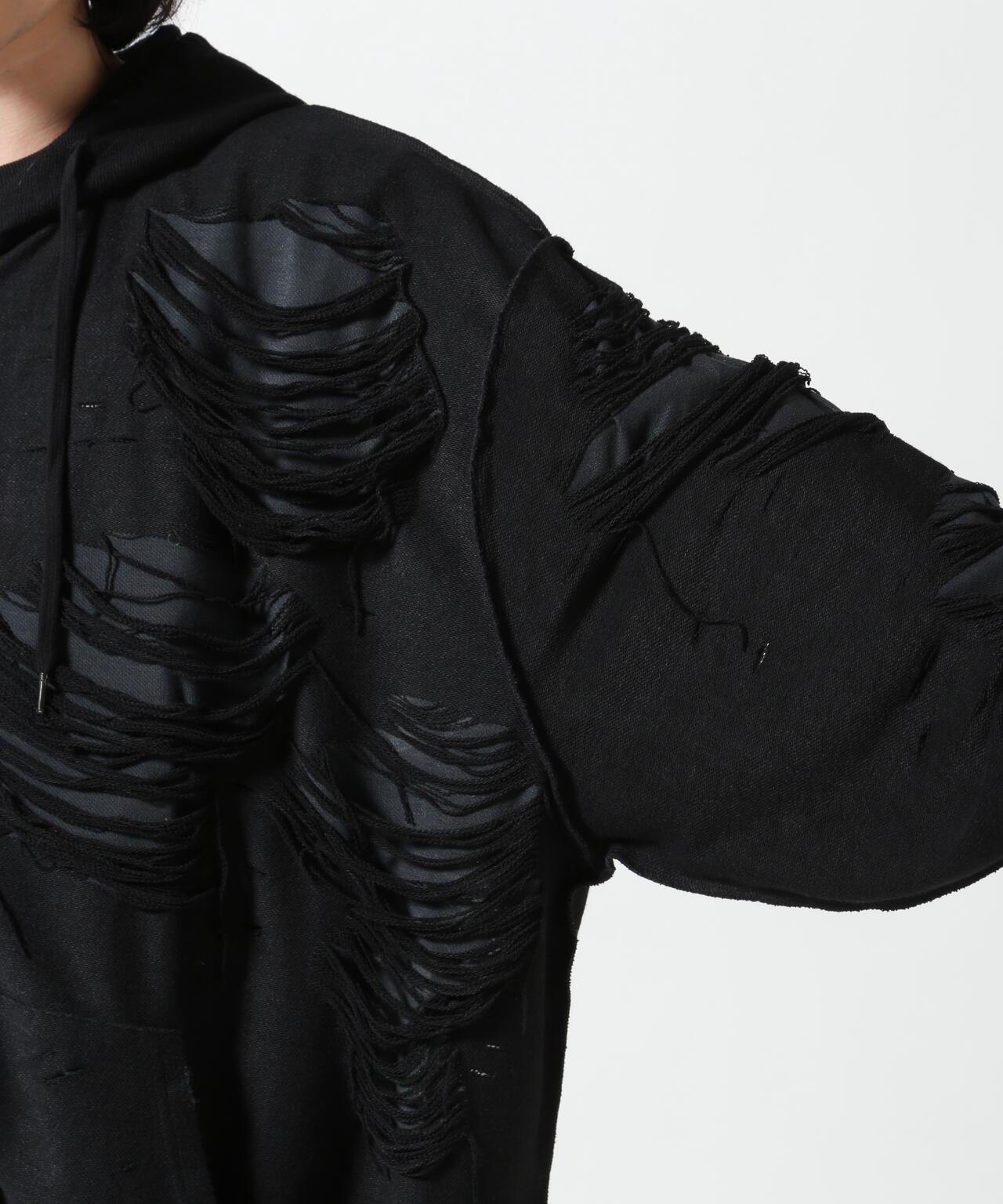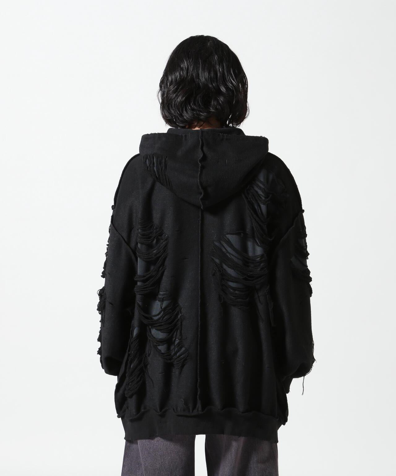 這款派克大衣的規格由內而外,彷彿敢於將它翻轉過來。寬鬆的超大剪裁,寬鬆的衣身、臂幅和垂肩。灰色內襯從衣身和手臂部位大膽採用的破損處理中露出來。 fr(13)nds/friends 一個未知數,既有 "力量的象徵"、"更上一層樓 "等各種情感和表達方式,又與 "恐懼"、"厄運 "聯繫在一起。這就是(13)。 我們希望成為朋友,承認彼此的個性,不斷向新的方向發展,並相互促進。 FR(13)NDS "正是基於這一理念而誕生的。 通過感同身受和分享無數朋友眼中的新事物和新事件,我們可以創造一個自我表達和自我發展的新世界。
