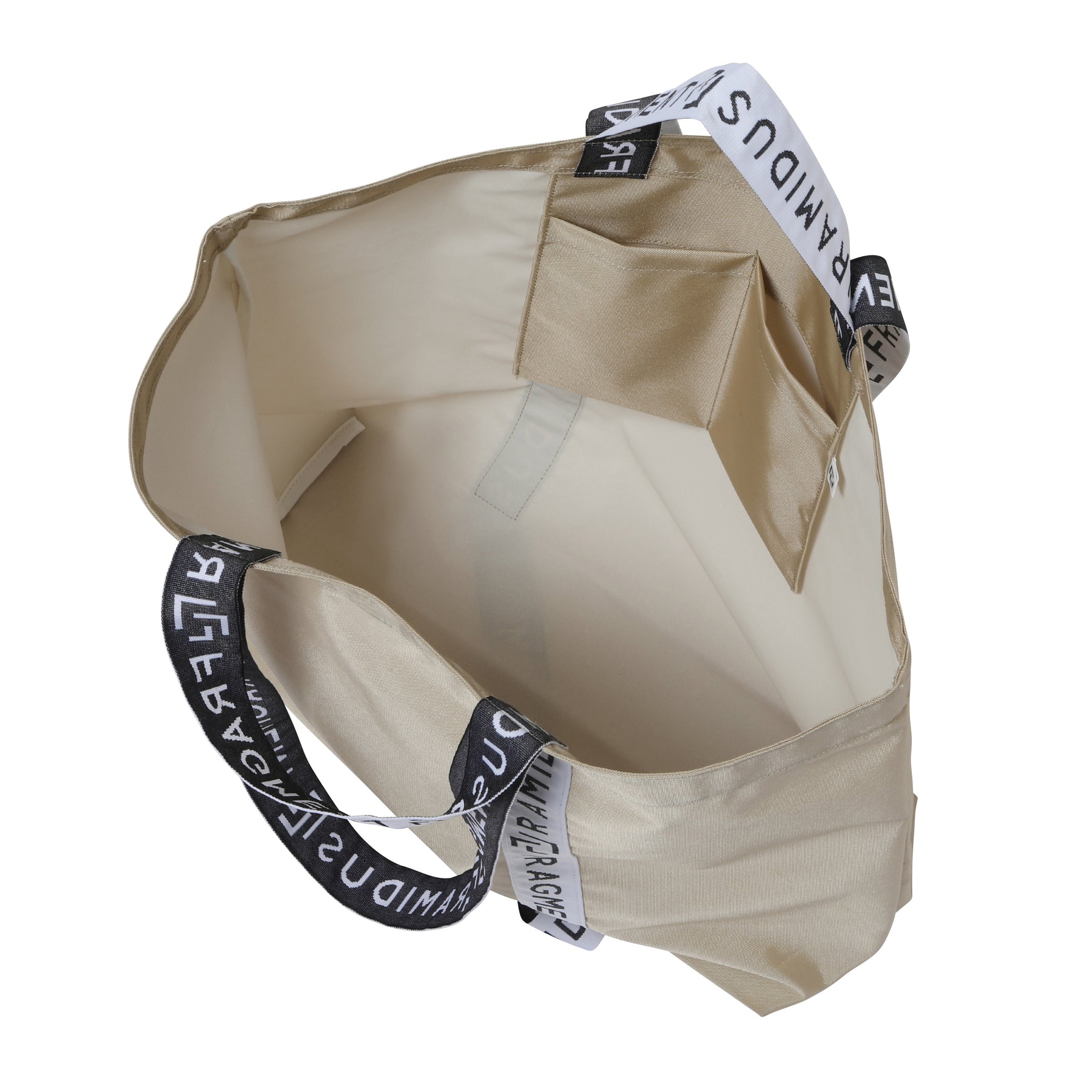 手提包有足夠的容量供日常使用,可手提或肩背,有一個不間斷的膠帶手柄,特殊的設計象徵著與fragment design的合作,兩個品牌的logo編織在手柄上。