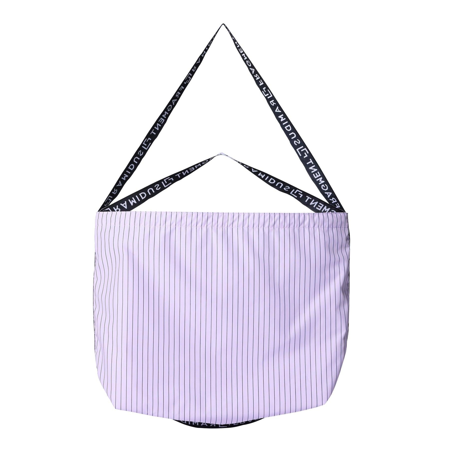雙肩揹包,雙肩帶設計,可肩挎或斜挎。肩帶由一條無斷裂的膠帶製成,並採用提花織法編織出兩個品牌的標誌,象徵著品牌與 fragment design 的合作。內部。