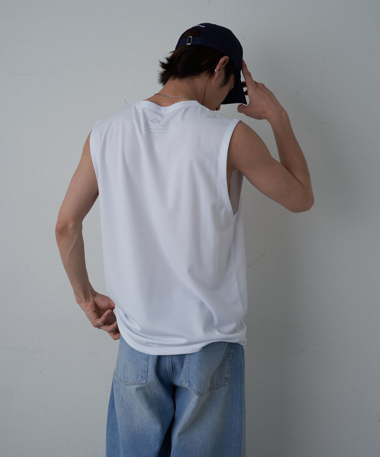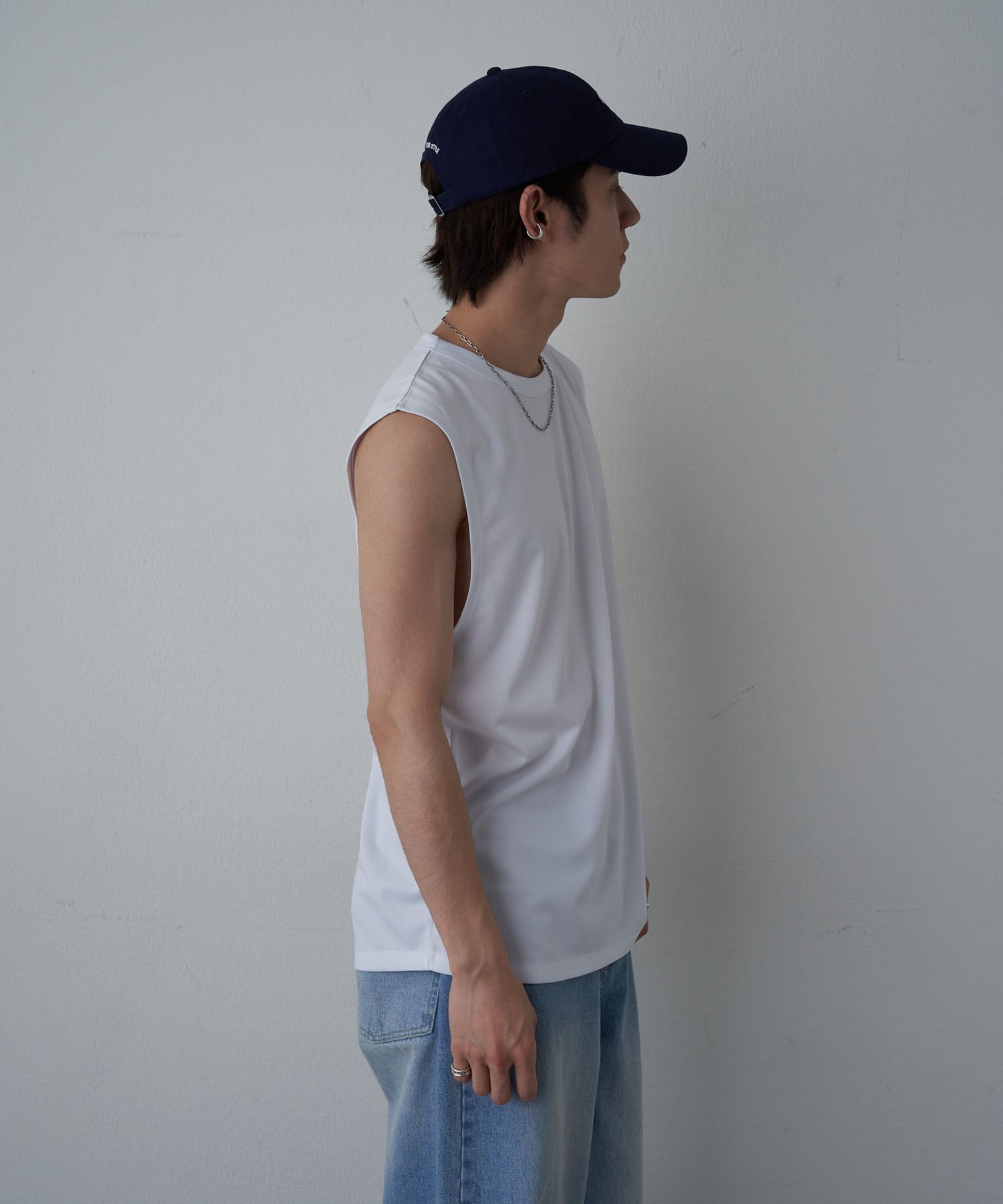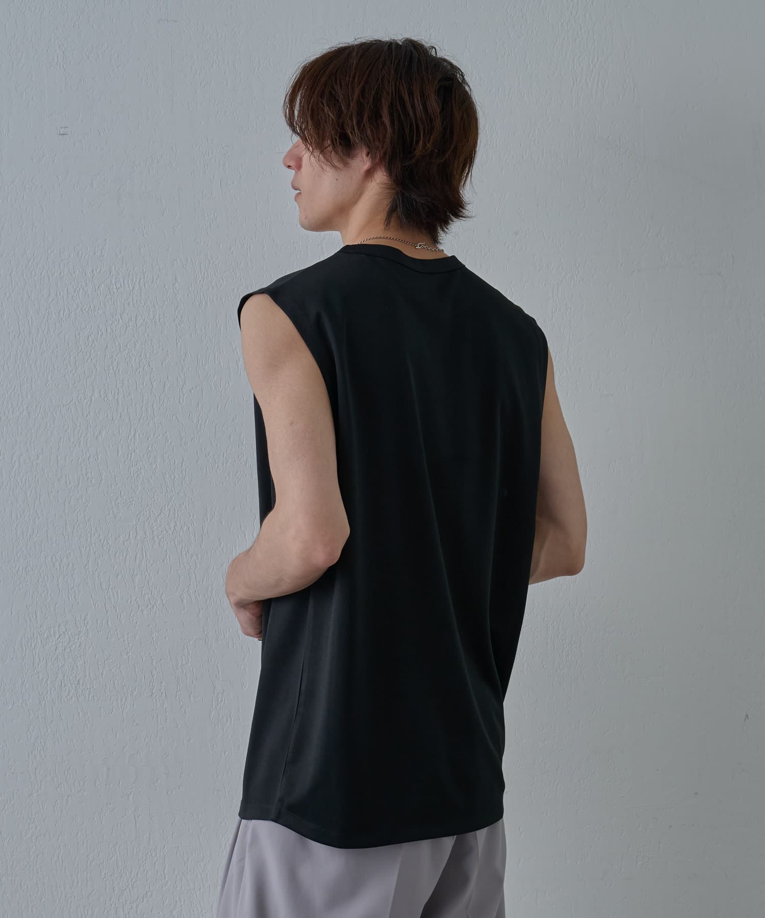 這款無袖服裝採用蓬布製成,手感順滑、富有彈性且快乾。