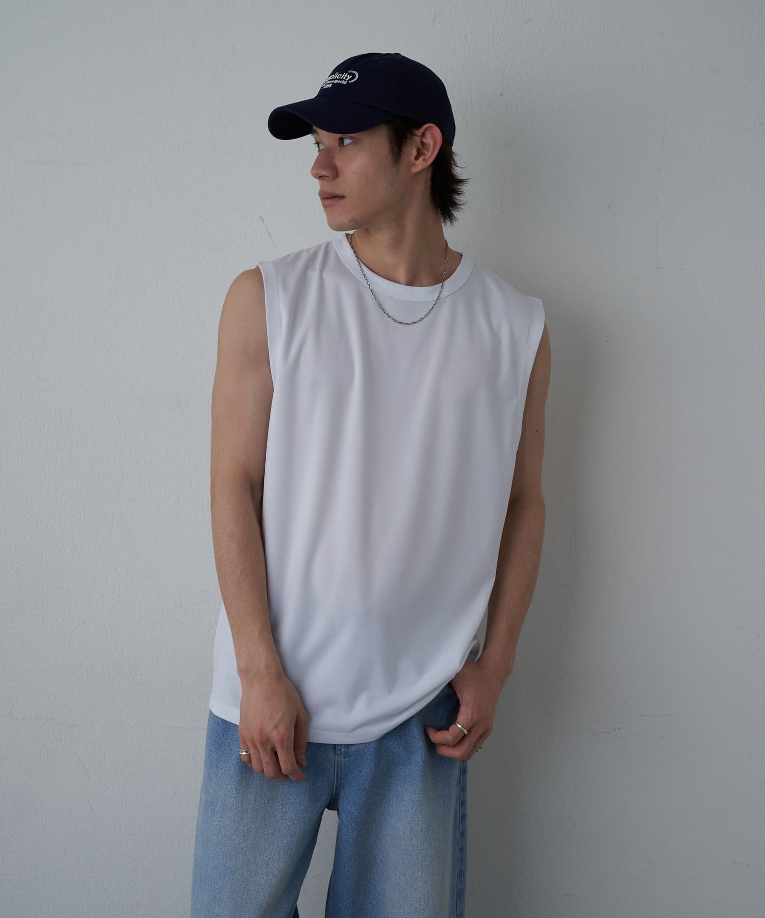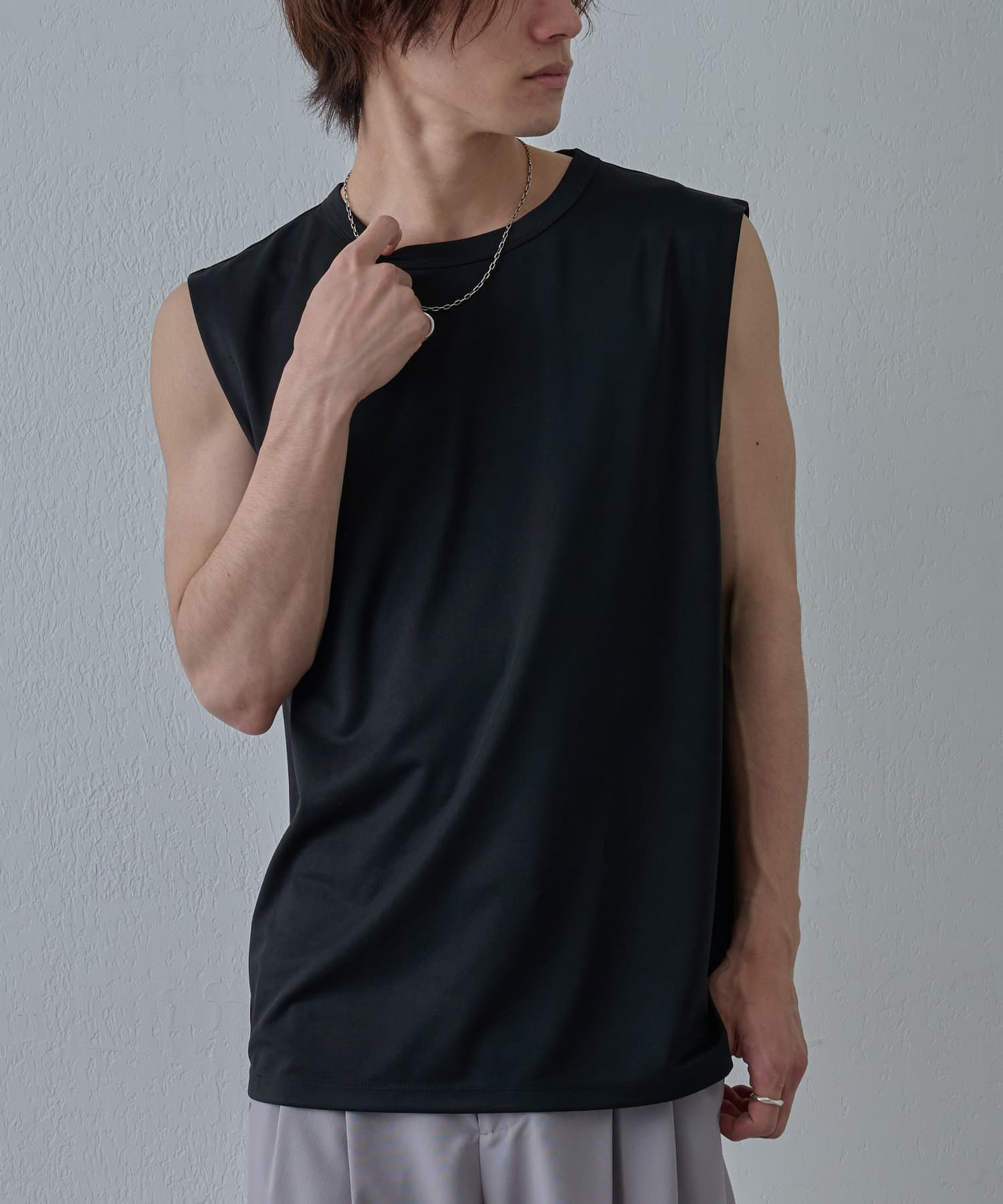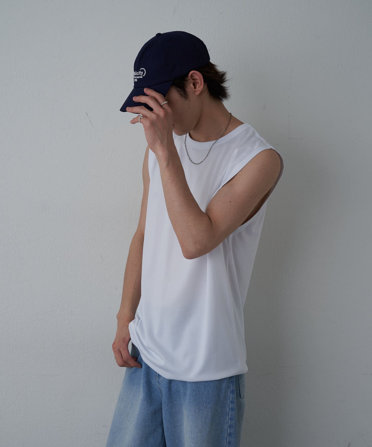 這款無袖服裝採用蓬布製成,手感順滑、富有彈性且快乾。