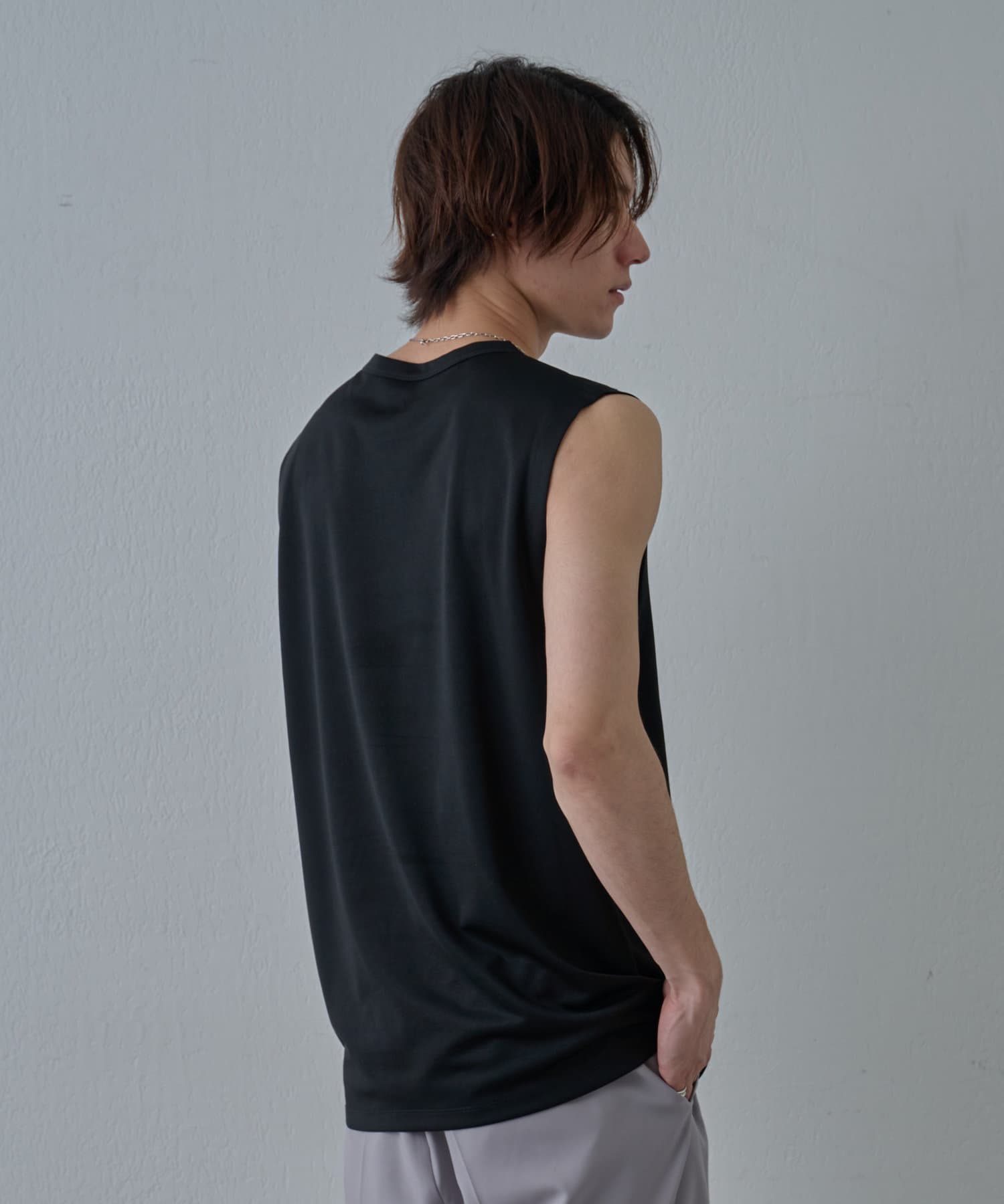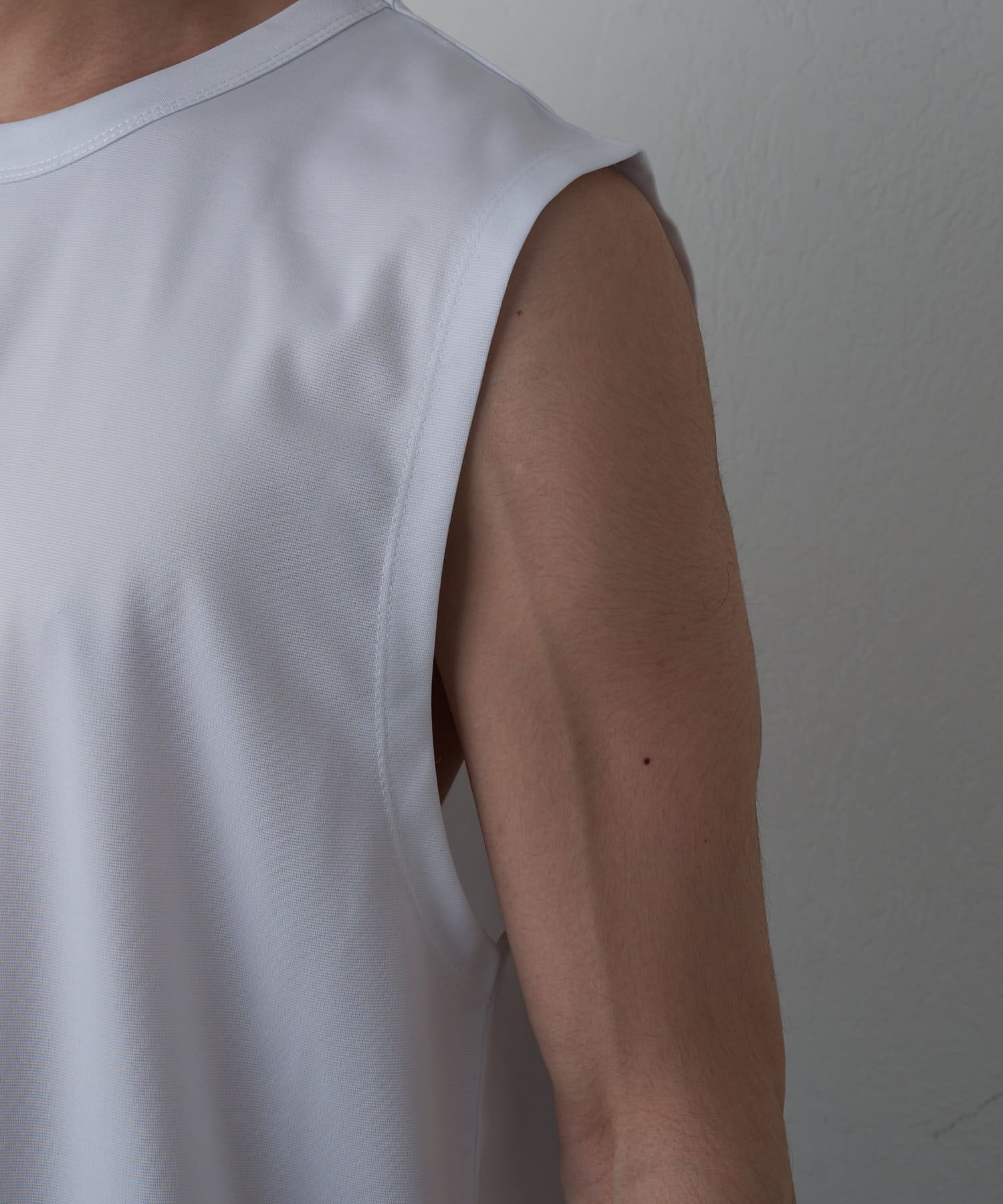 這款無袖服裝採用蓬布製成,手感順滑、富有彈性且快乾。