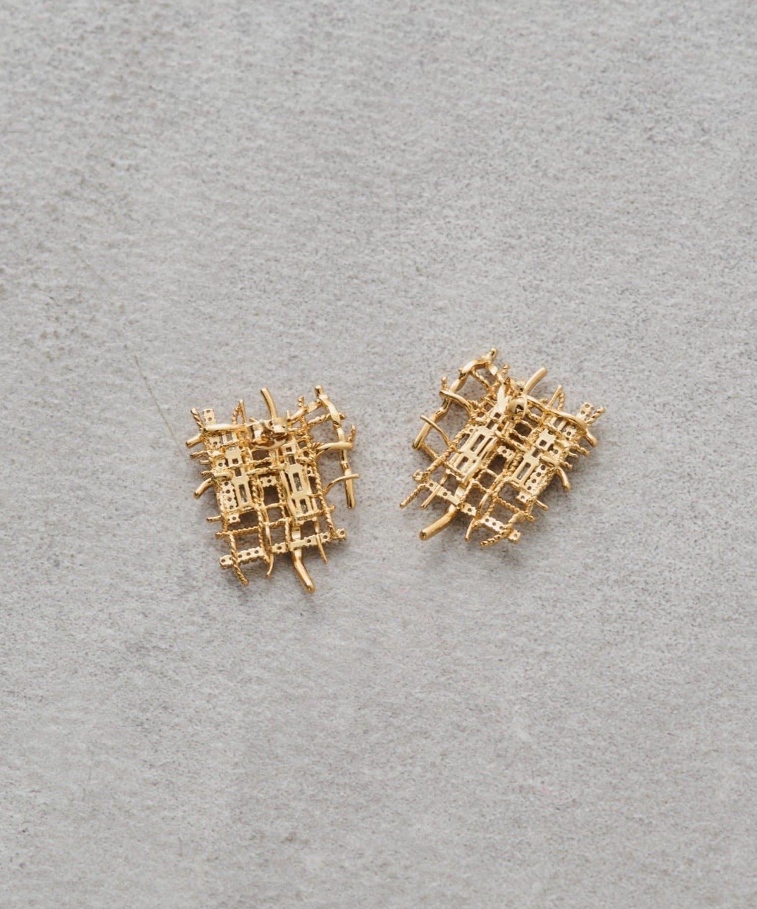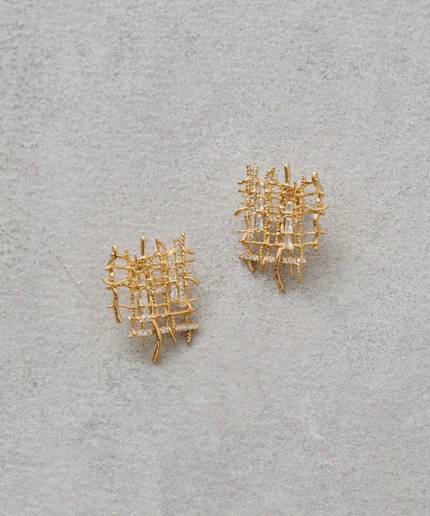 這款獨具匠心的網格設計耳環猶如用金線編織而成的迷宮。