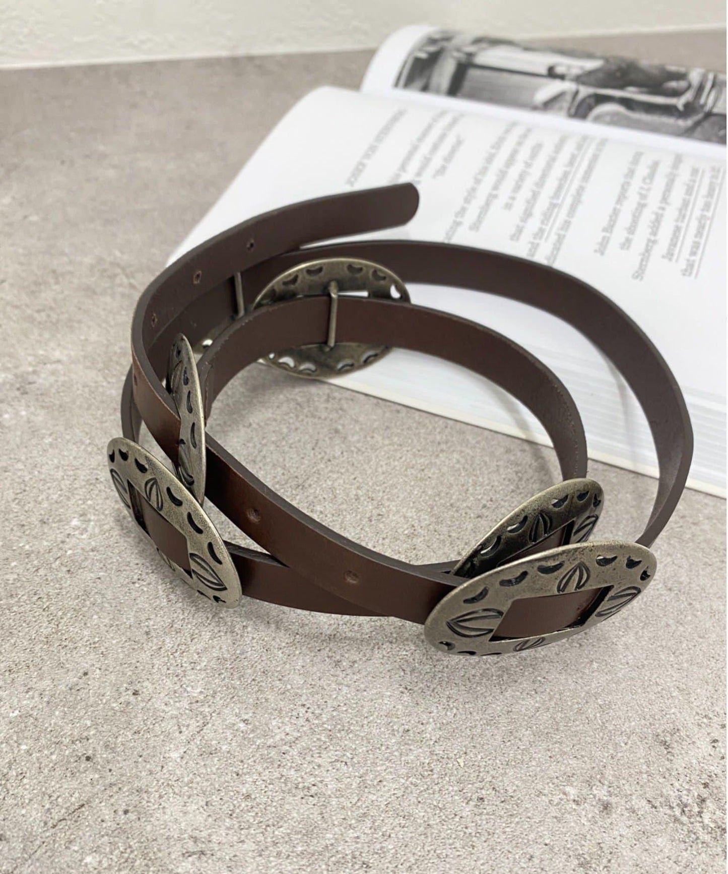 纖細腰帶上的海螺圖案閃耀著微妙而強烈的存在感,為簡單的造型增添了一絲精緻感。