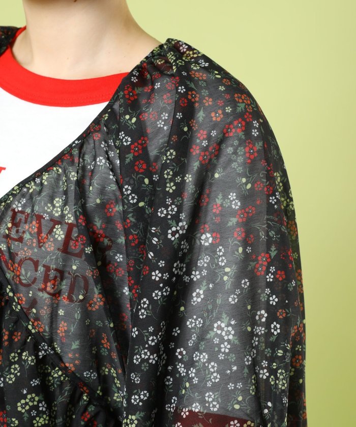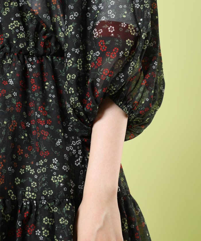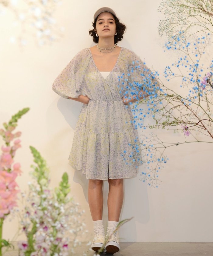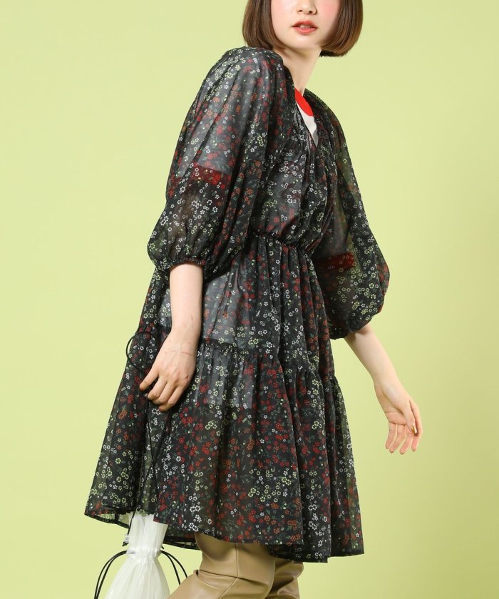 春意盎然的層疊連衣裙,採用透視材質和花卉圖案。