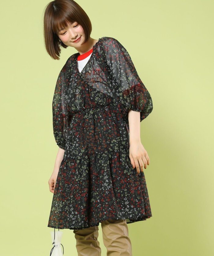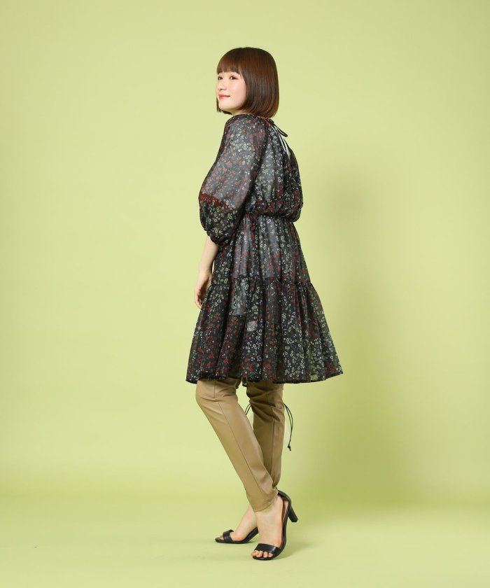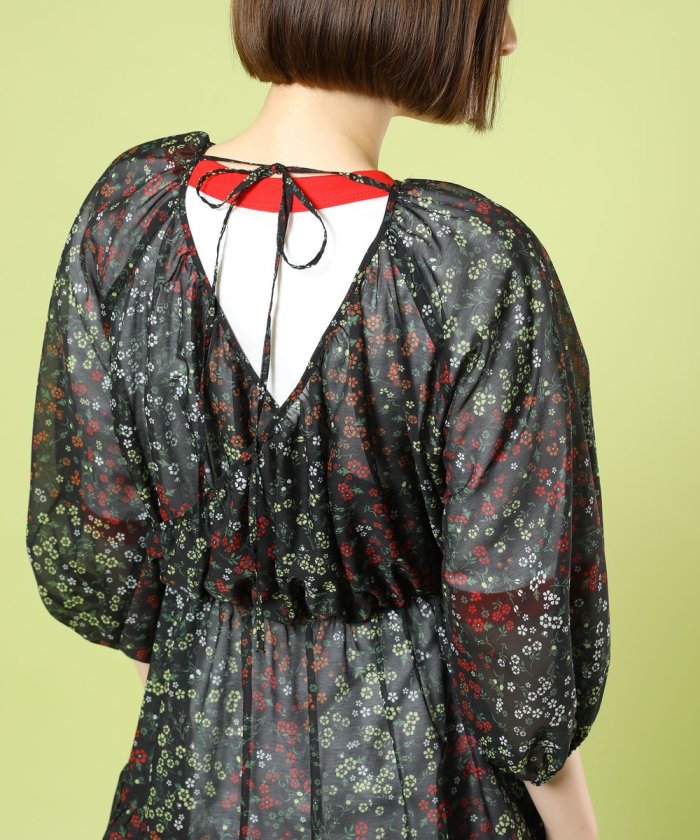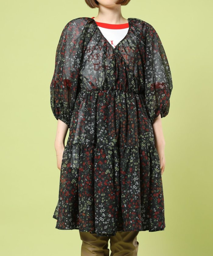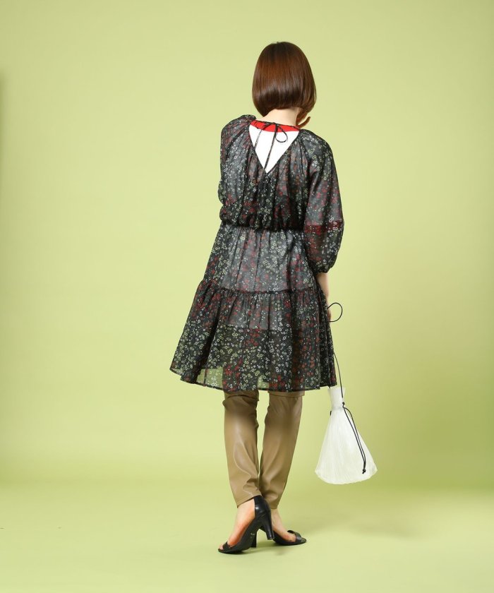 GARDEN花紋層疊連衣裙