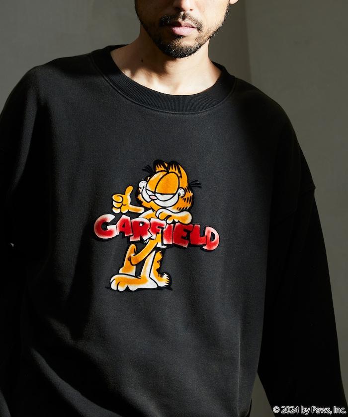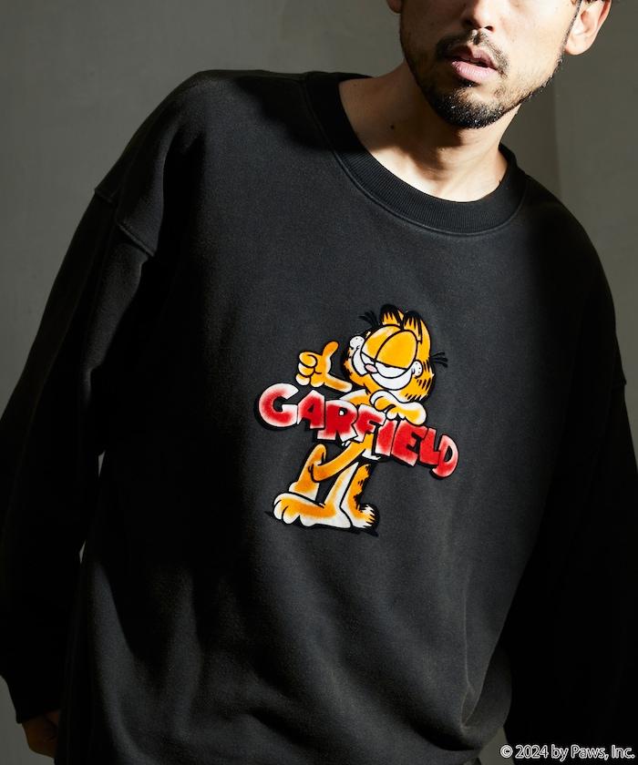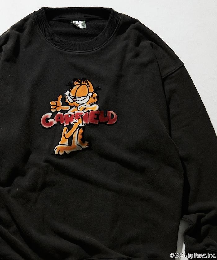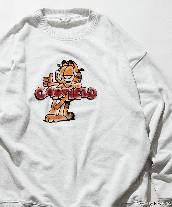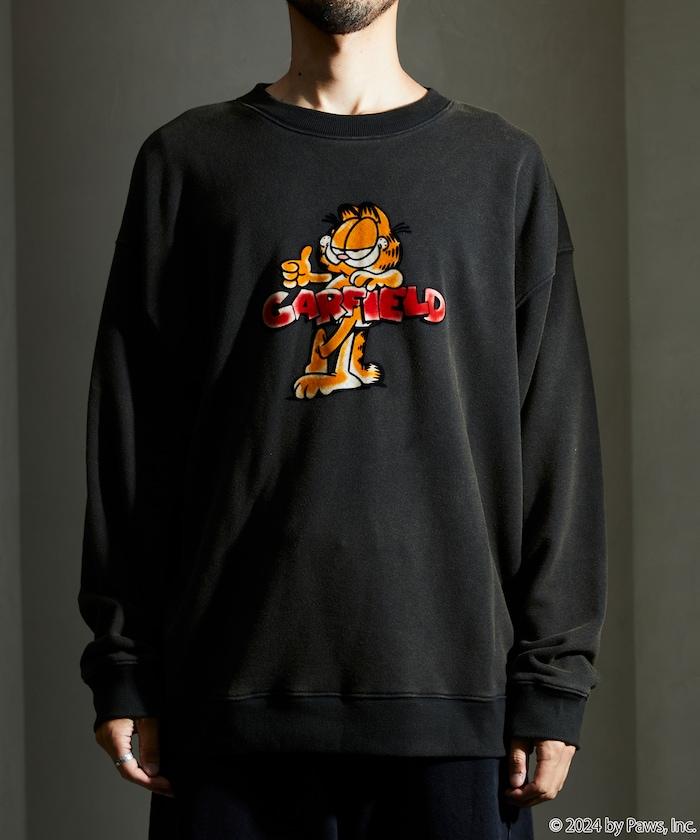 寬鬆版型圓領運動衫,印有加菲貓圖案。