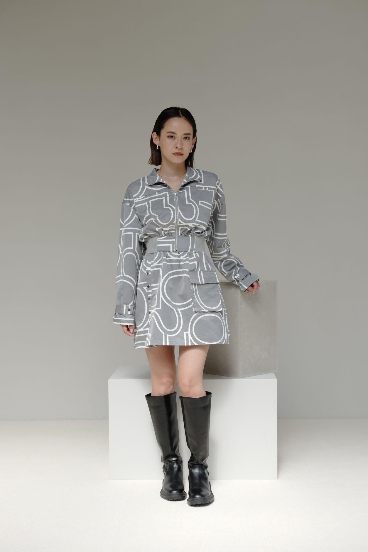 以 ESIÓ 品牌標誌為靈感,將幾何圖案融入連身裙中。