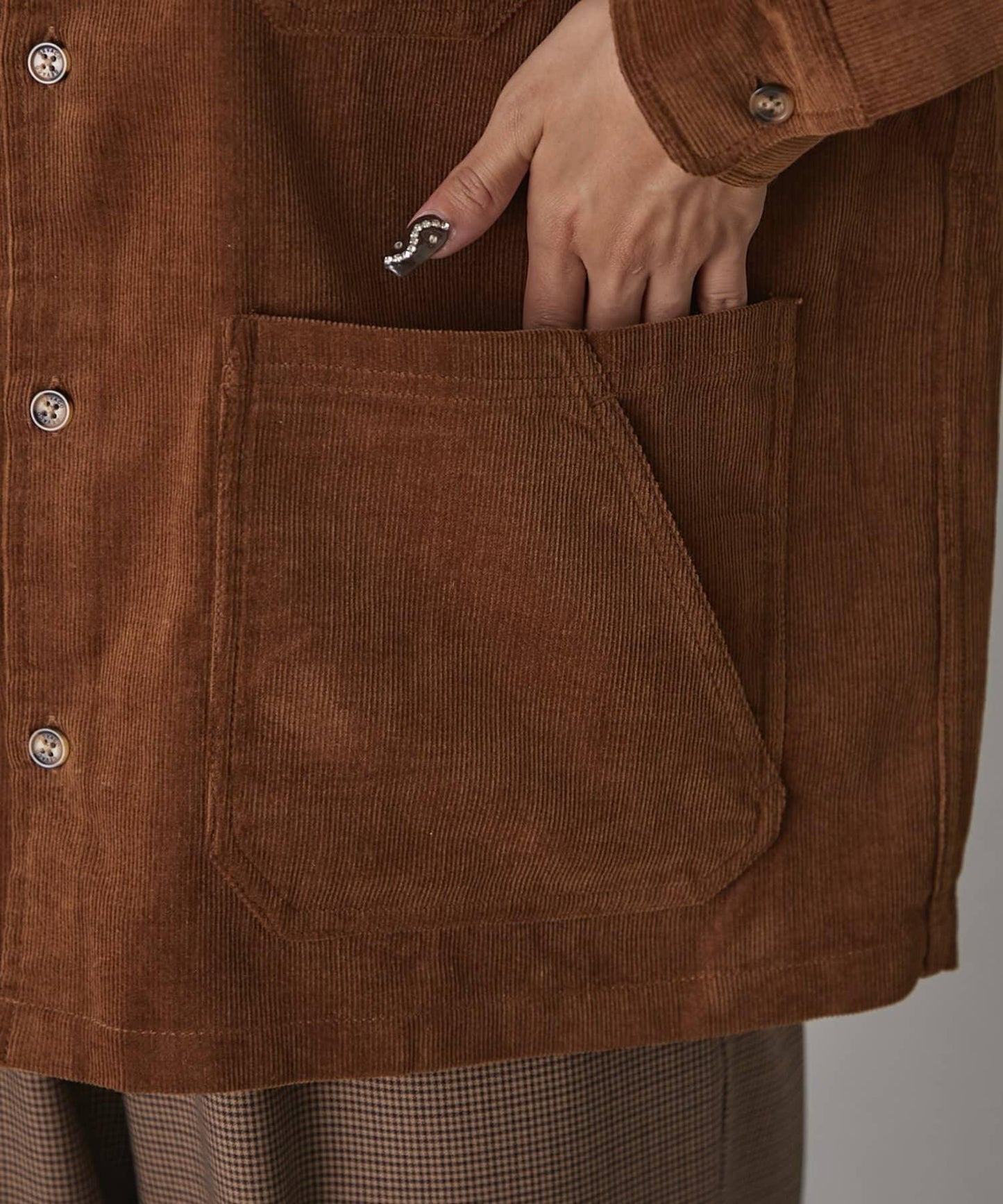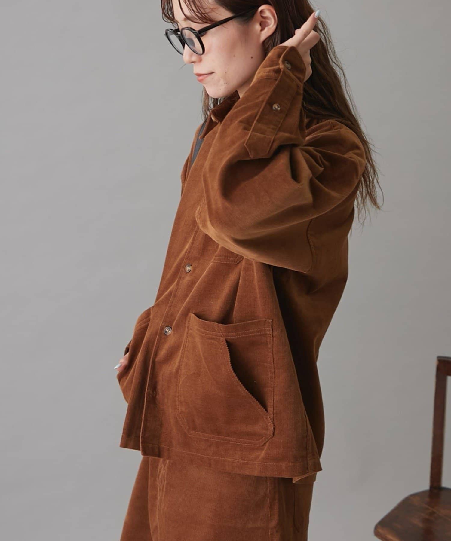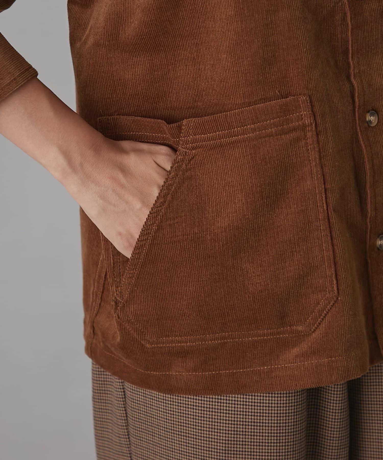 這款夾克採用保暖的燈芯絨面料,非常適合秋冬穿著。