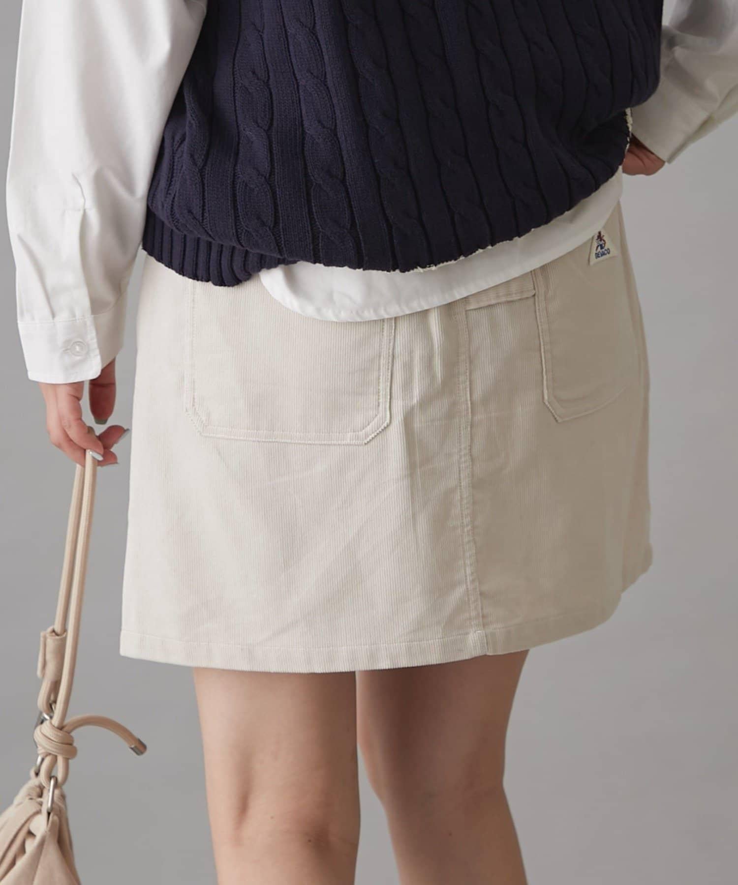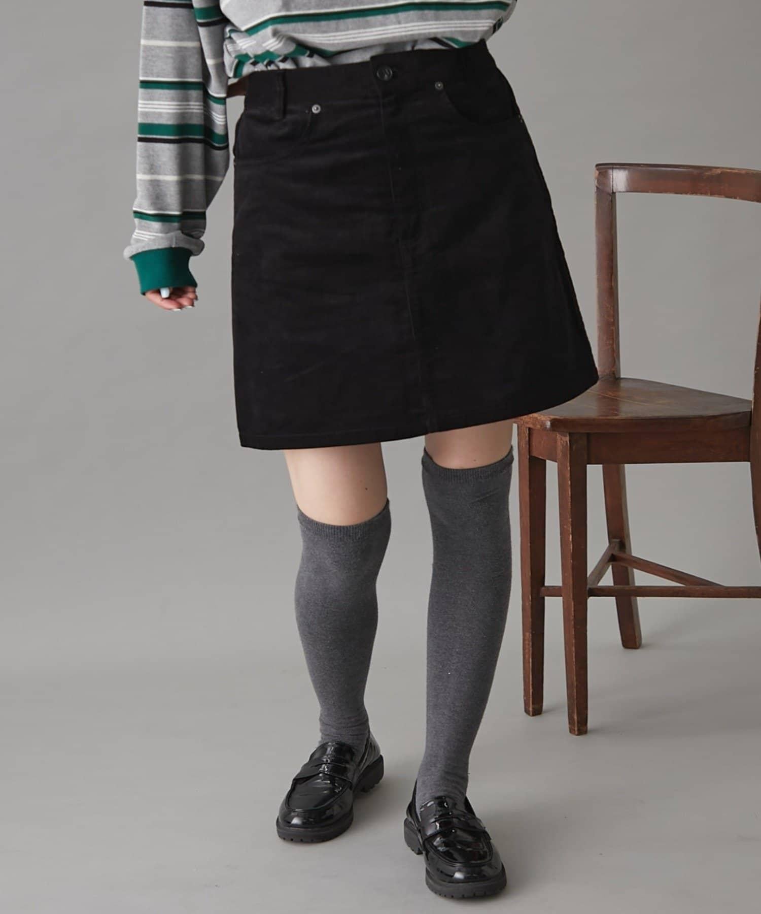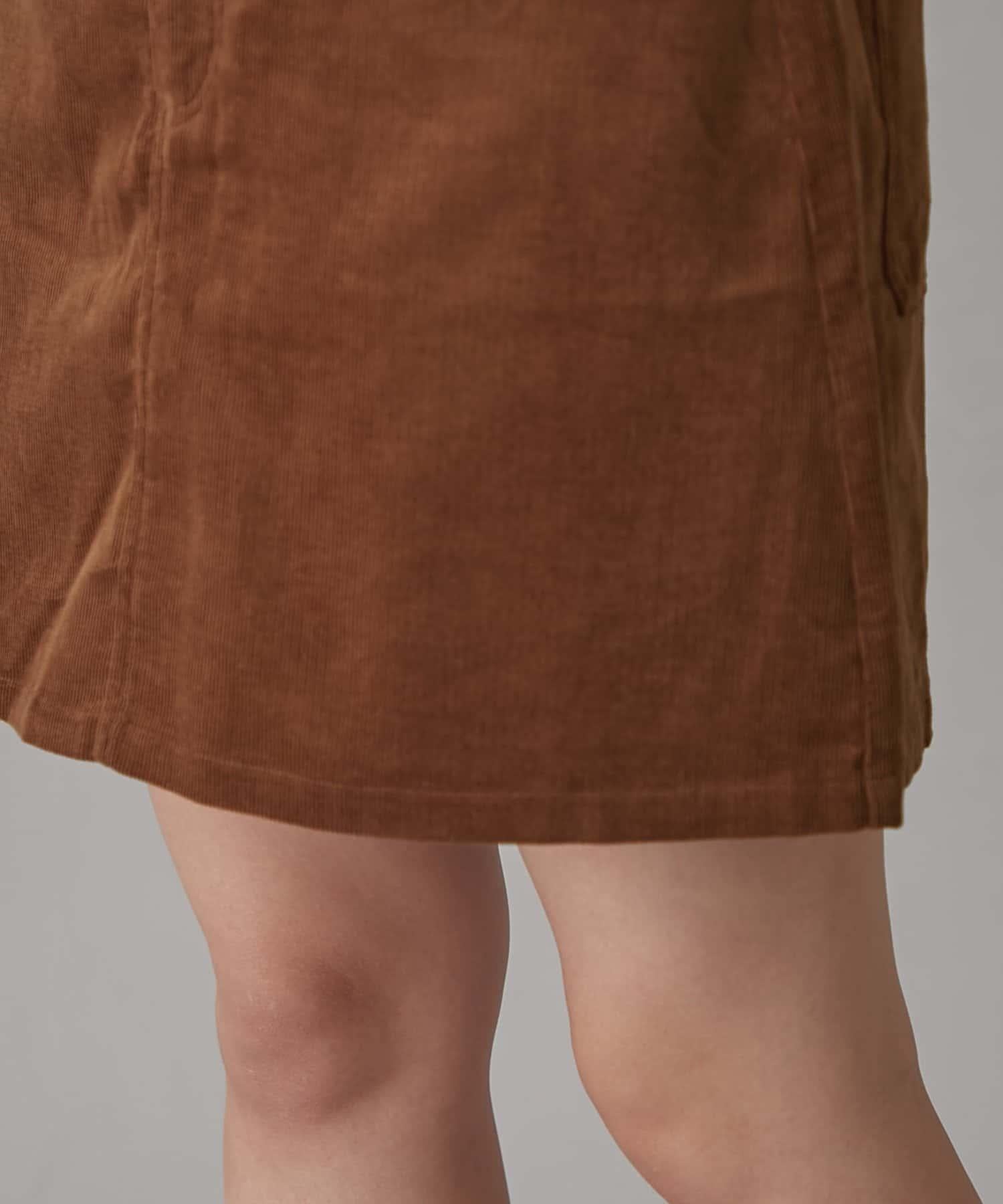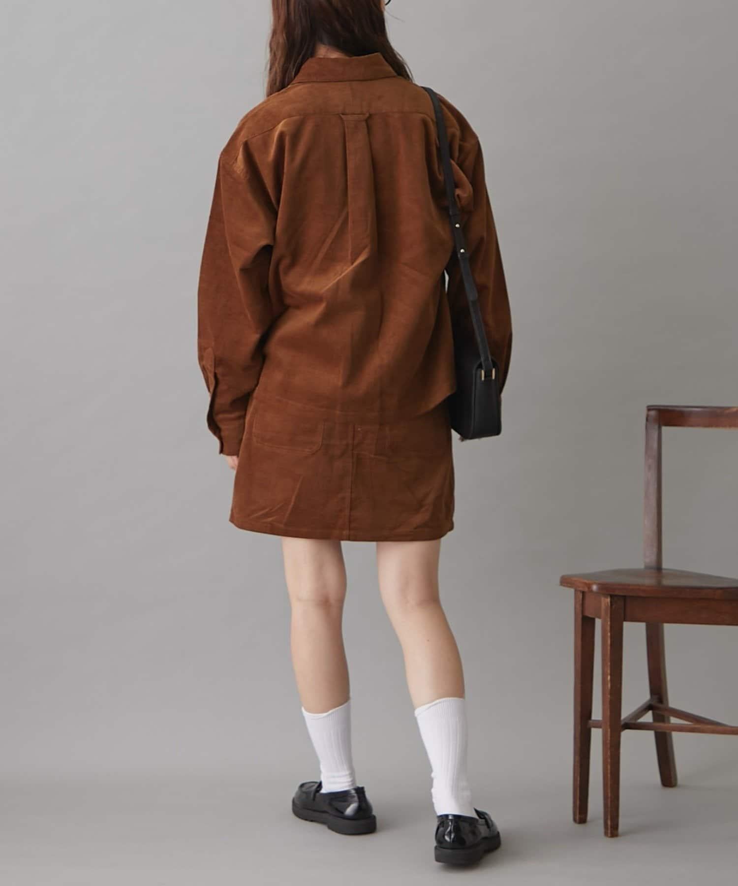 這款迷你裙採用溫暖的燈芯絨面料,增強了季節感。