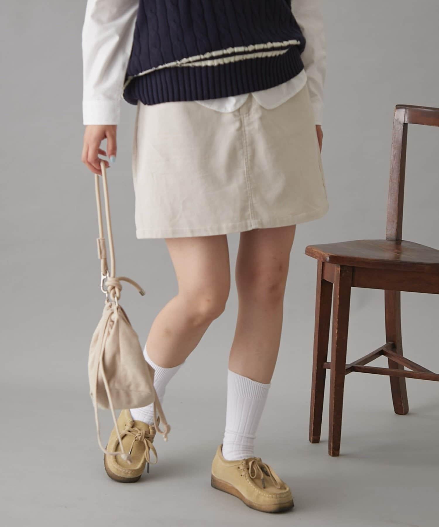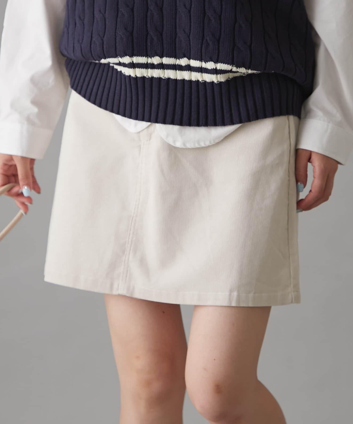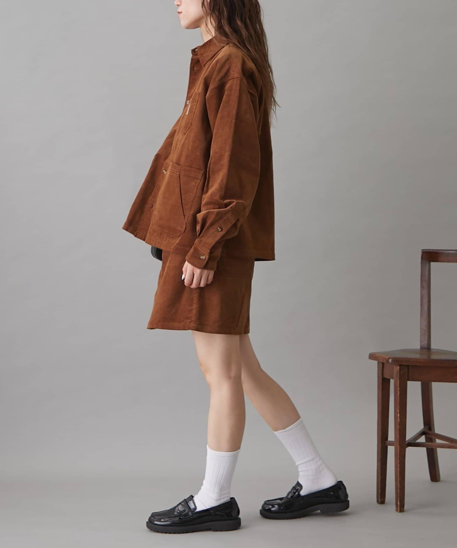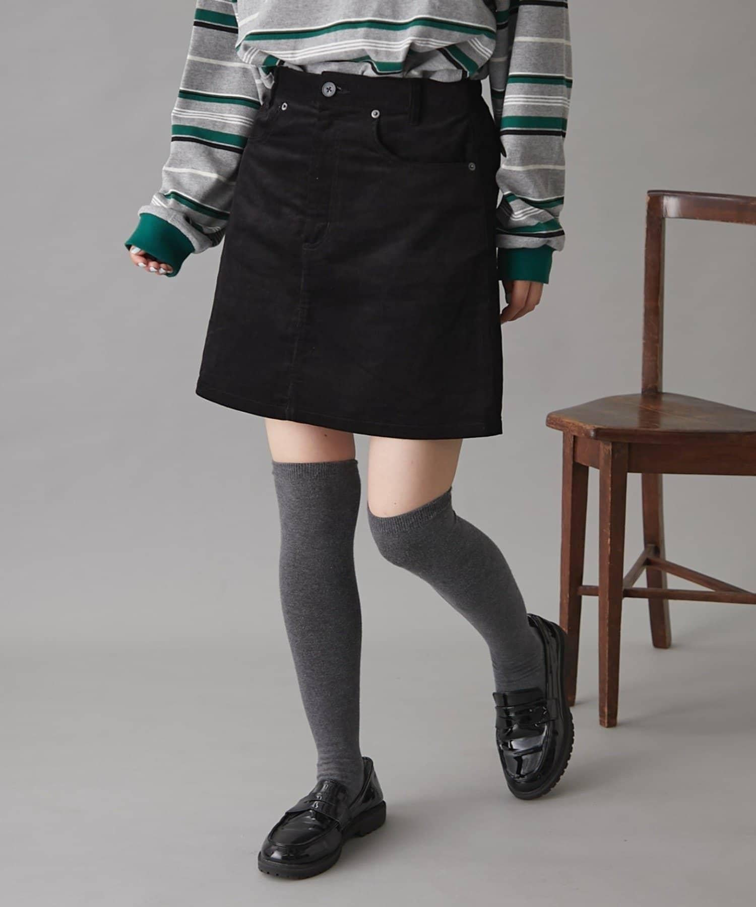 這款迷你裙採用溫暖的燈芯絨面料,增強了季節感。