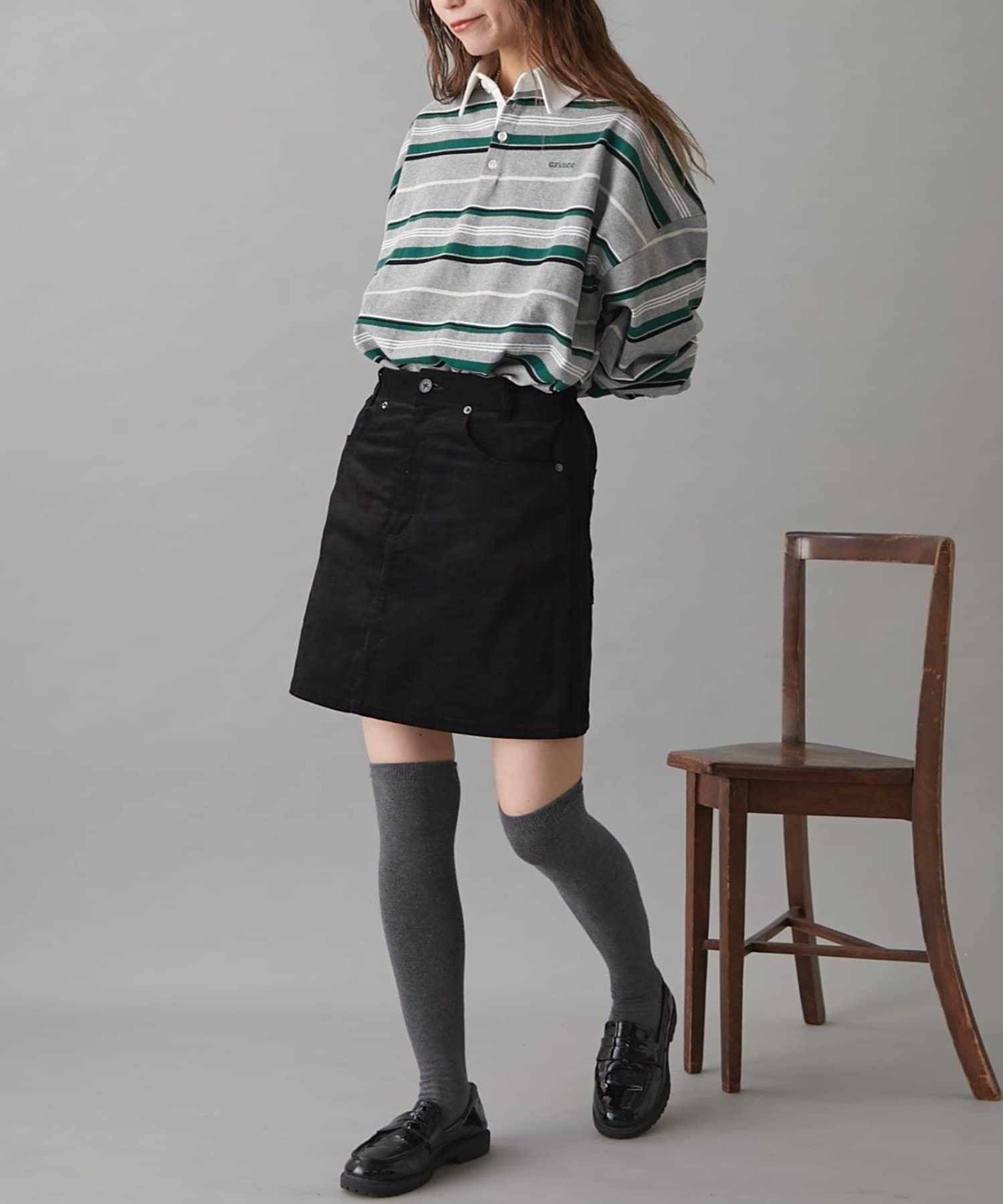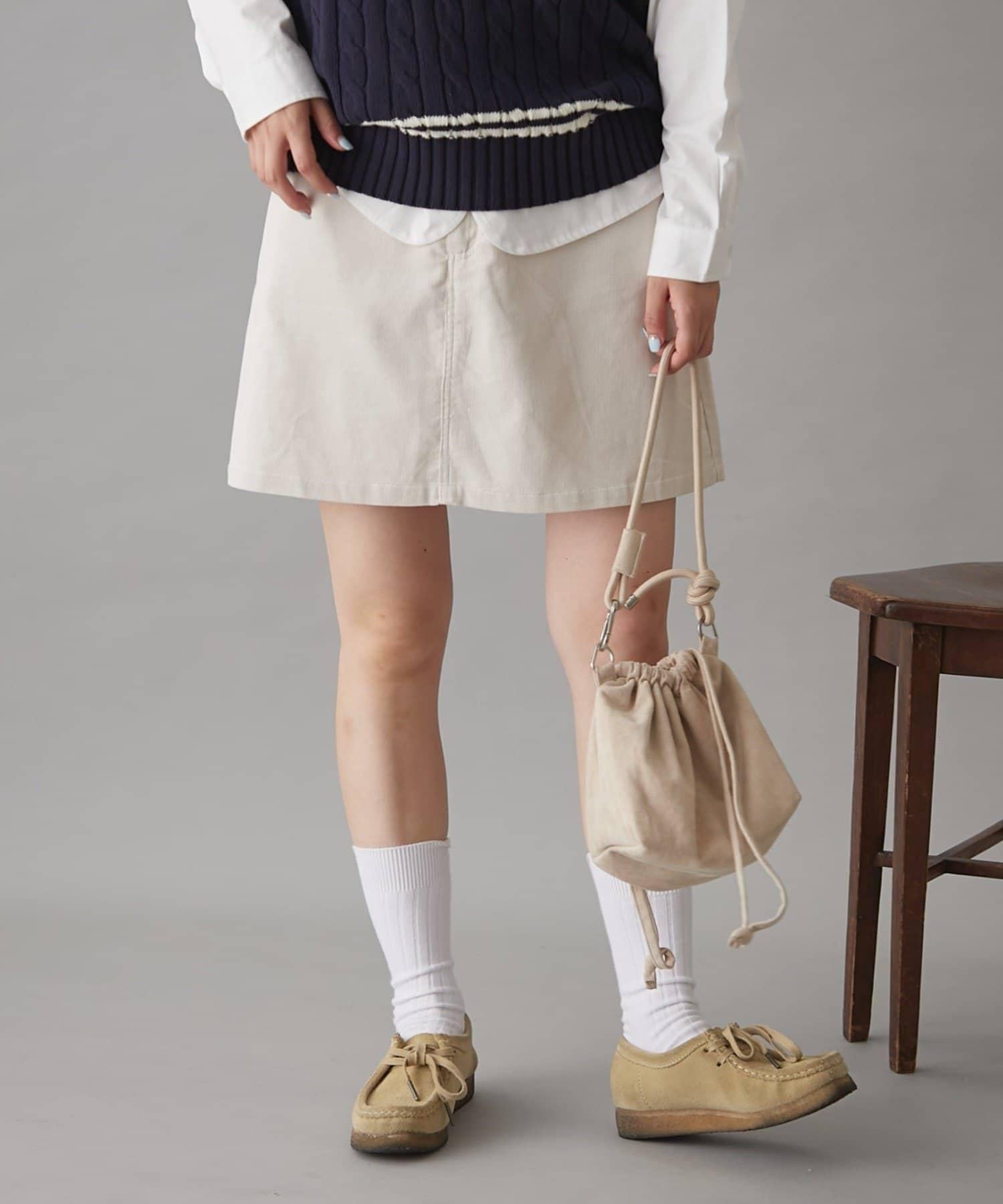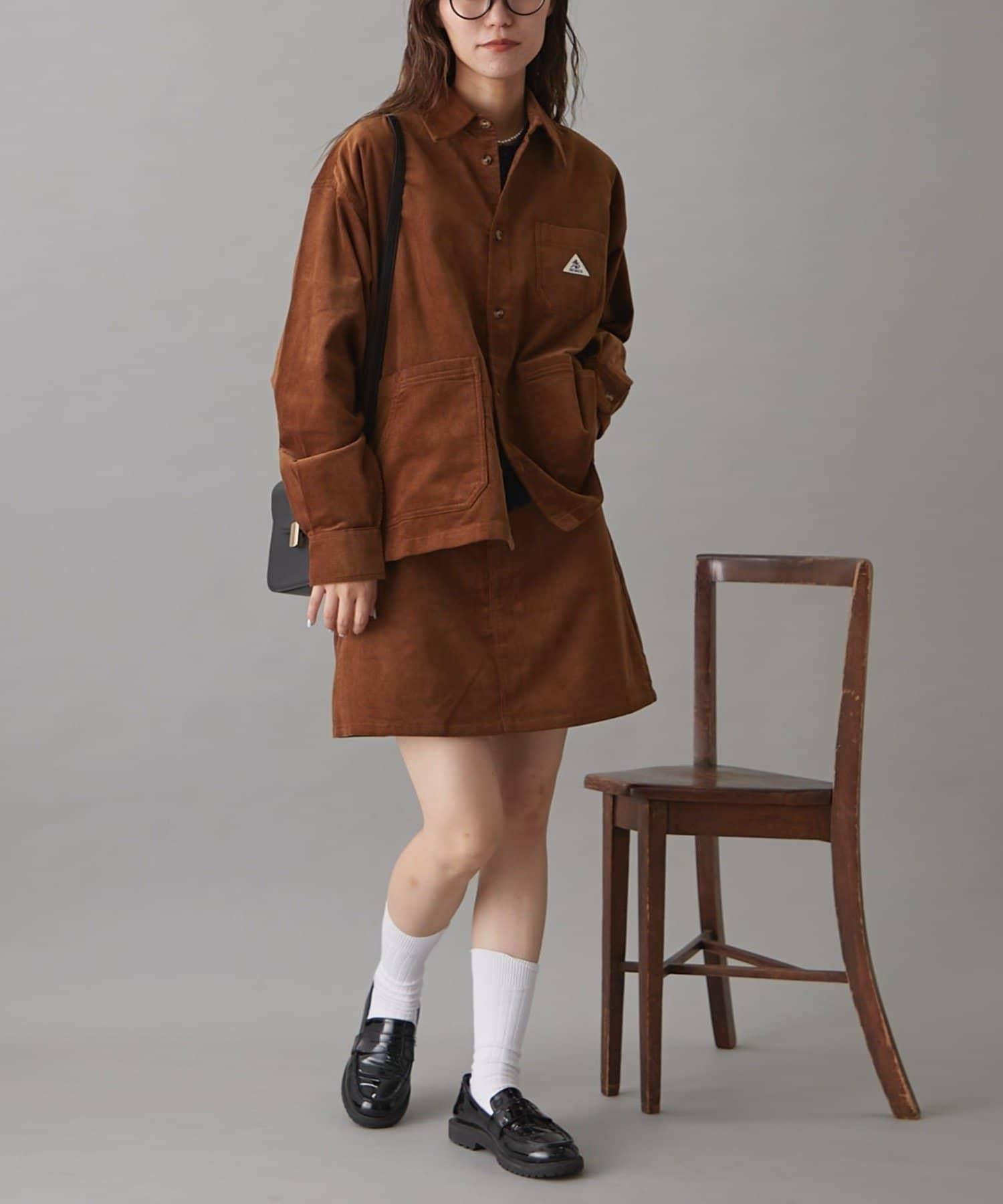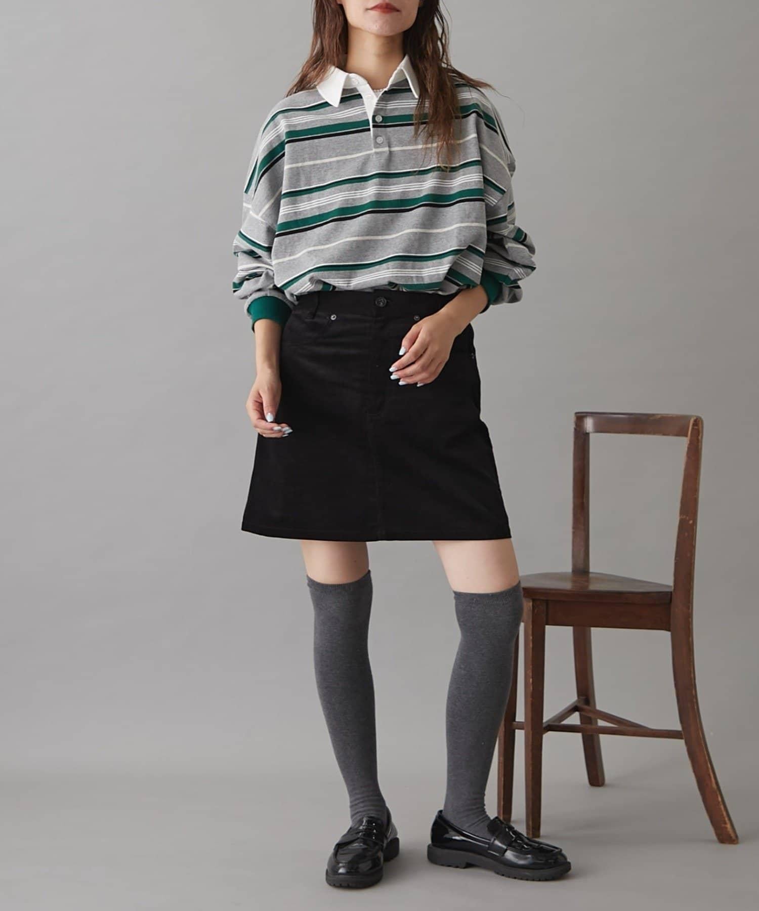 這款迷你裙採用溫暖的燈芯絨面料,增強了季節感。