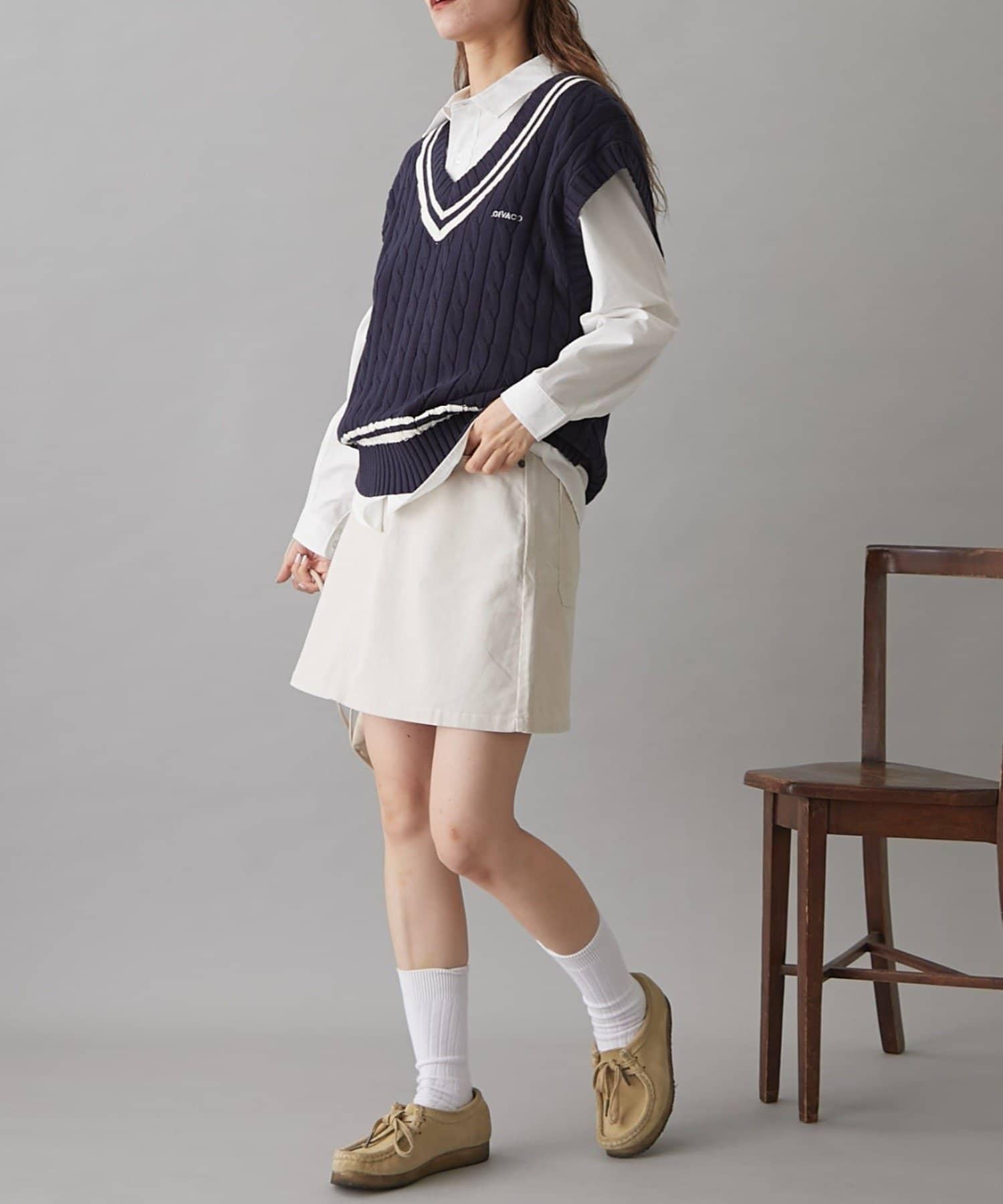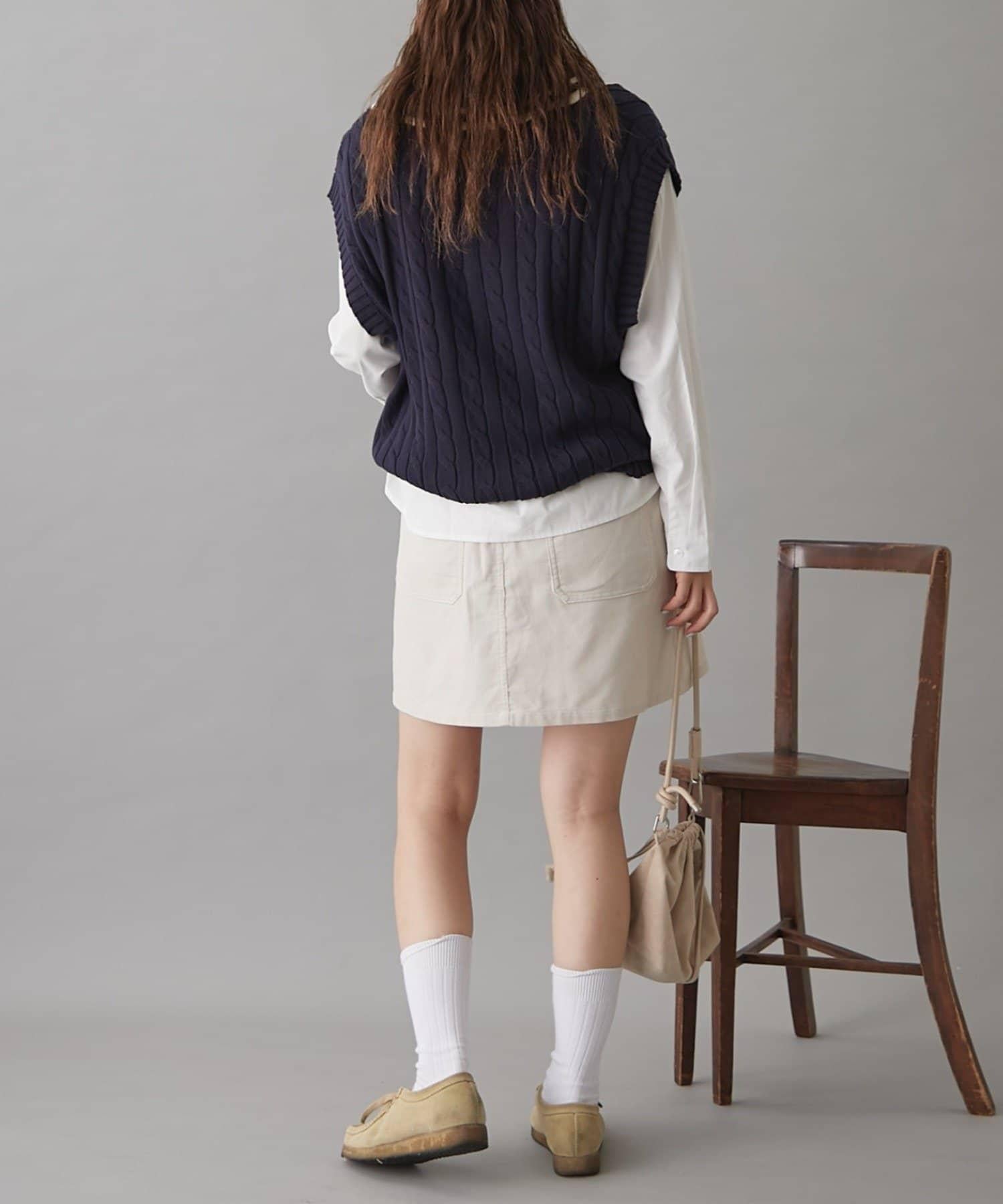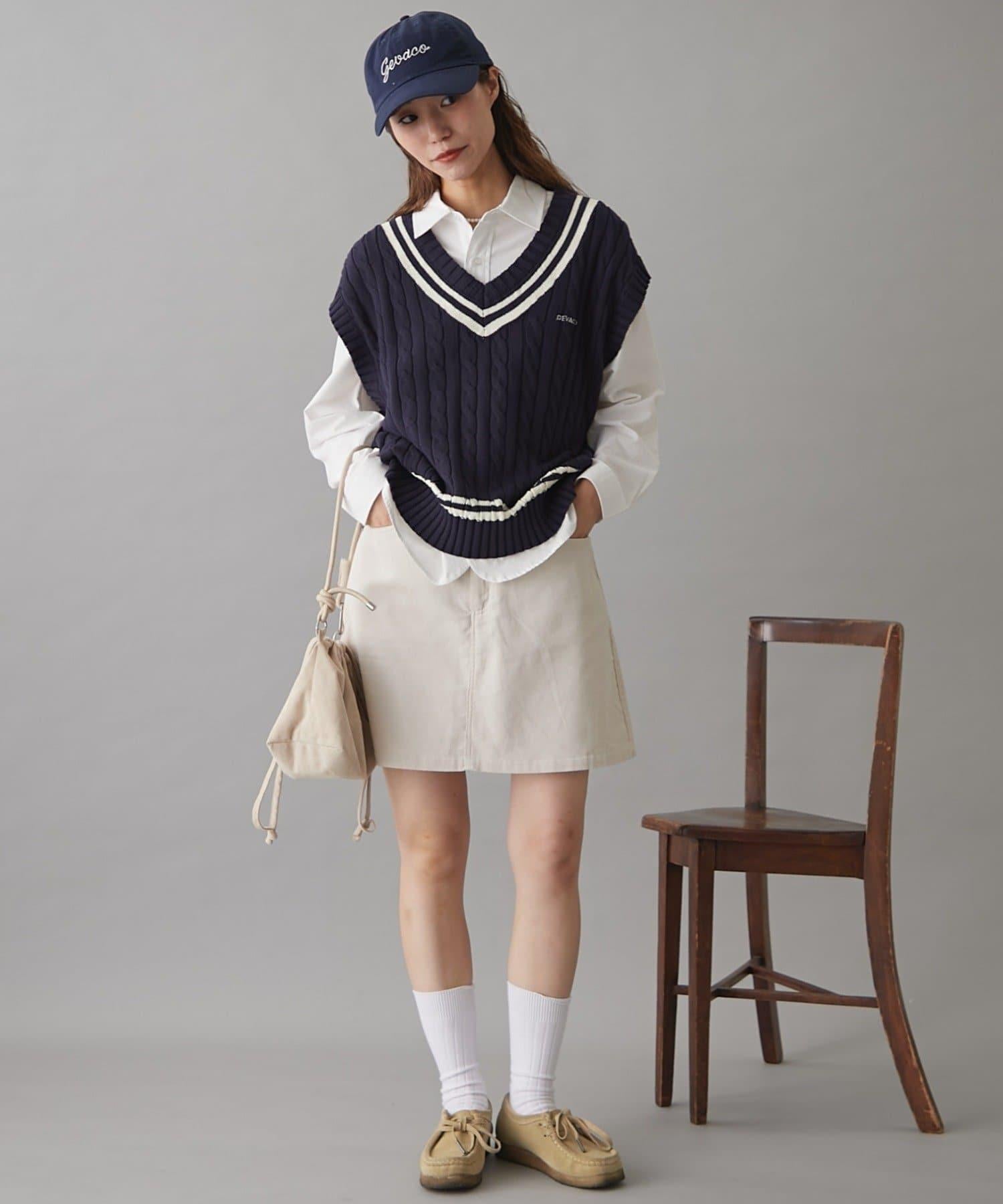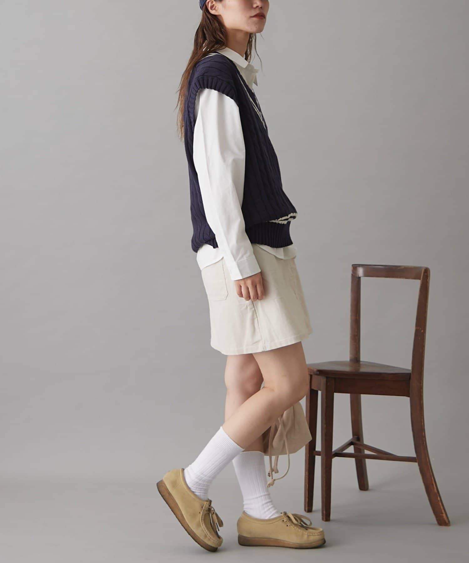 這款迷你裙採用溫暖的燈芯絨面料,增強了季節感。