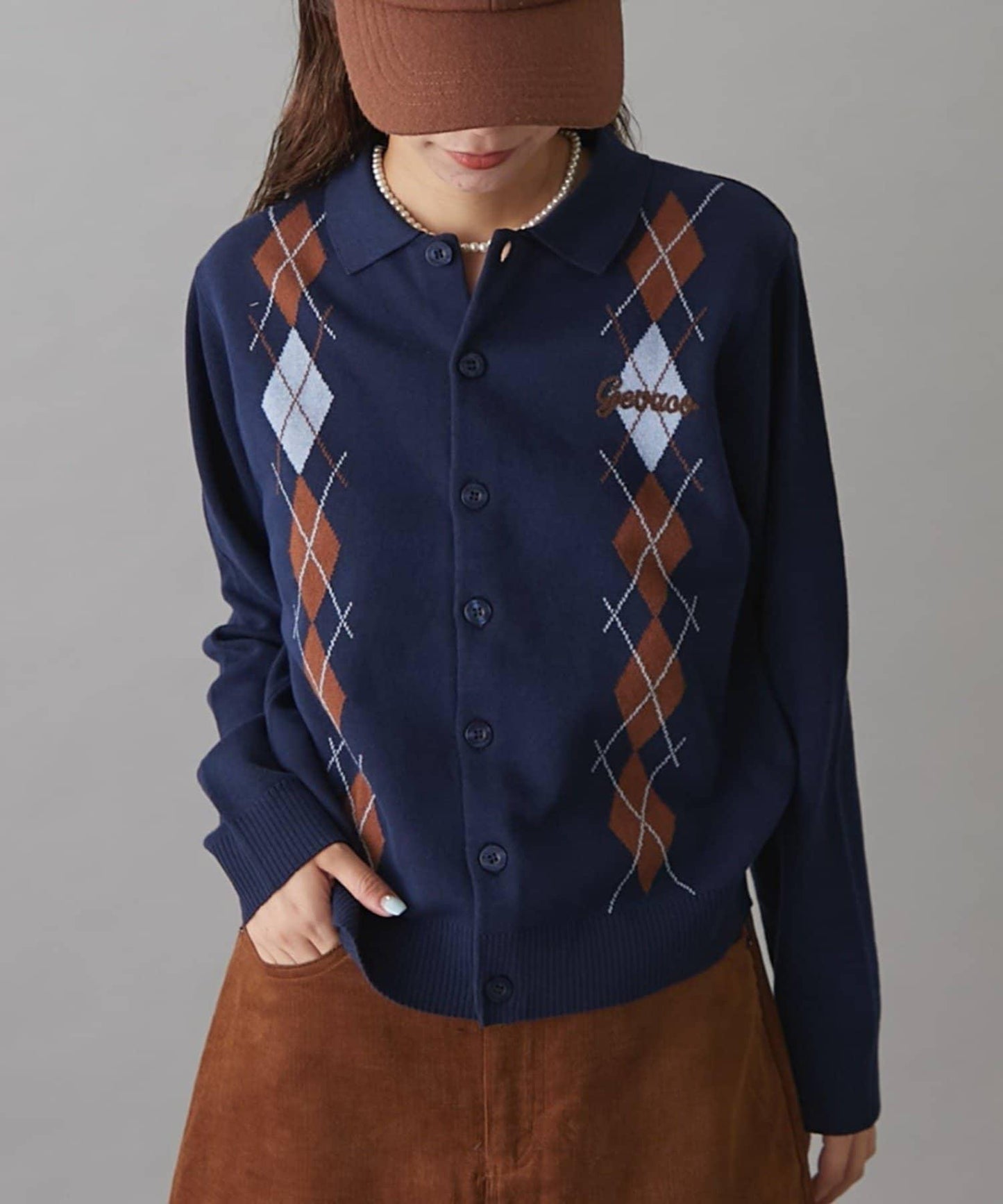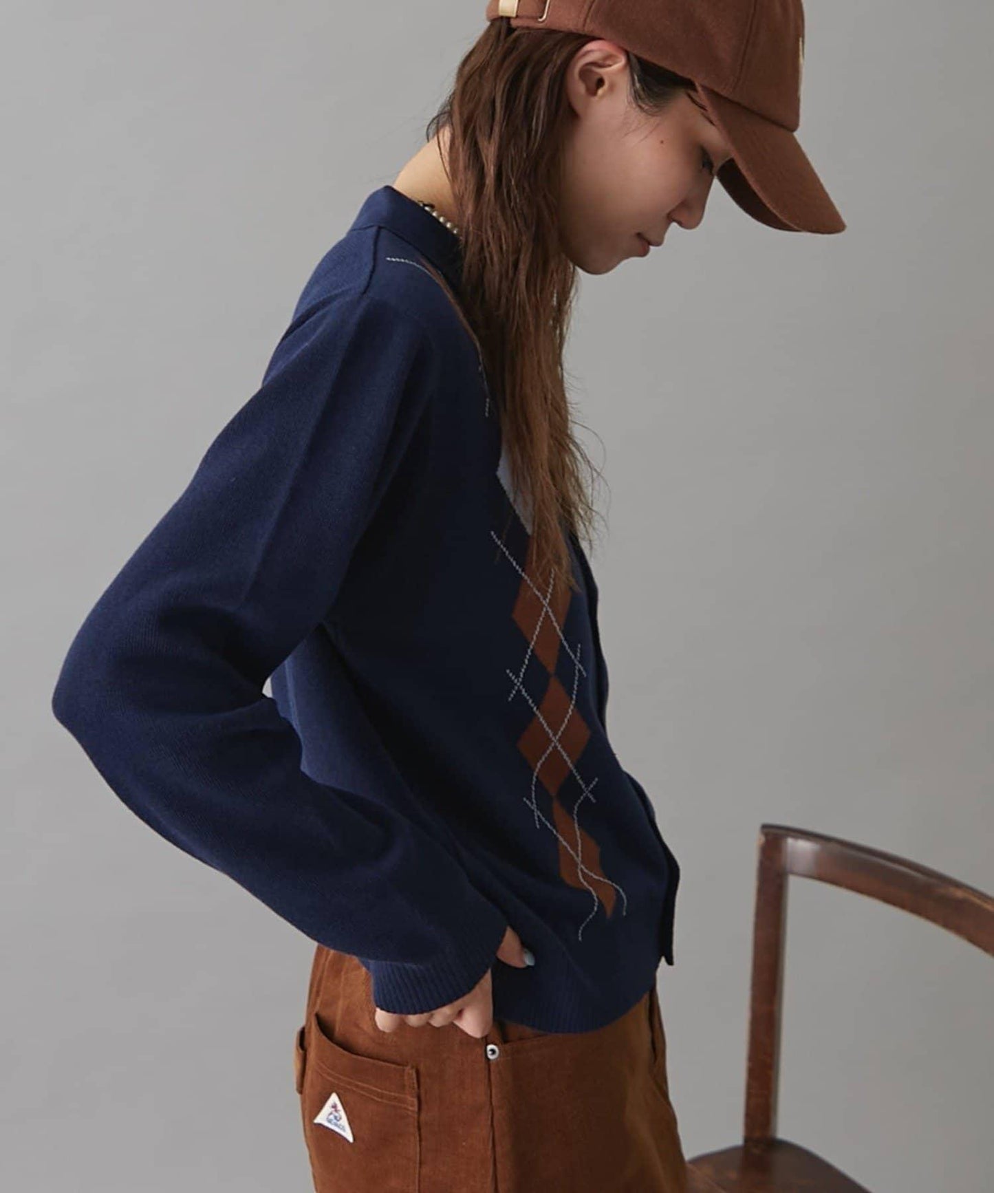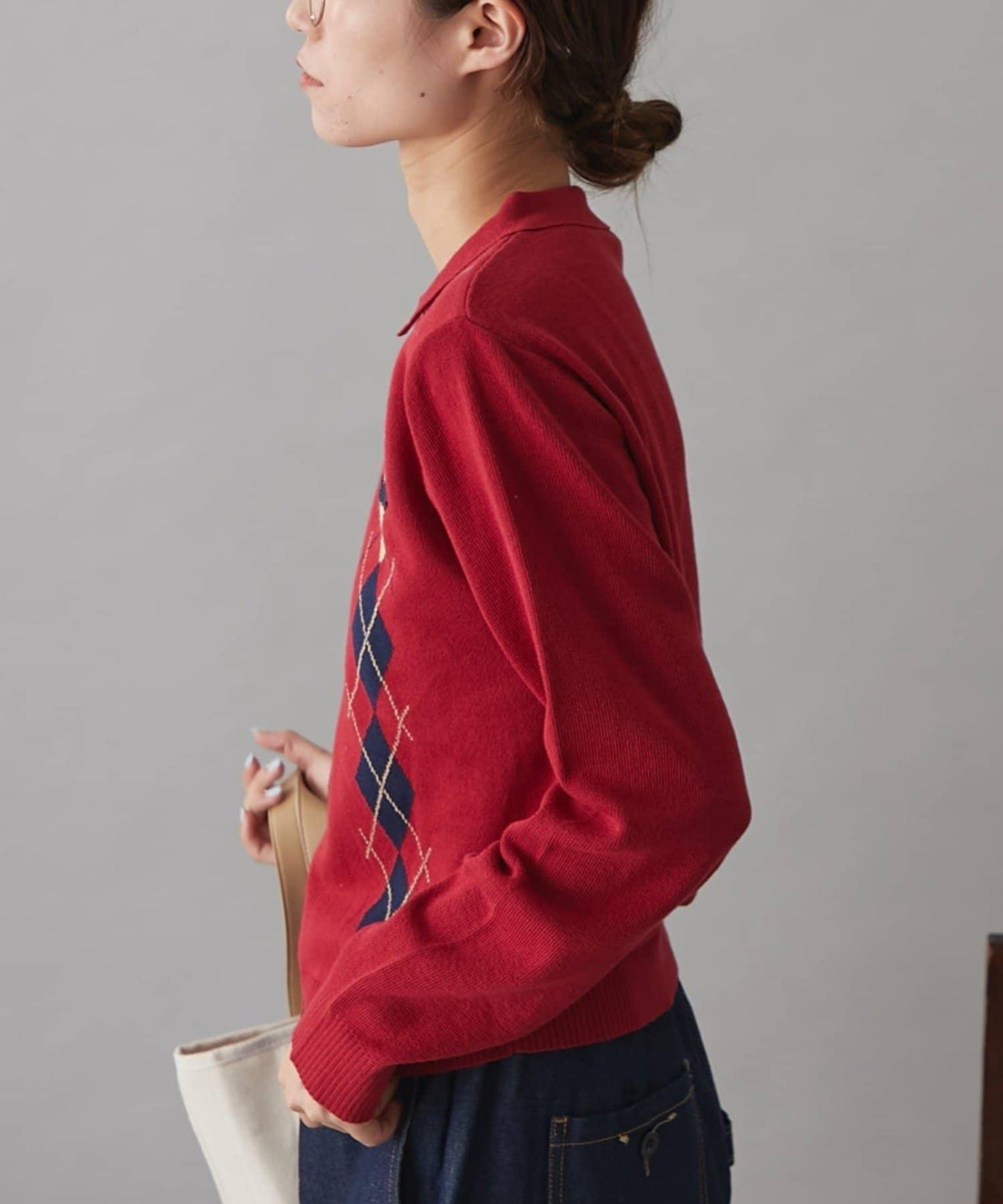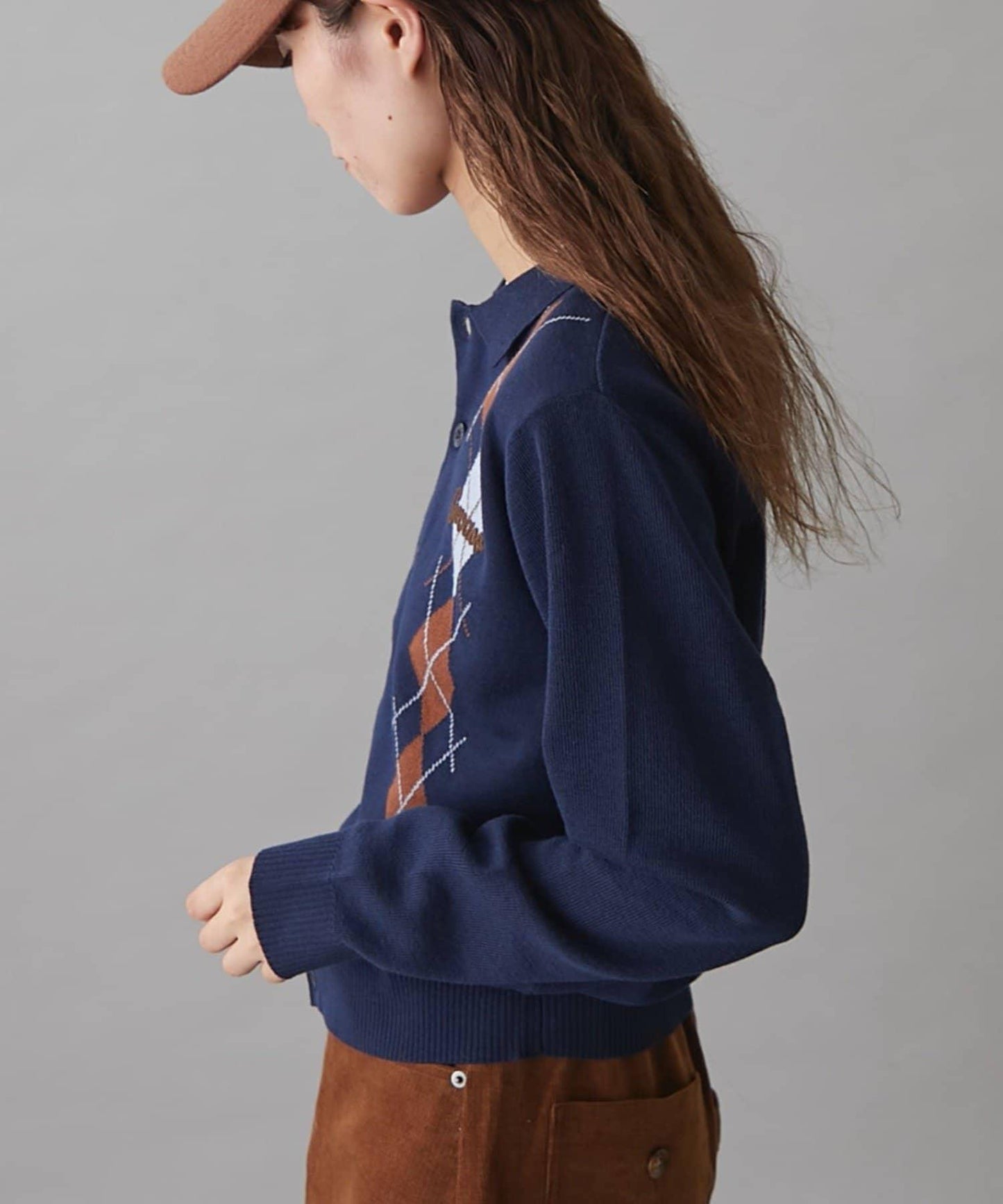 復古現代的菱格紋針織衫,帶著一絲成人的俏皮和智慧。