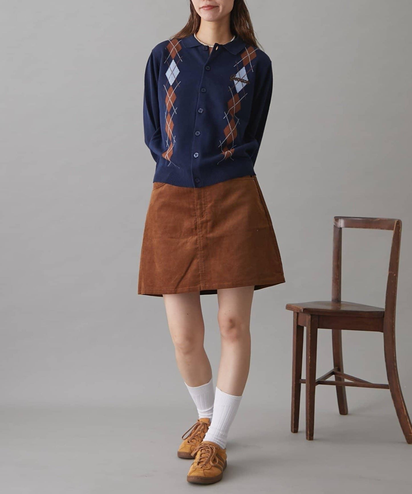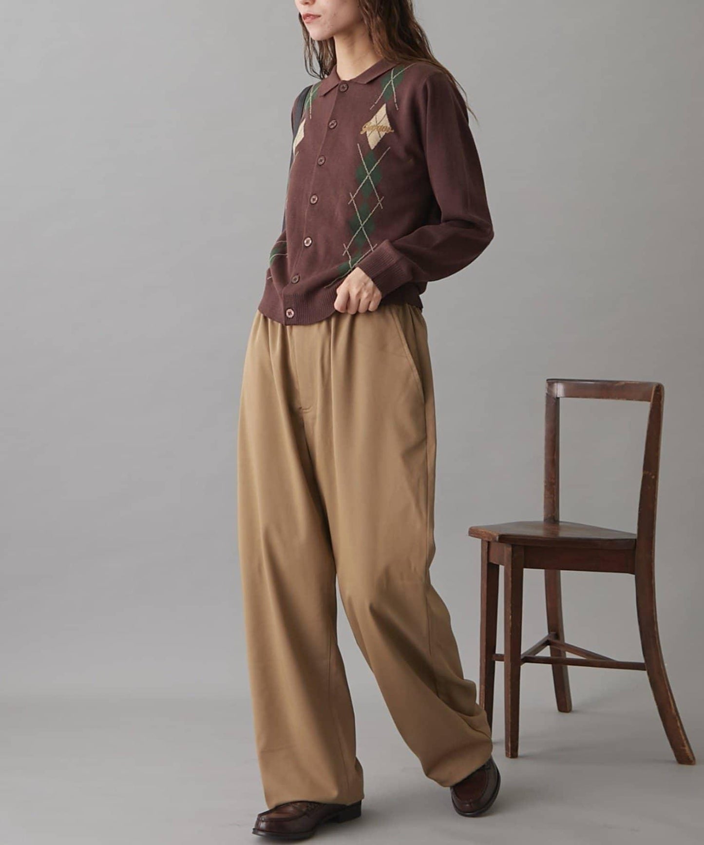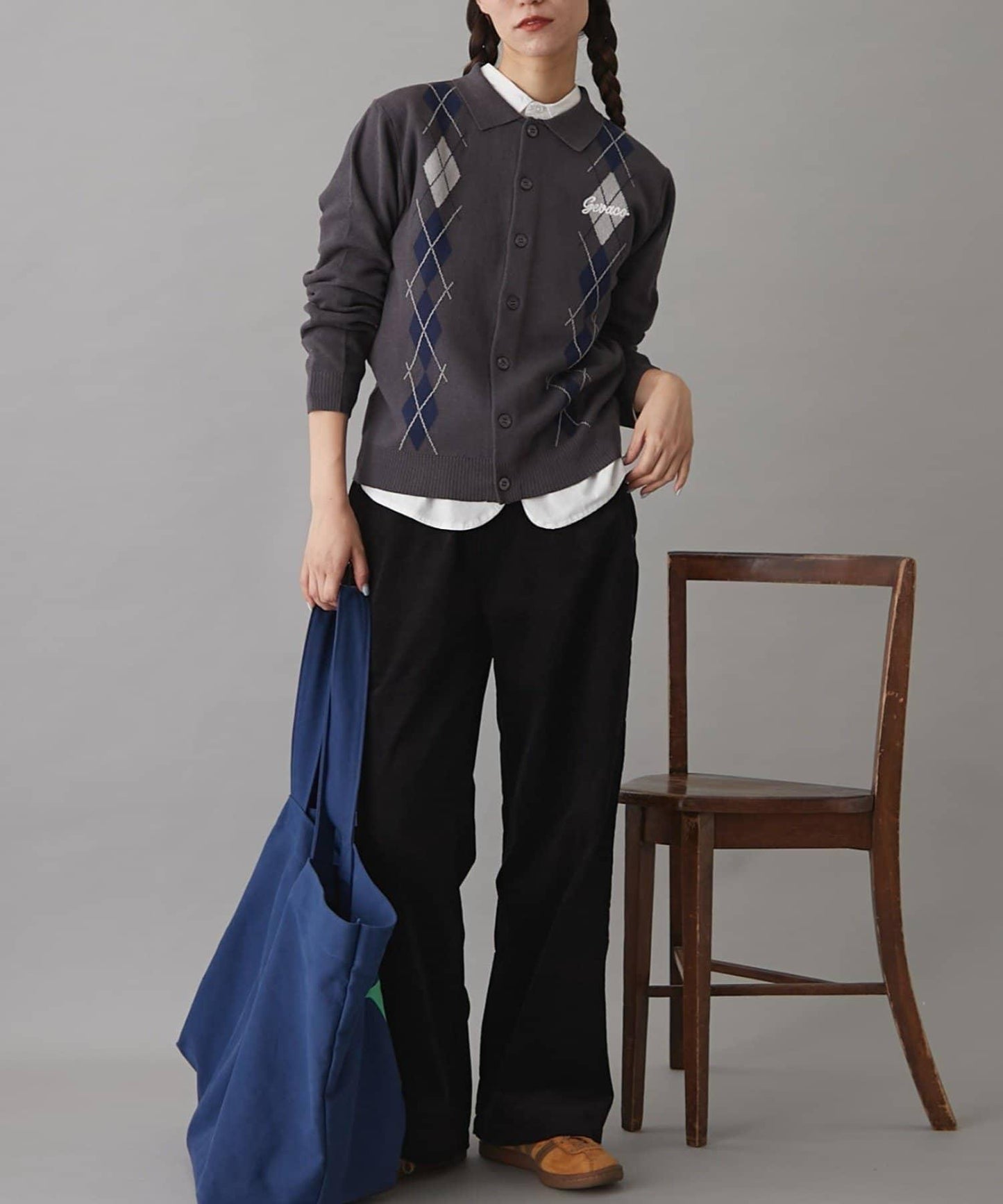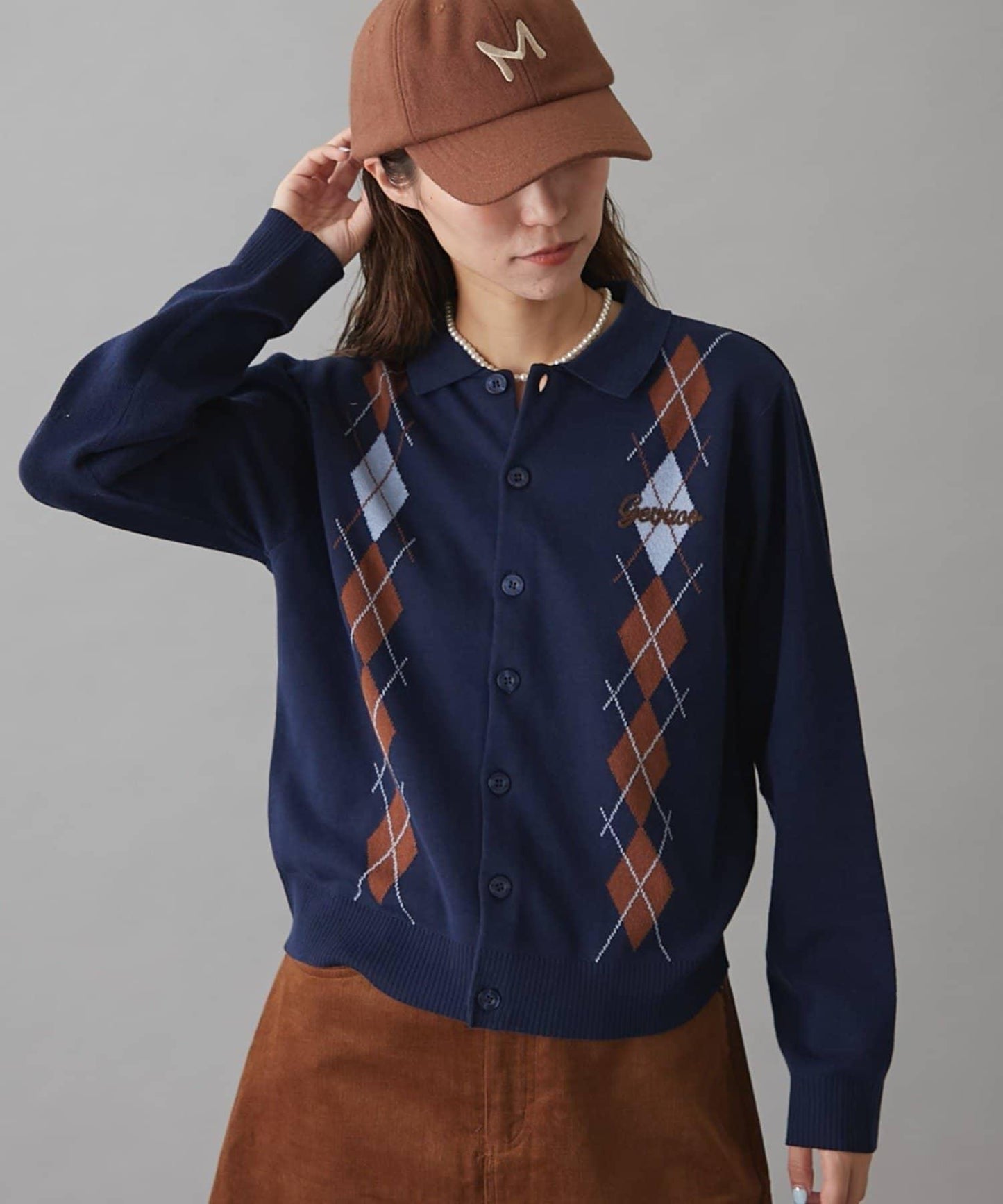 復古現代的菱格紋針織衫,帶著一絲成人的俏皮和智慧。