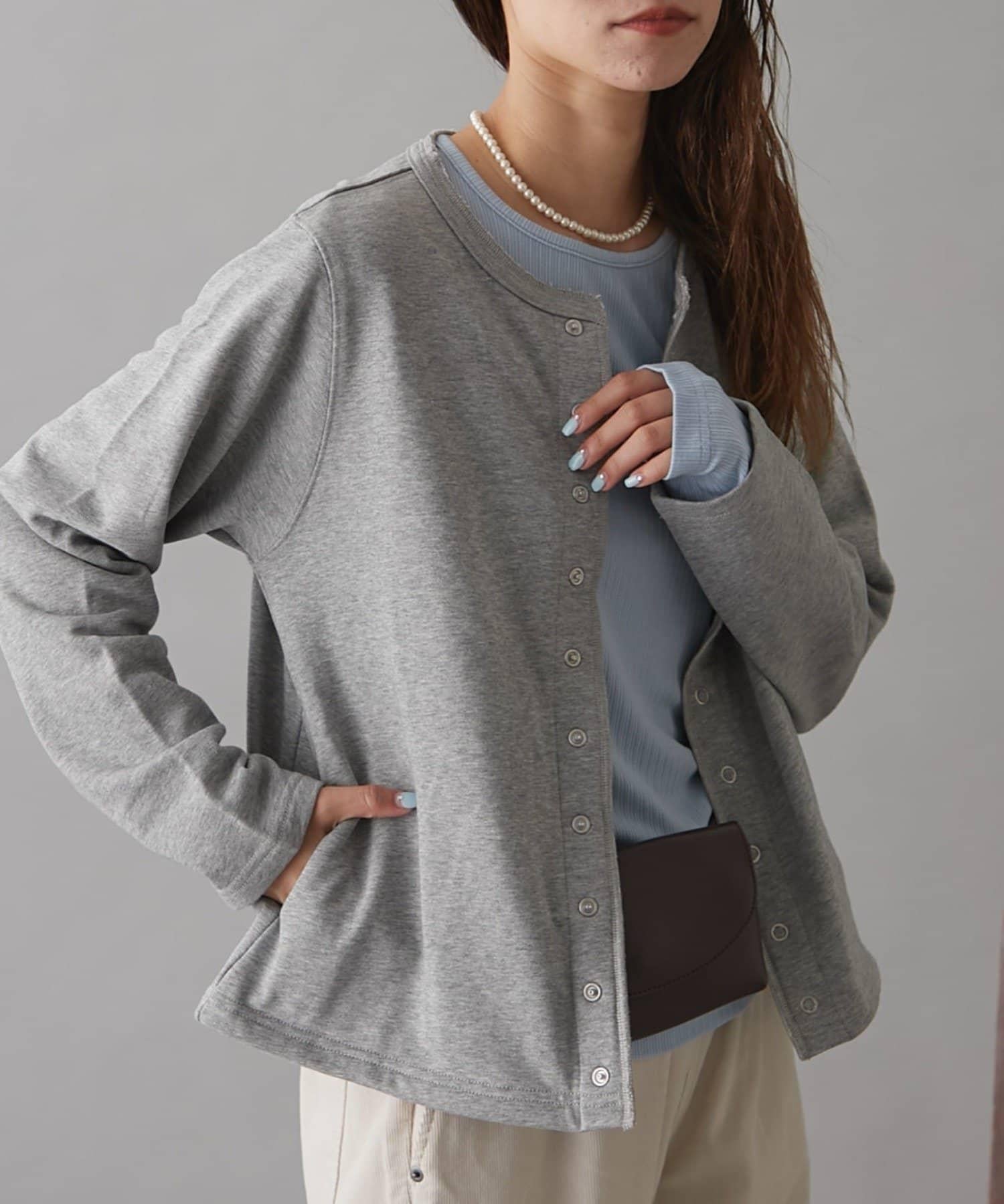 這款簡約的灰色開衫設計精緻,適合成熟女性。