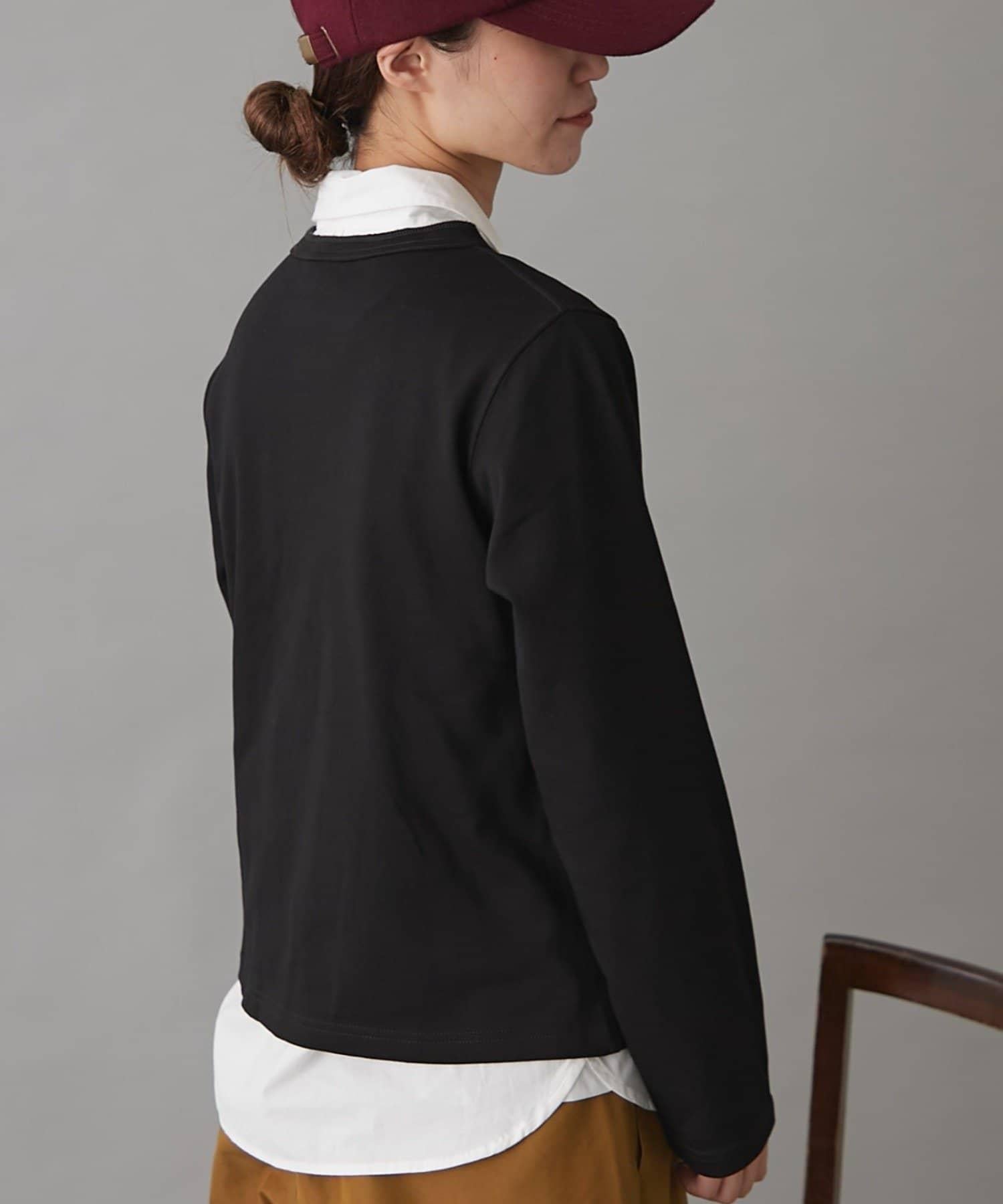 無領設計讓頸部看起來更簡潔,與配飾搭配起來也很協調。