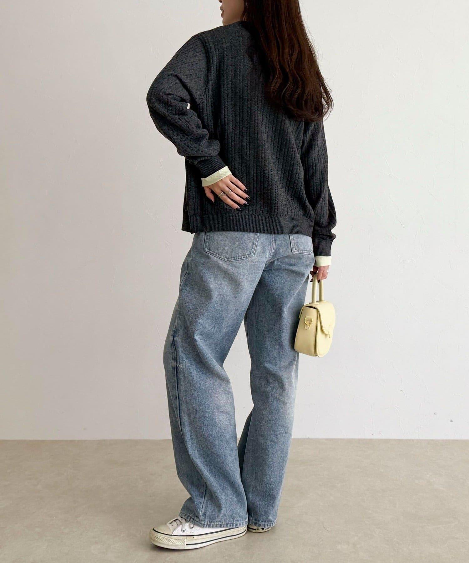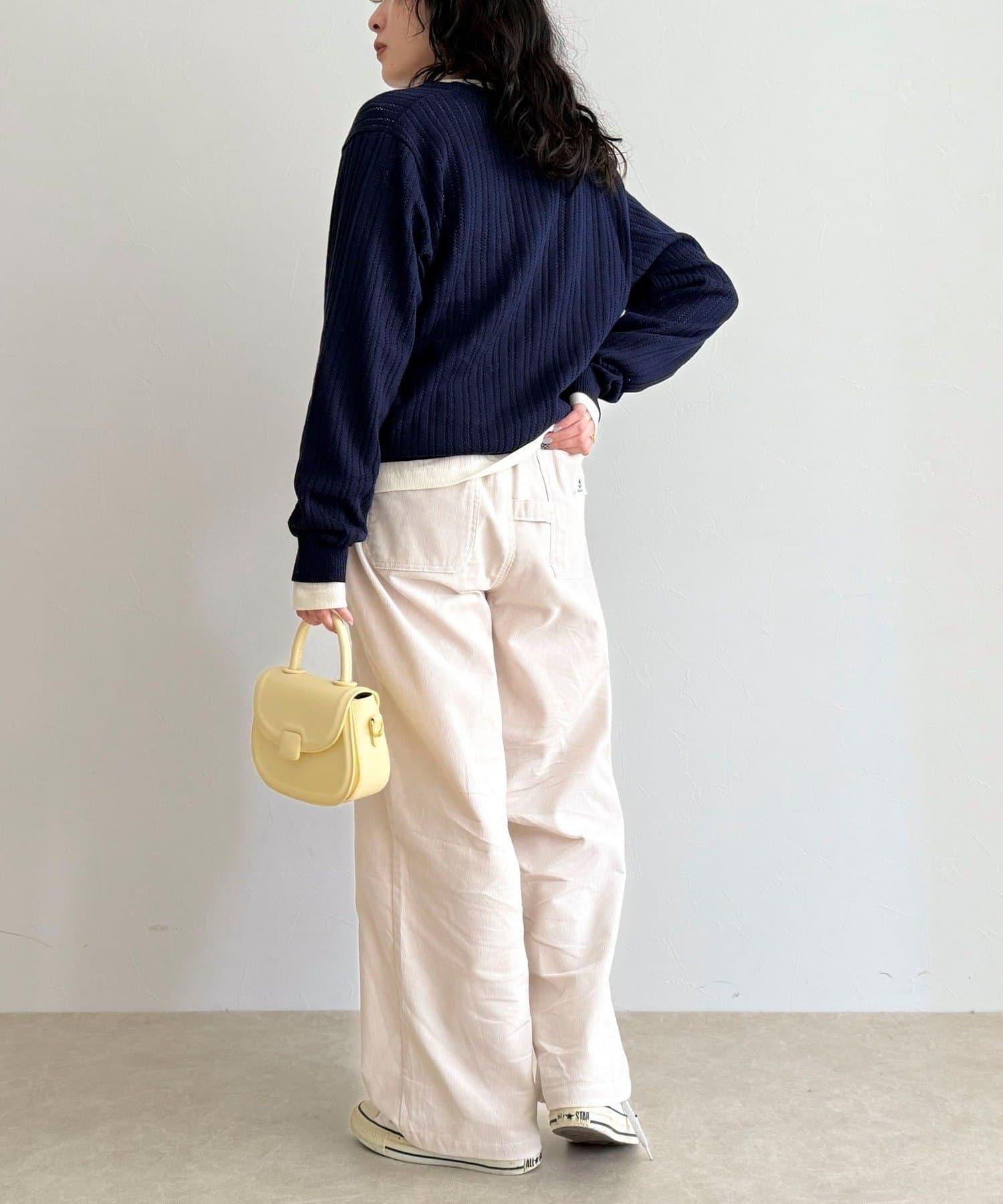 *由於面料的特性,本產品在夾住線頭時容易彈出。穿著時請注意不要與皮帶、包包或周圍牆壁等粗糙表面發生摩擦或卡住。