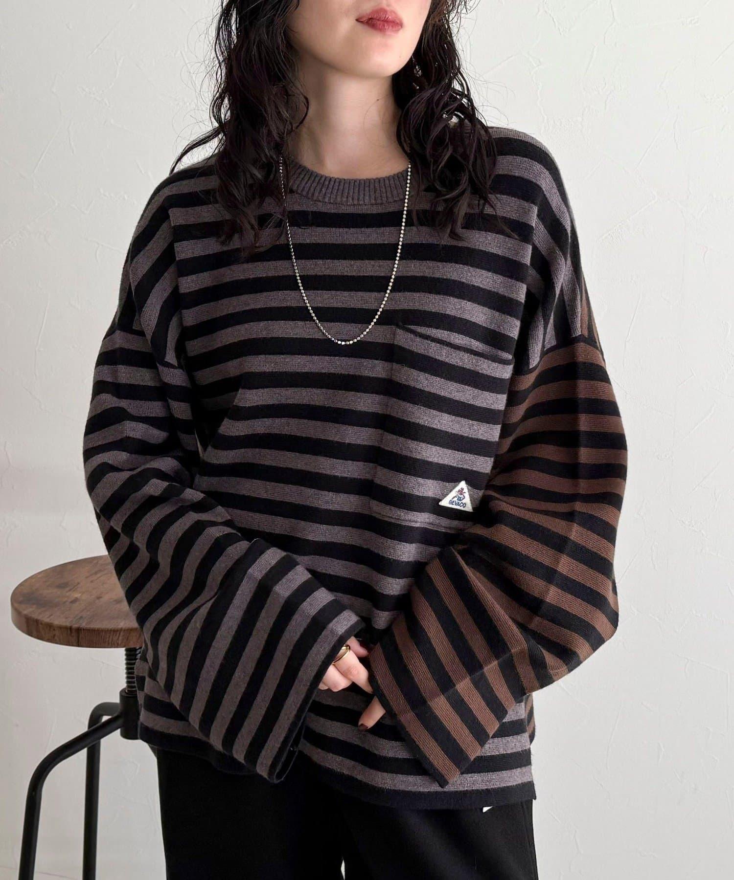 【GEVACO/ゲバコ】條紋針織套頭衫