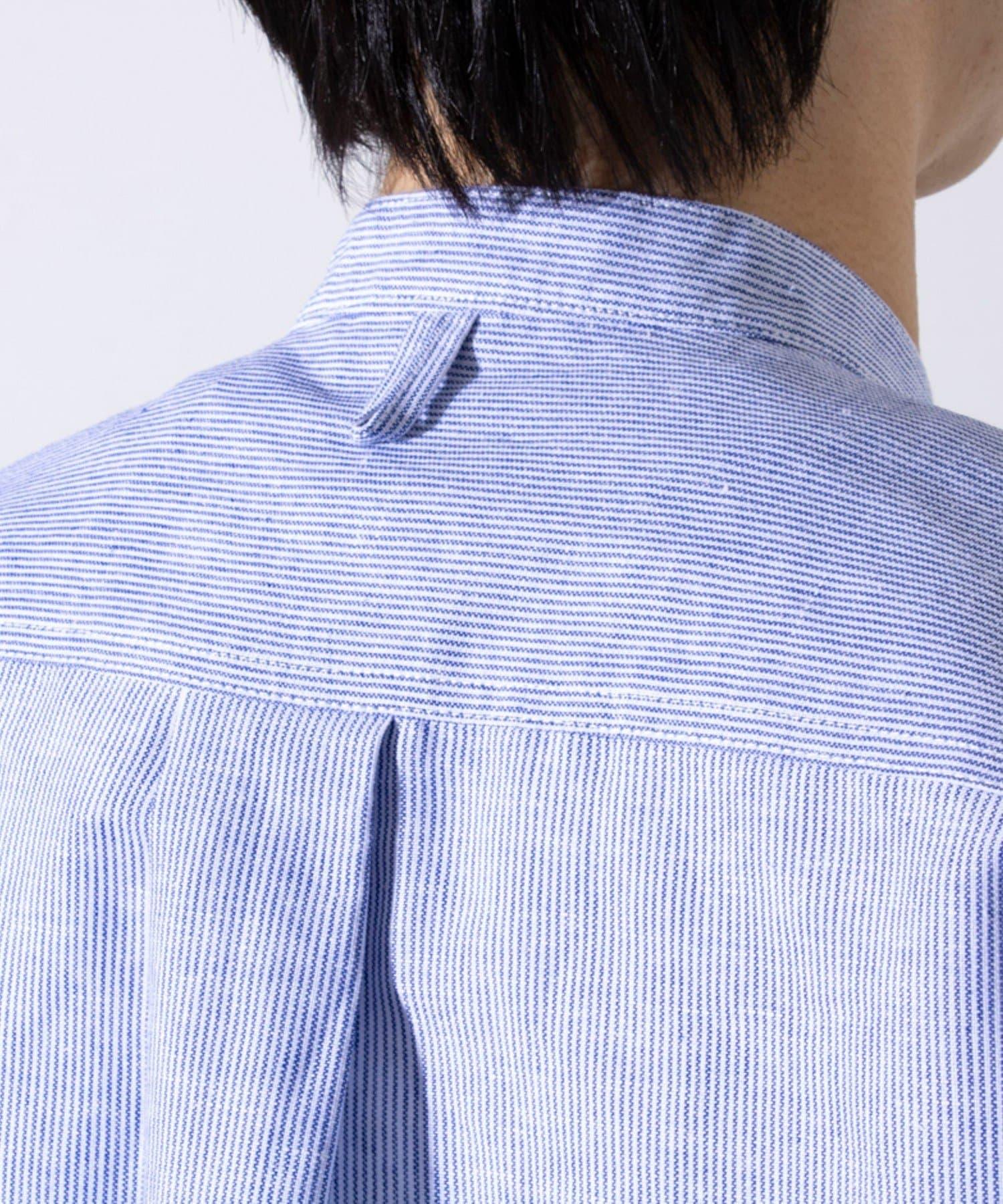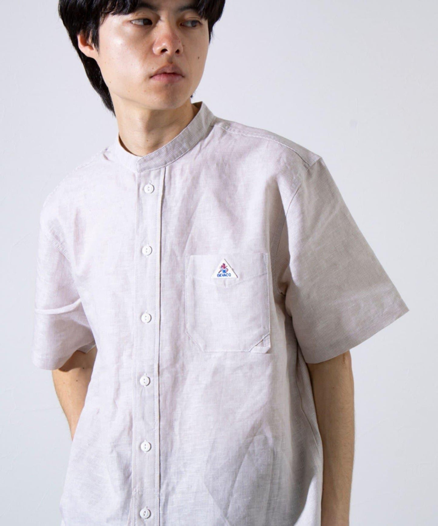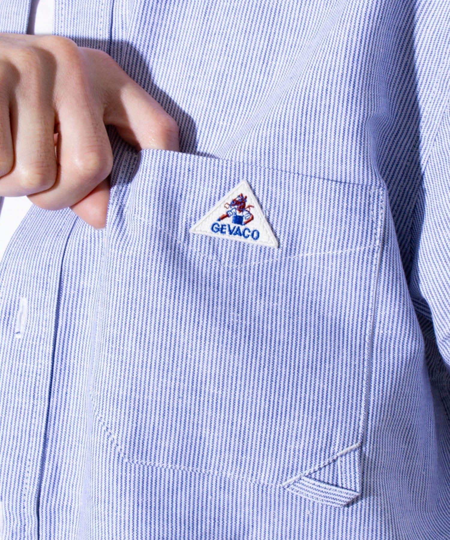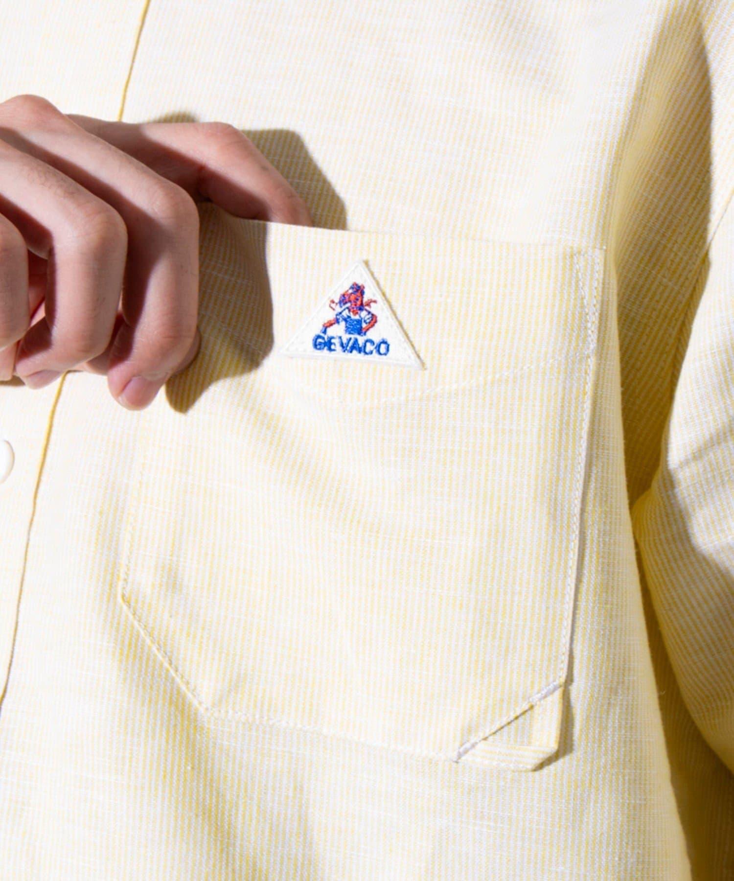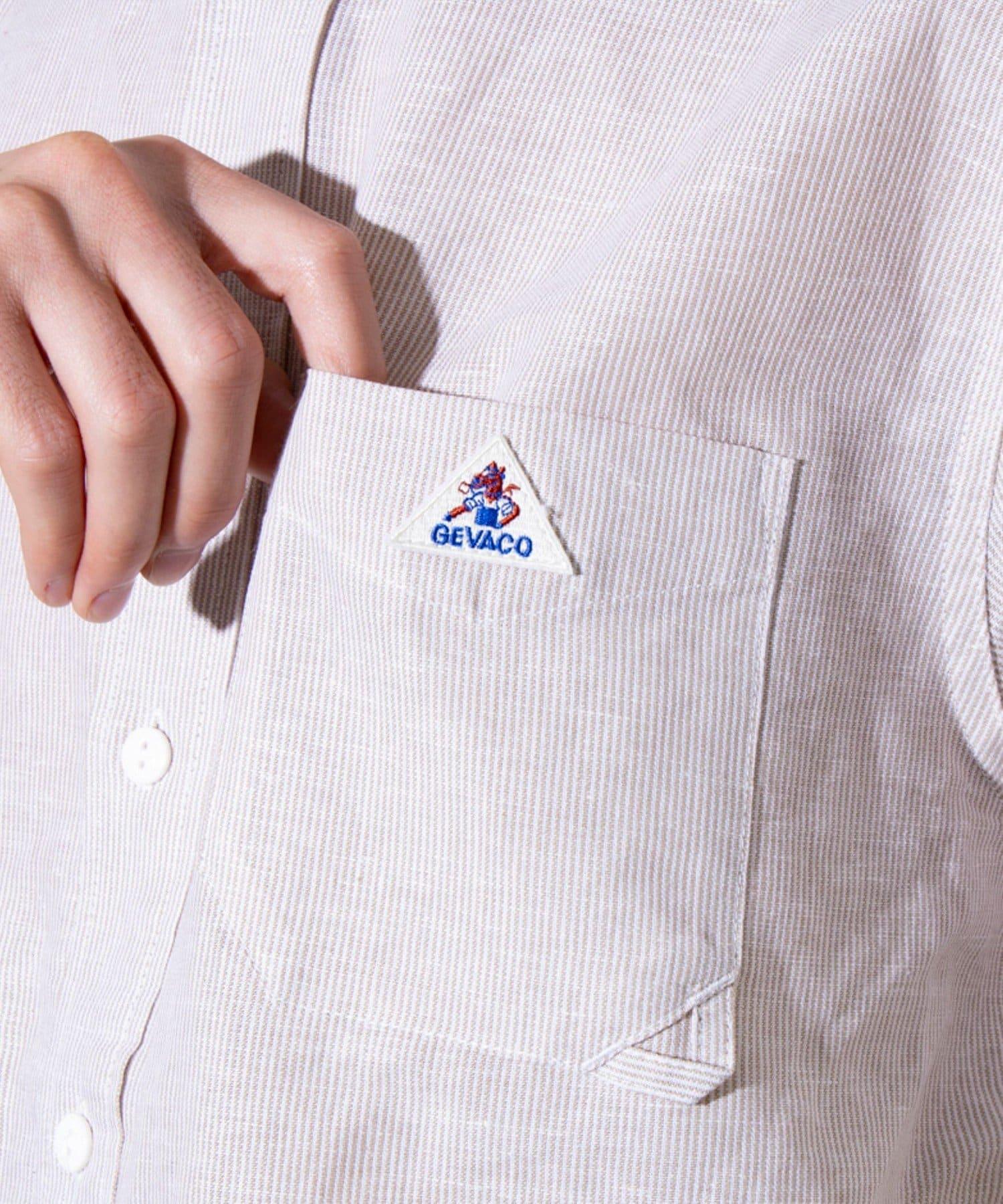 【GEVACO】棉麻 領帶領 半袖襯衫 一點標誌條紋