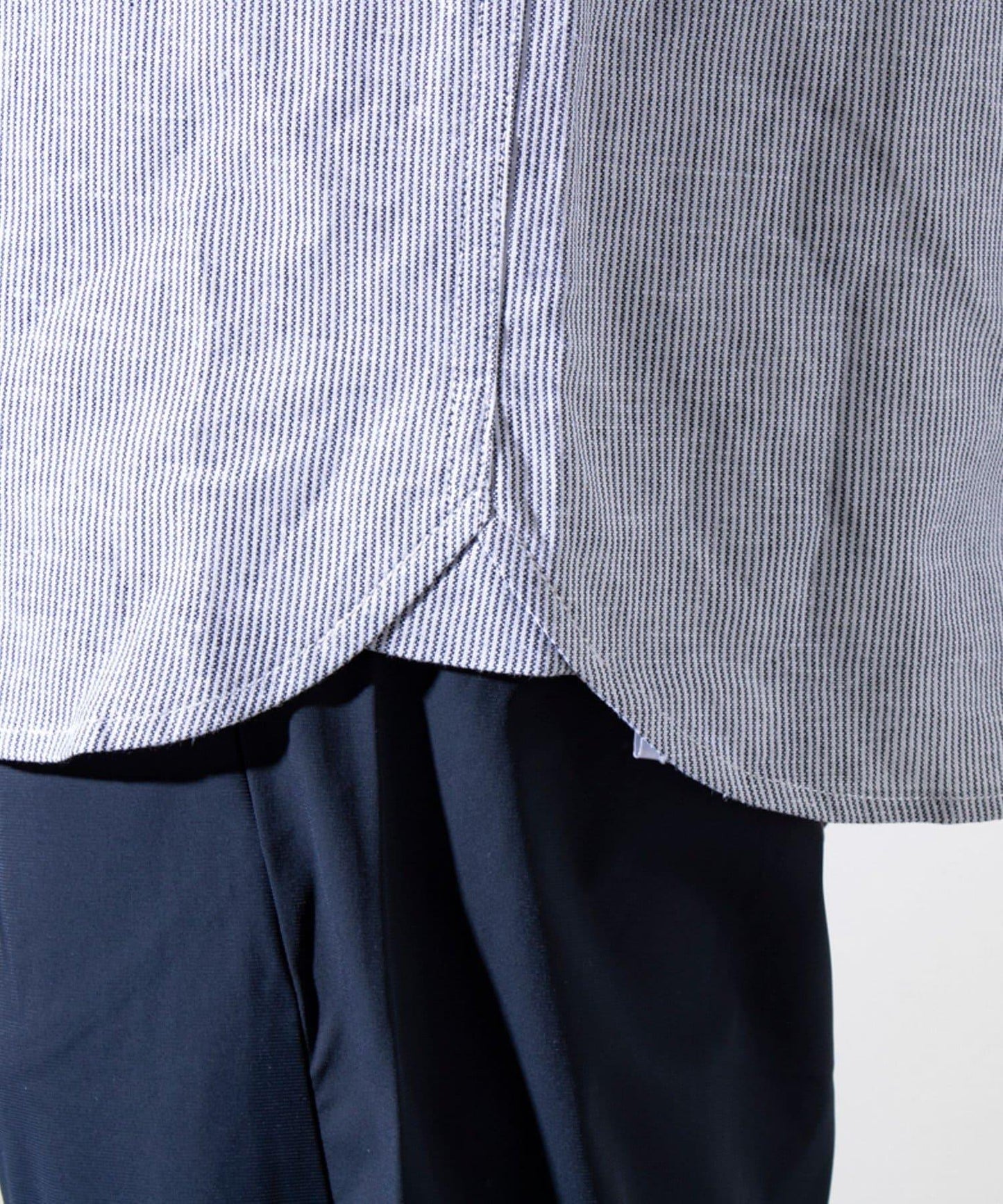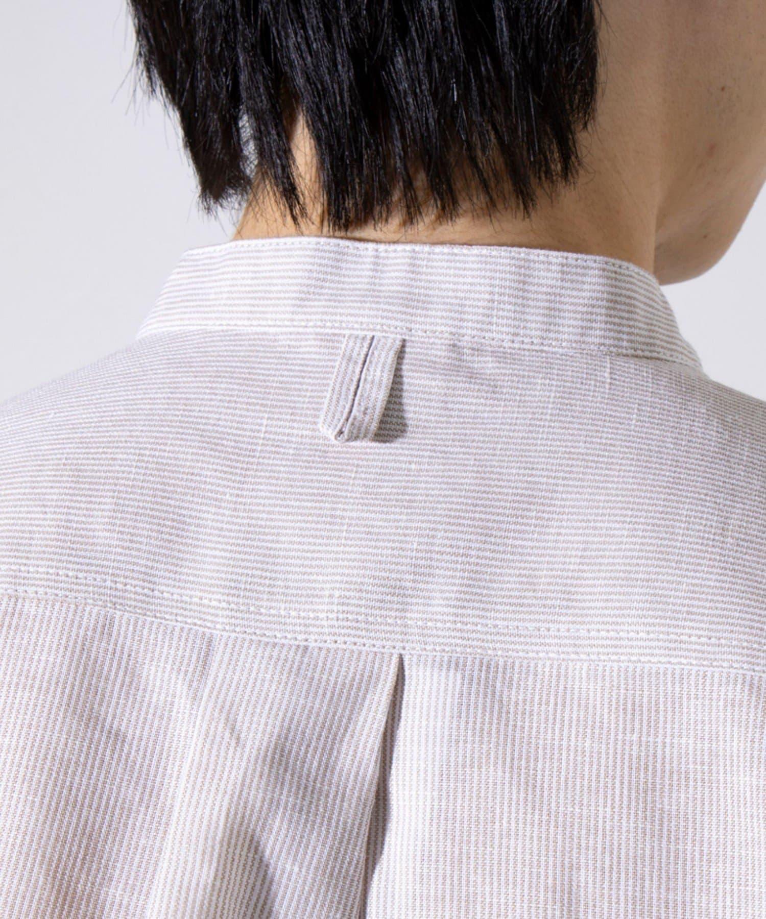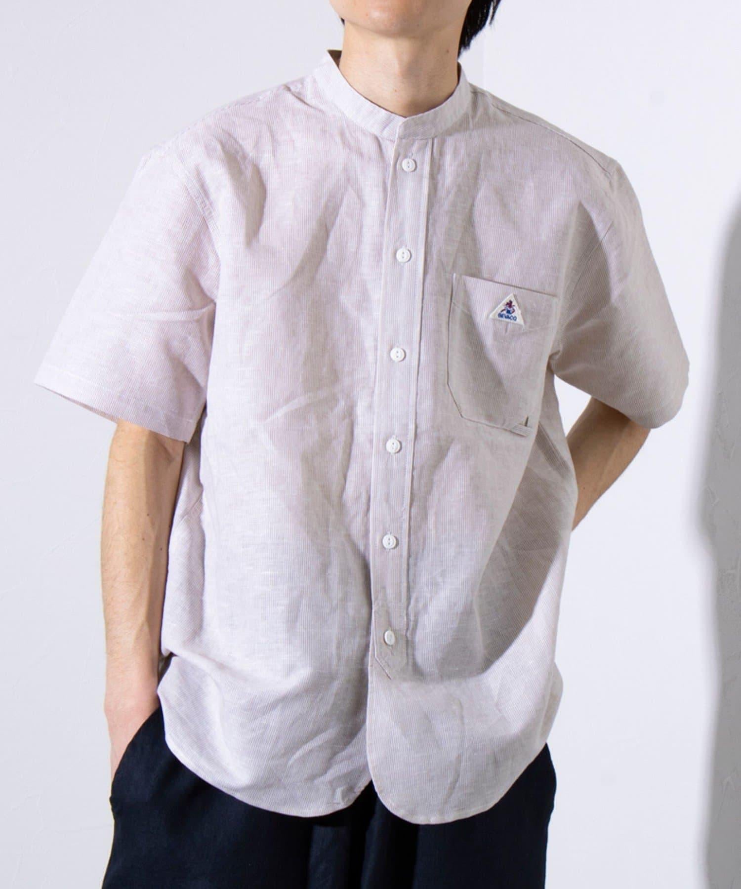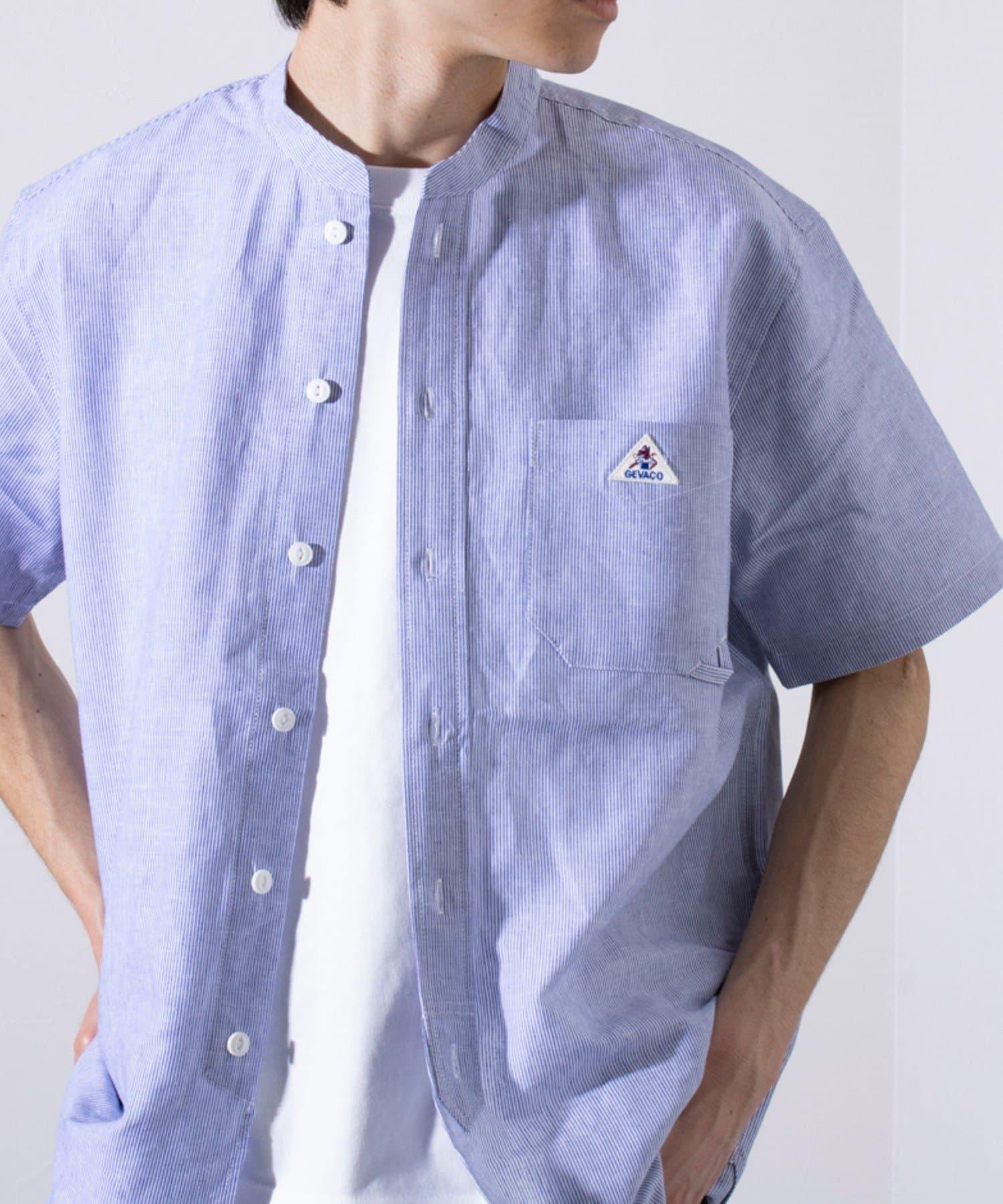 【GEVACO】棉麻 領帶領 半袖襯衫 一點標誌條紋