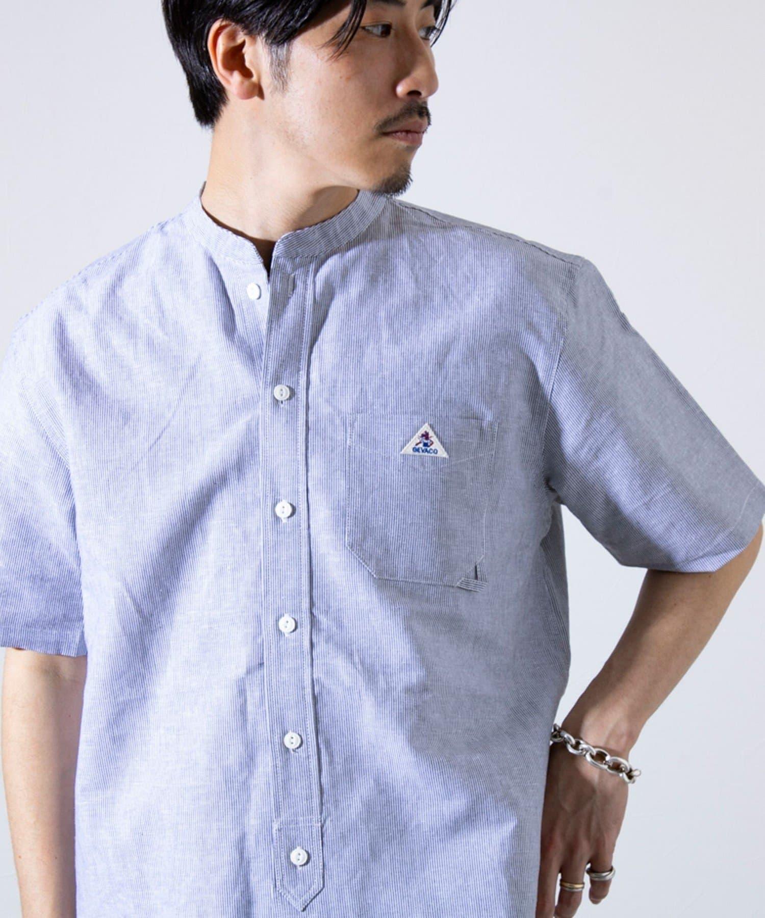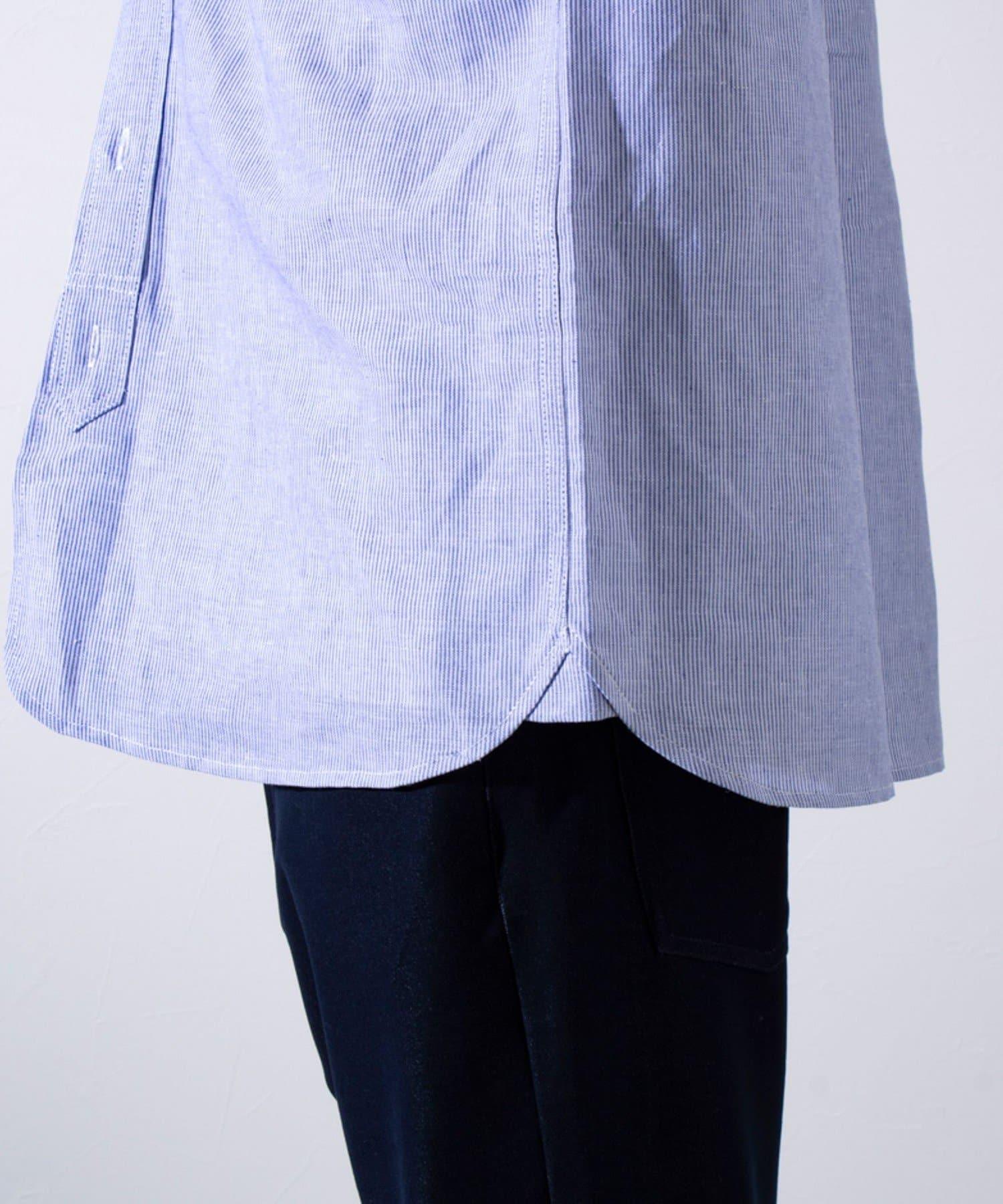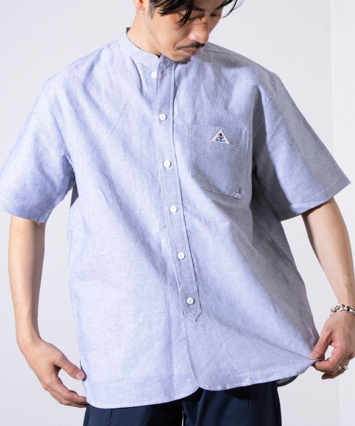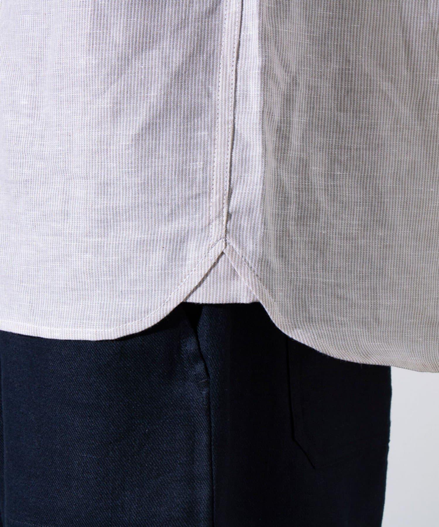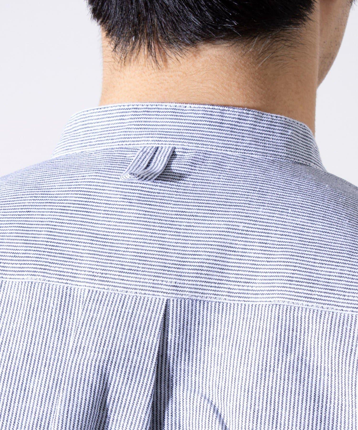 【GEVACO】棉麻 領帶領 半袖襯衫 一點標誌條紋
