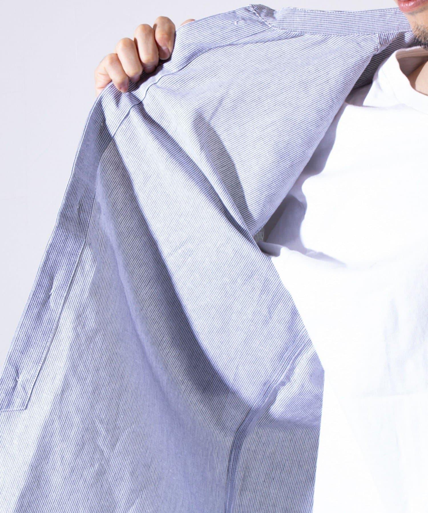 立領設計便於休閒穿著,肩寬和身寬比一般襯衫尺寸略寬鬆。
