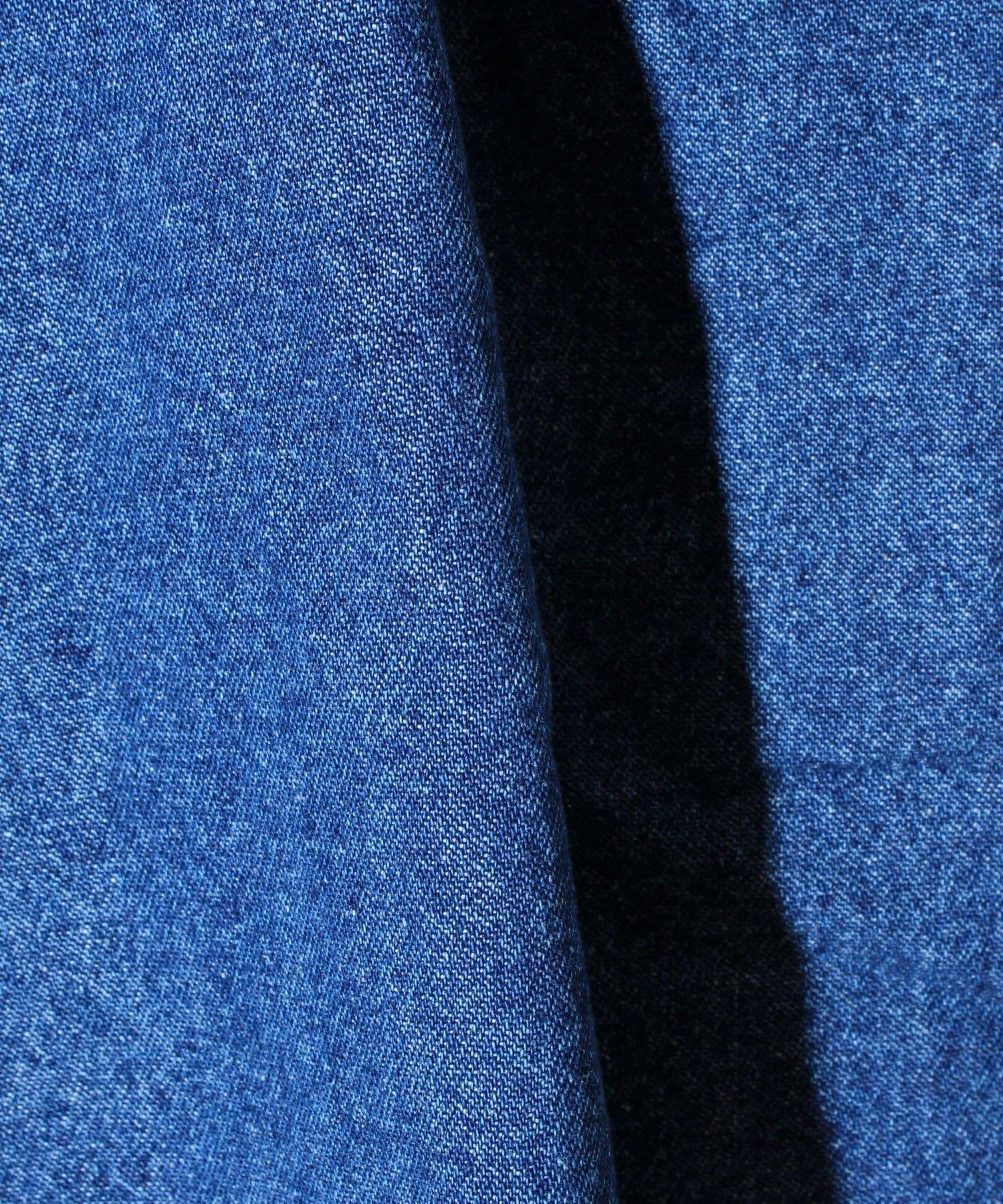 牛仔面料經過水洗處理,柔軟易穿。