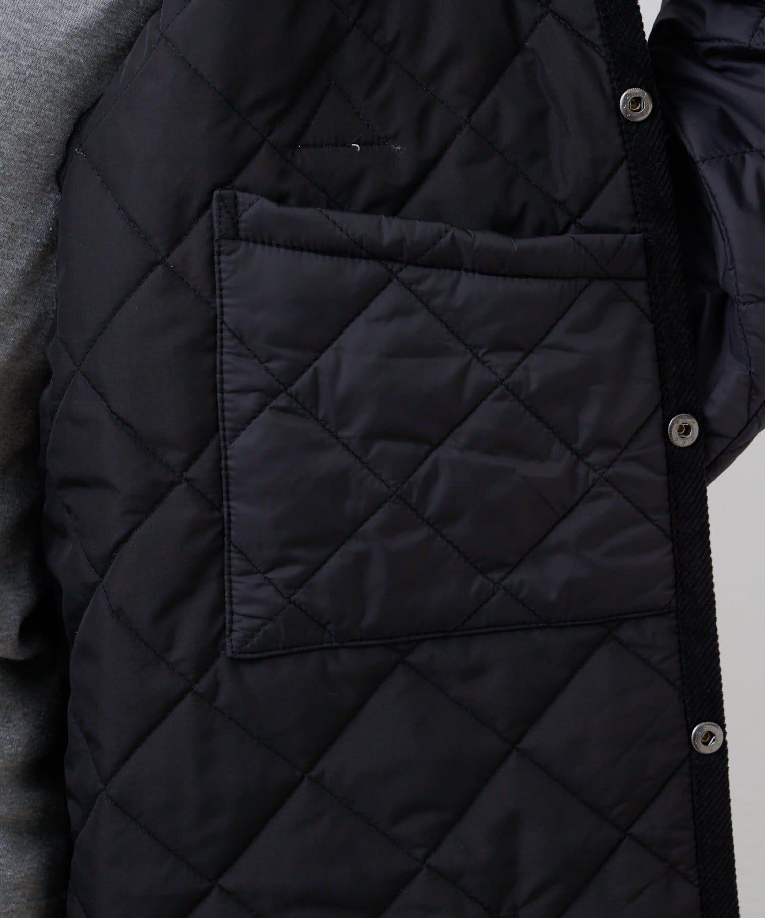 絎縫大衣,溝槽設計恰到好處地增加了整潔度,版型整齊輕盈。