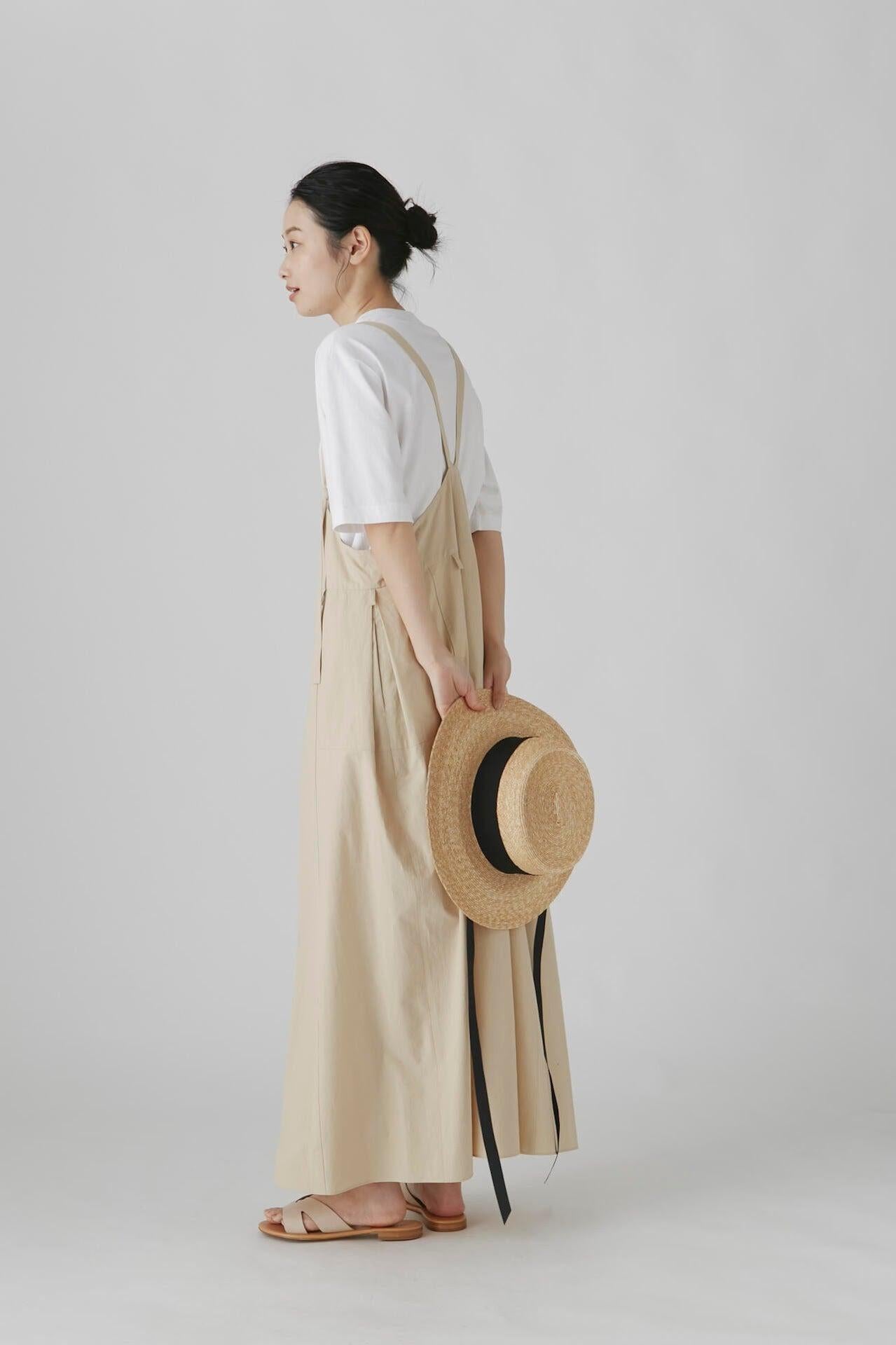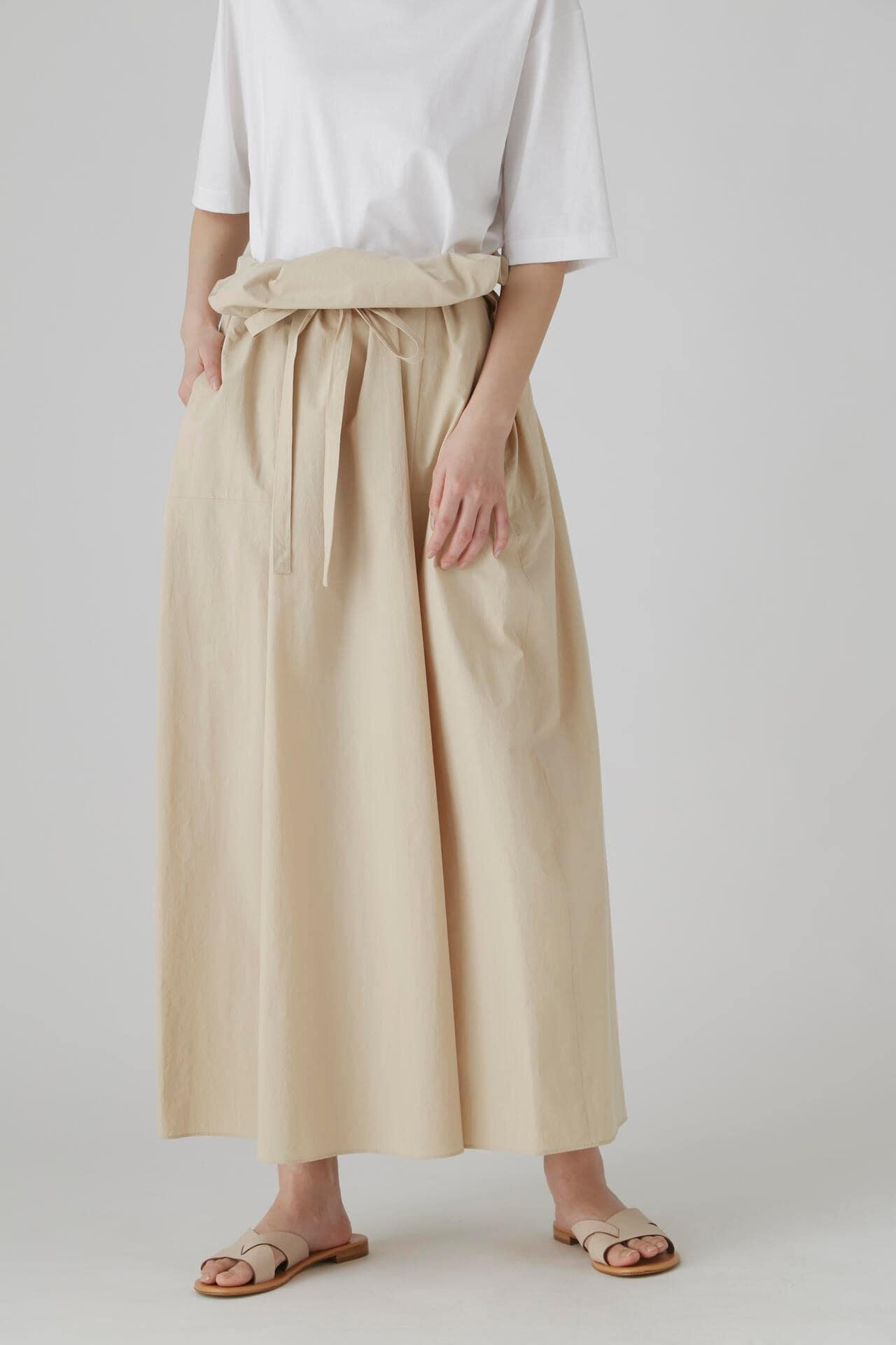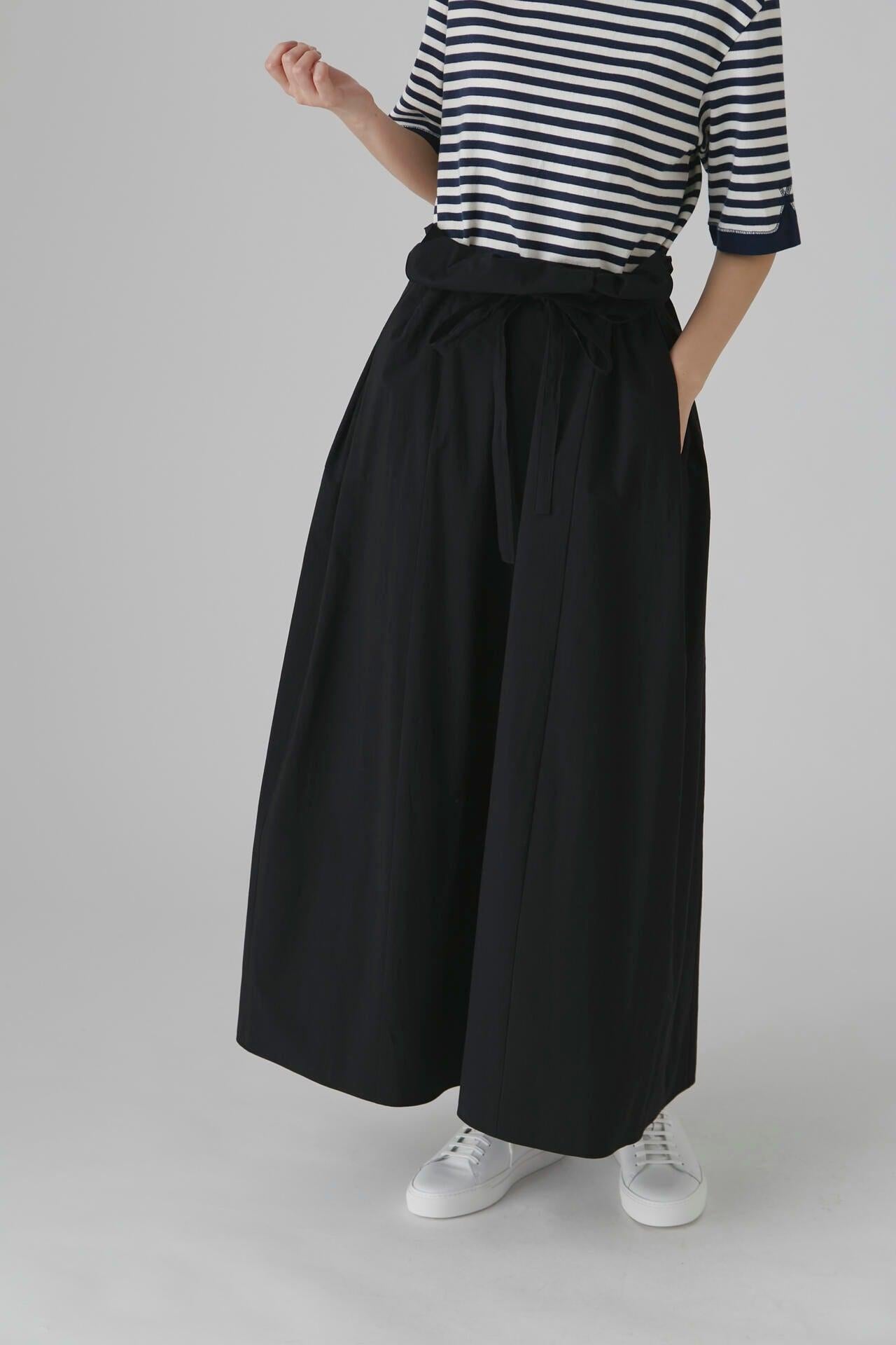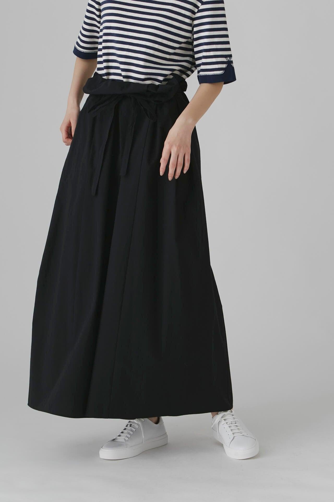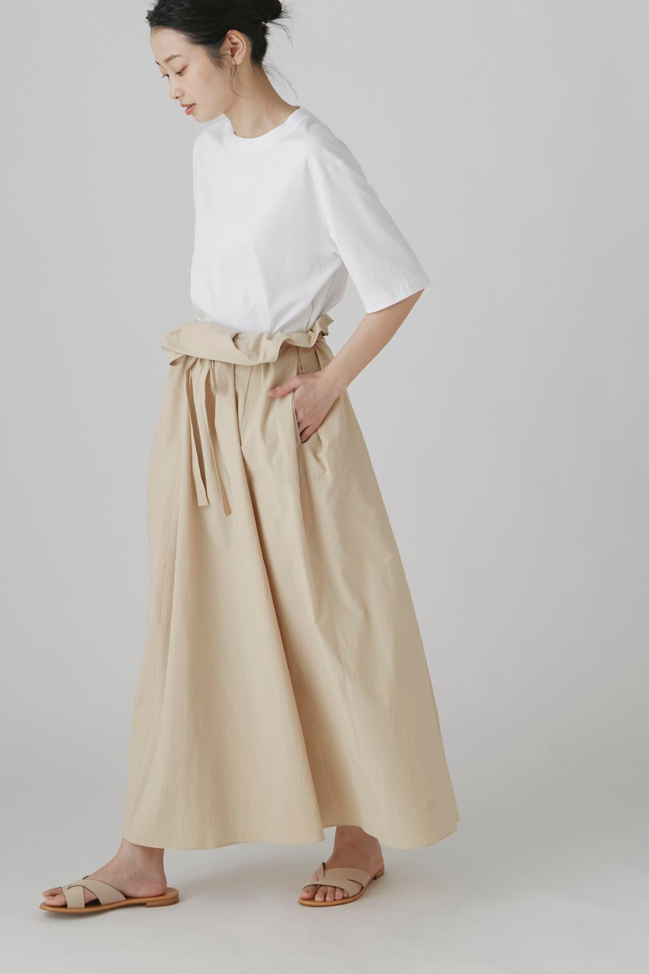 帶肩帶的半身裙,雙向設計,別有一番風味 [設計特色] 裙襬寬大的跳線裙,肩帶與裙襬相連。褶襉的細節設計使其更顯成熟,長度可根據腰帶的系法進行調整。肩帶可以從後面穿過腰帶環系在前面,而裙子則可以通過折回胸衣部分變成長裙。秋冬季還可搭配針織衫。它是一款可長期穿著的單品,不受季節限制。面料是由超長有機棉製成的表面凹凸不平的撕裂面料。推薦座標] 暖季可搭配鏤空上衣,冷季可搭配針織衫。