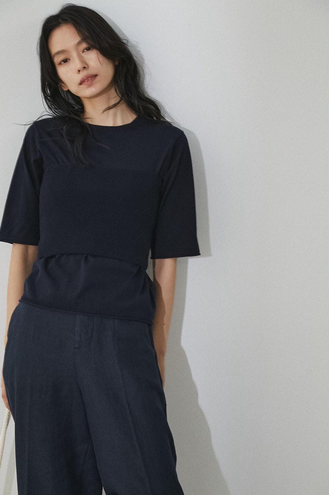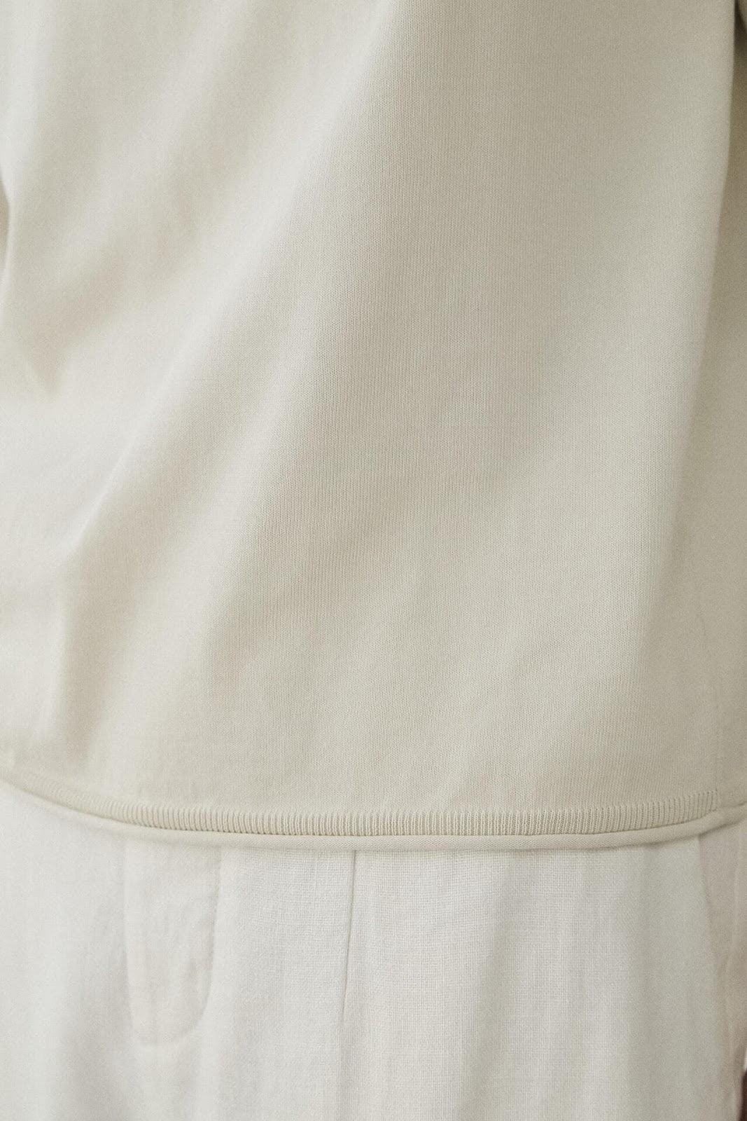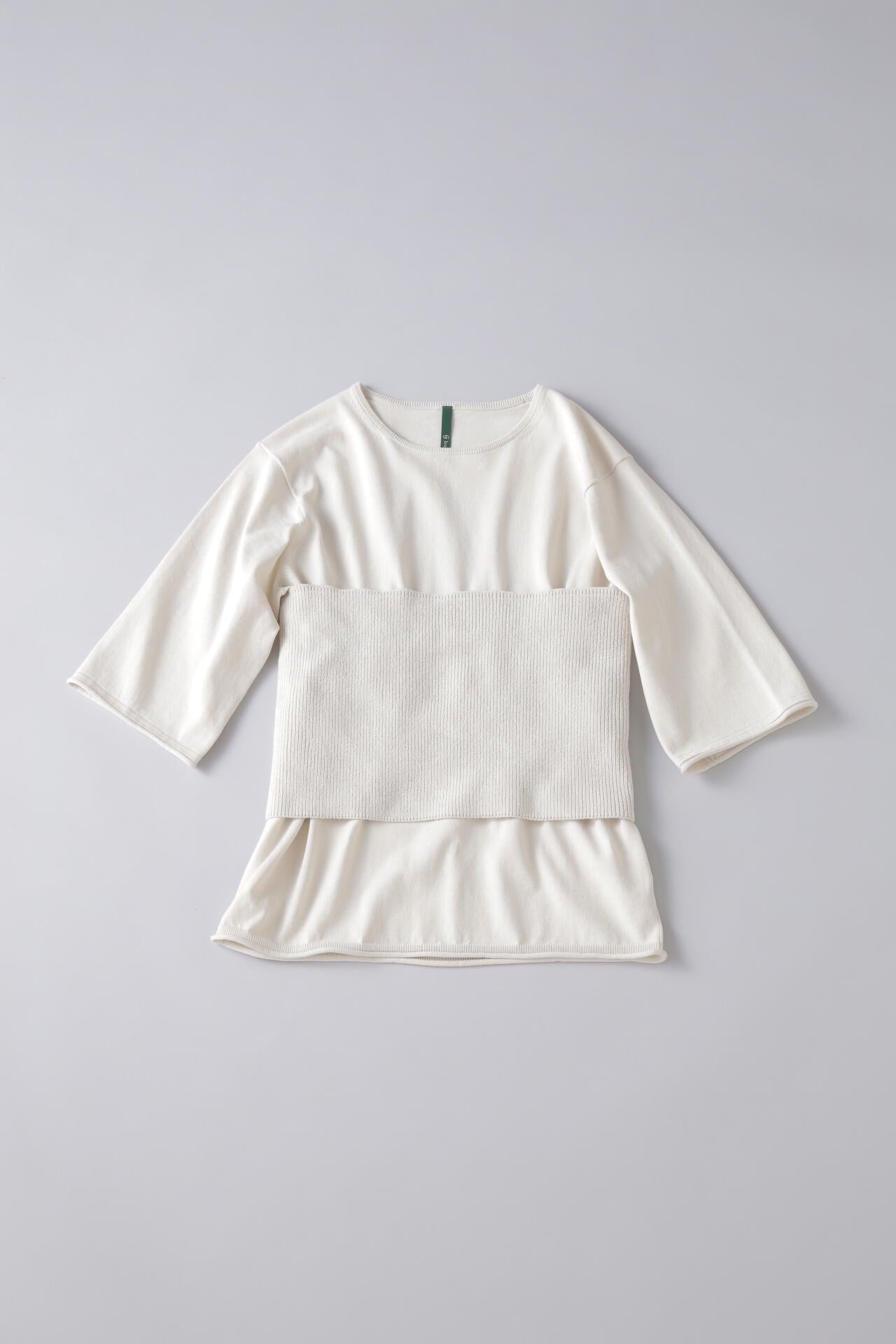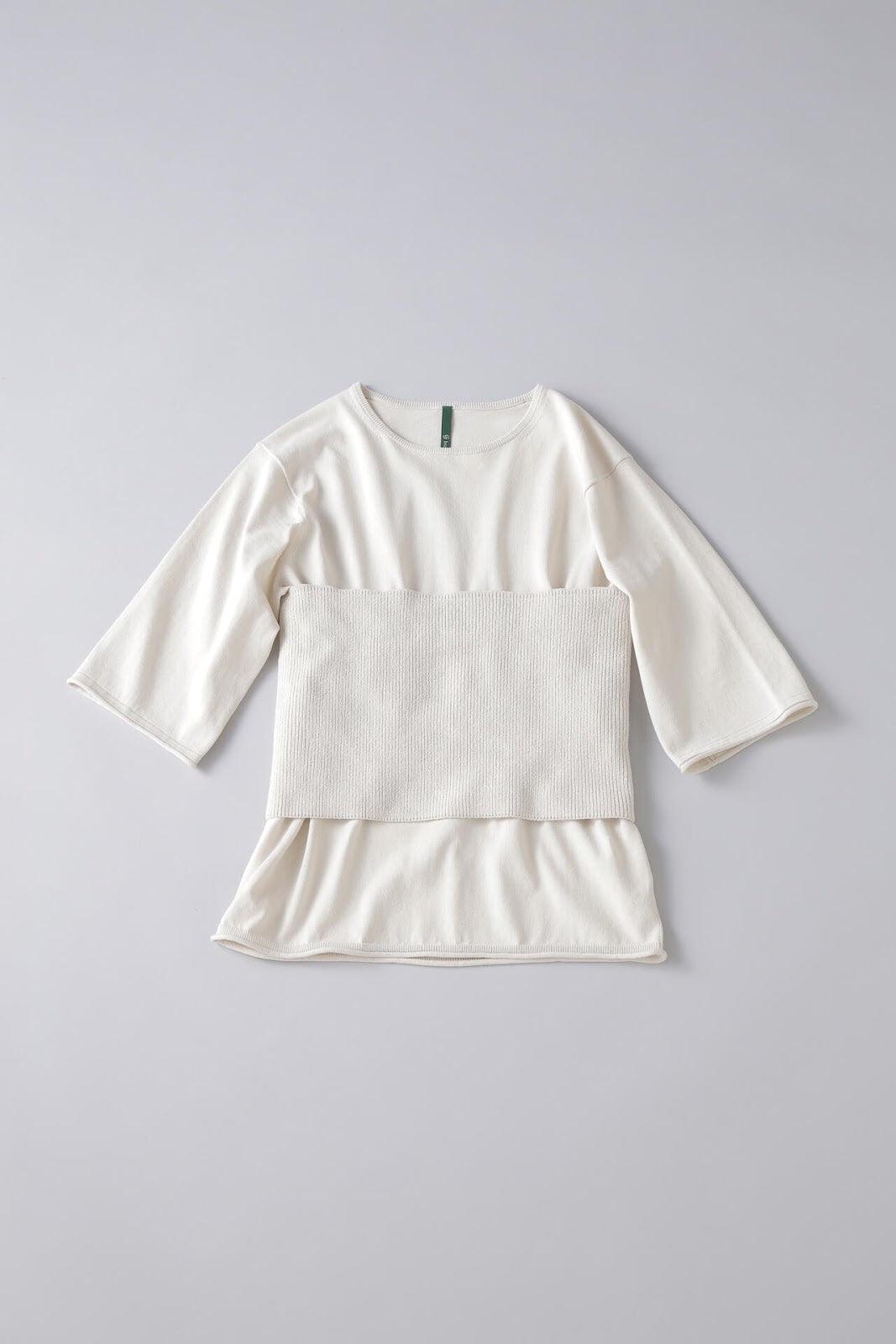 與筒狀上衣一起編織,打造簡潔明快的層次感 [設計特色] 這套設計由一件簡單的套頭衫和一件筒狀上衣組成,套頭衫表面密度高,質感優美,一側使用多股相同的紗線編織。套頭衫輪廓簡潔,領口較窄,顯得成熟穩重。筒狀上衣的束縛感較小,平衡感恰到好處。有機棉具有天然纖維的優雅光澤和順滑觸感,是一種具有高級感的優質面料。上衣由有機棉製成,具有天然纖維的優雅光澤和順滑觸感,優質的面料讓人倍感👍。