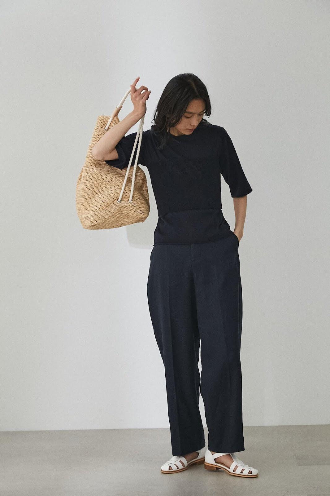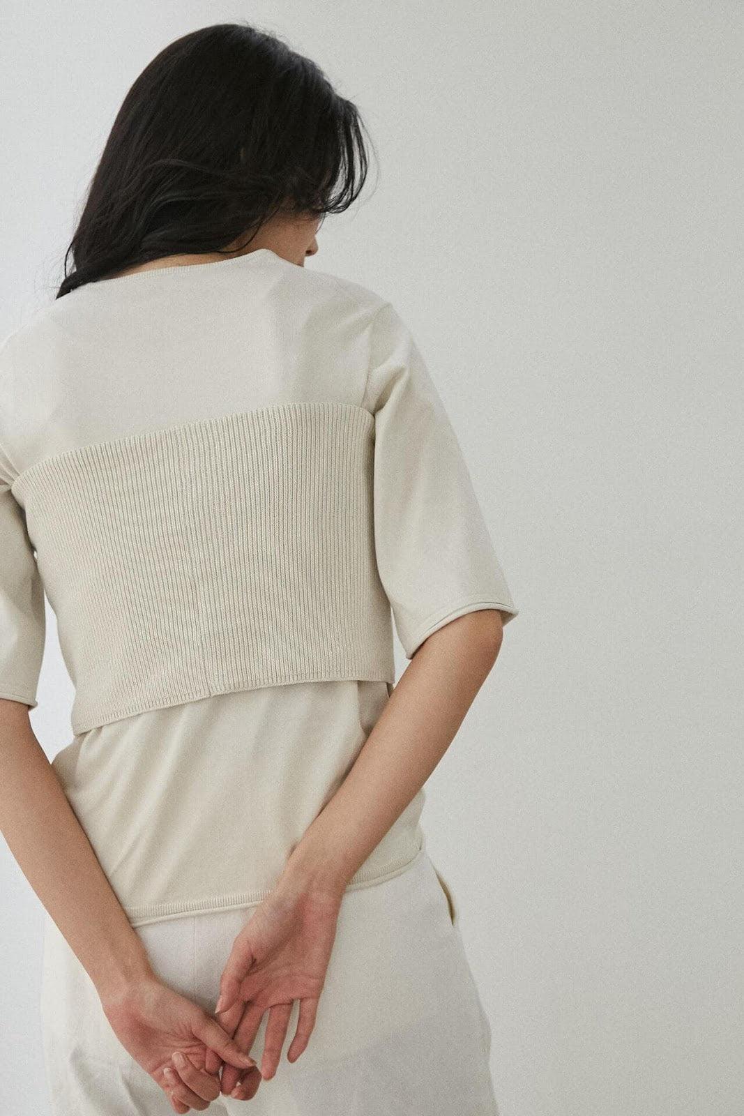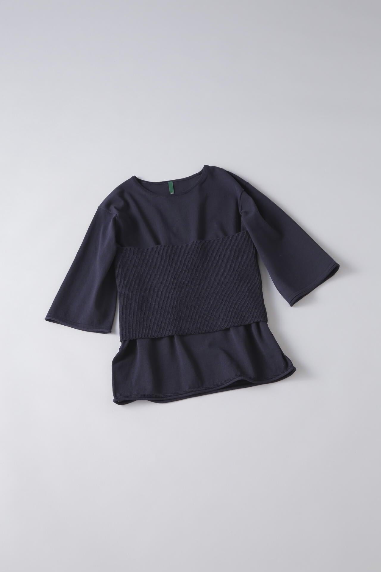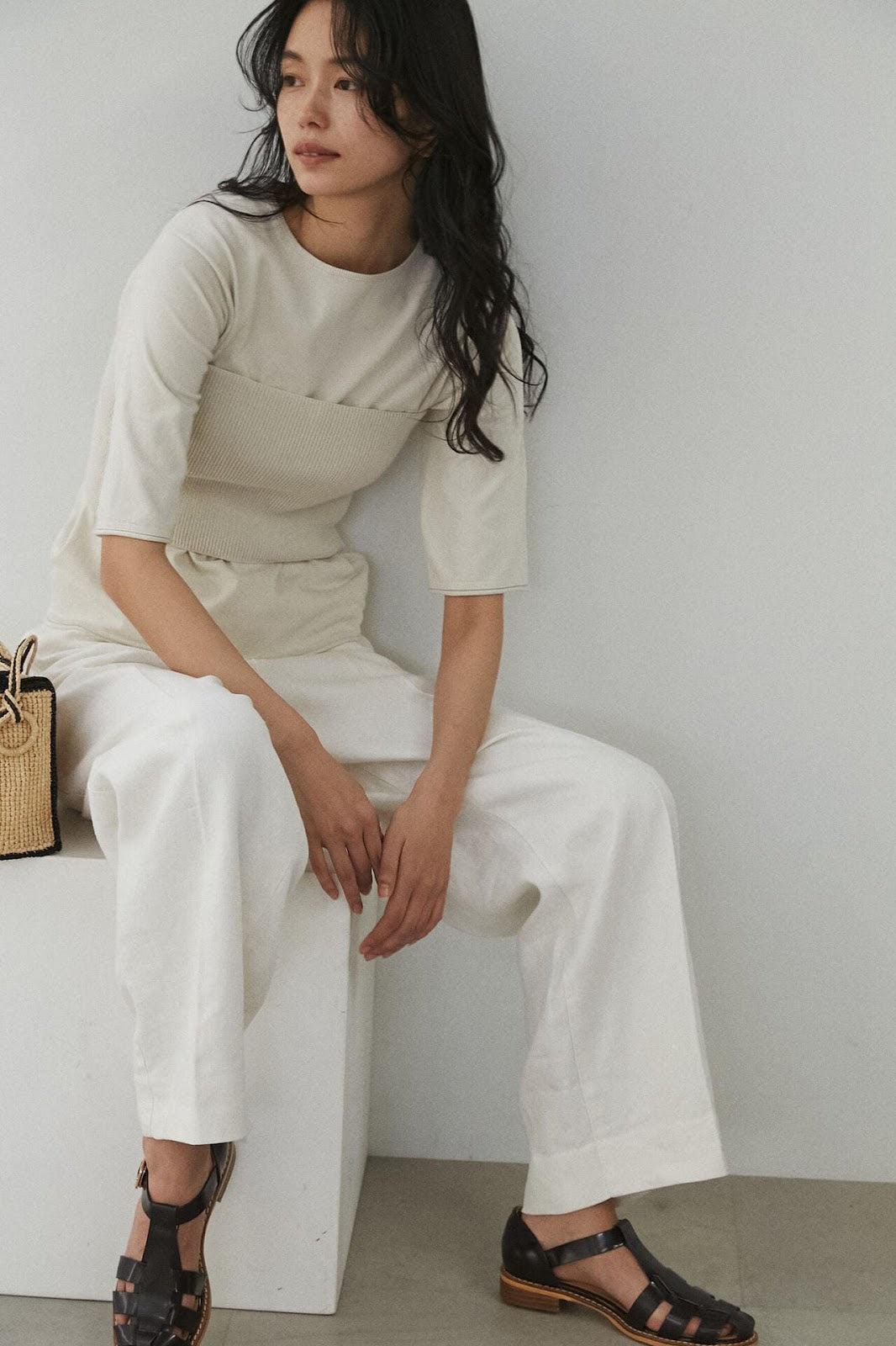 與筒狀上衣一起編織,打造簡潔明快的層次感 [設計特色] 這套設計由一件簡單的套頭衫和一件筒狀上衣組成,套頭衫表面密度高,質感優美,一側使用多股相同的紗線編織。套頭衫輪廓簡潔,領口較窄,顯得成熟穩重。筒狀上衣的束縛感較小,平衡感恰到好處。有機棉具有天然纖維的優雅光澤和順滑觸感,是一種具有高級感的優質面料。上衣由有機棉製成,具有天然纖維的優雅光澤和順滑觸感,優質的面料讓人倍感👍。