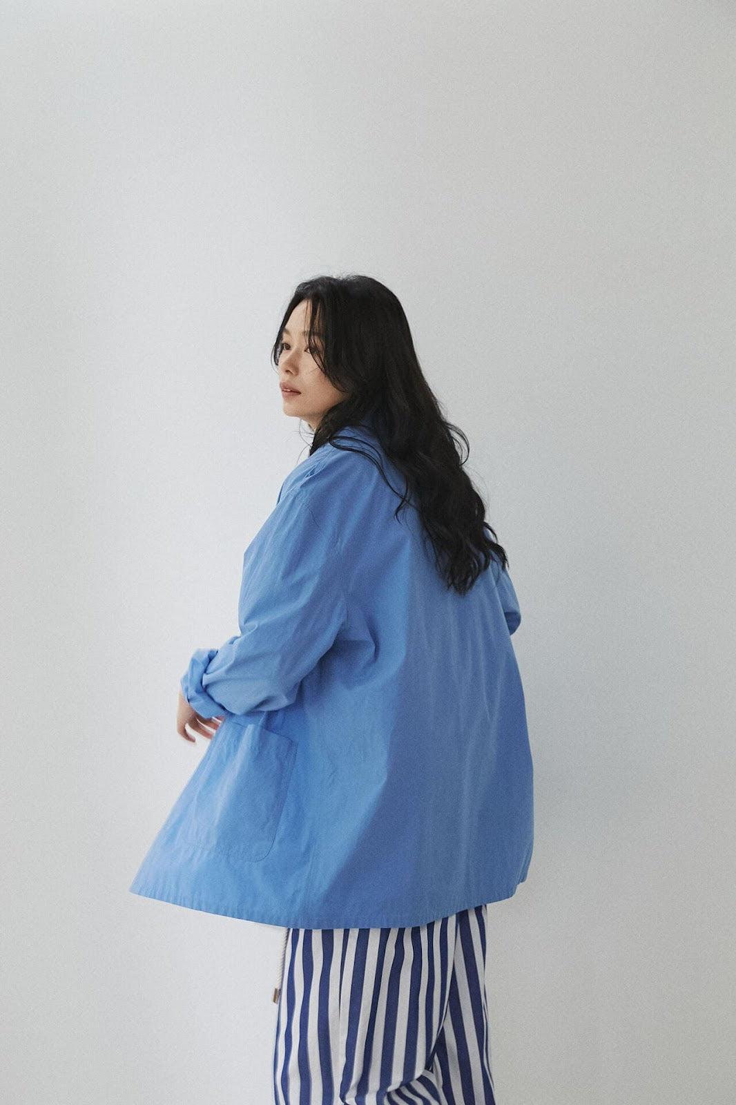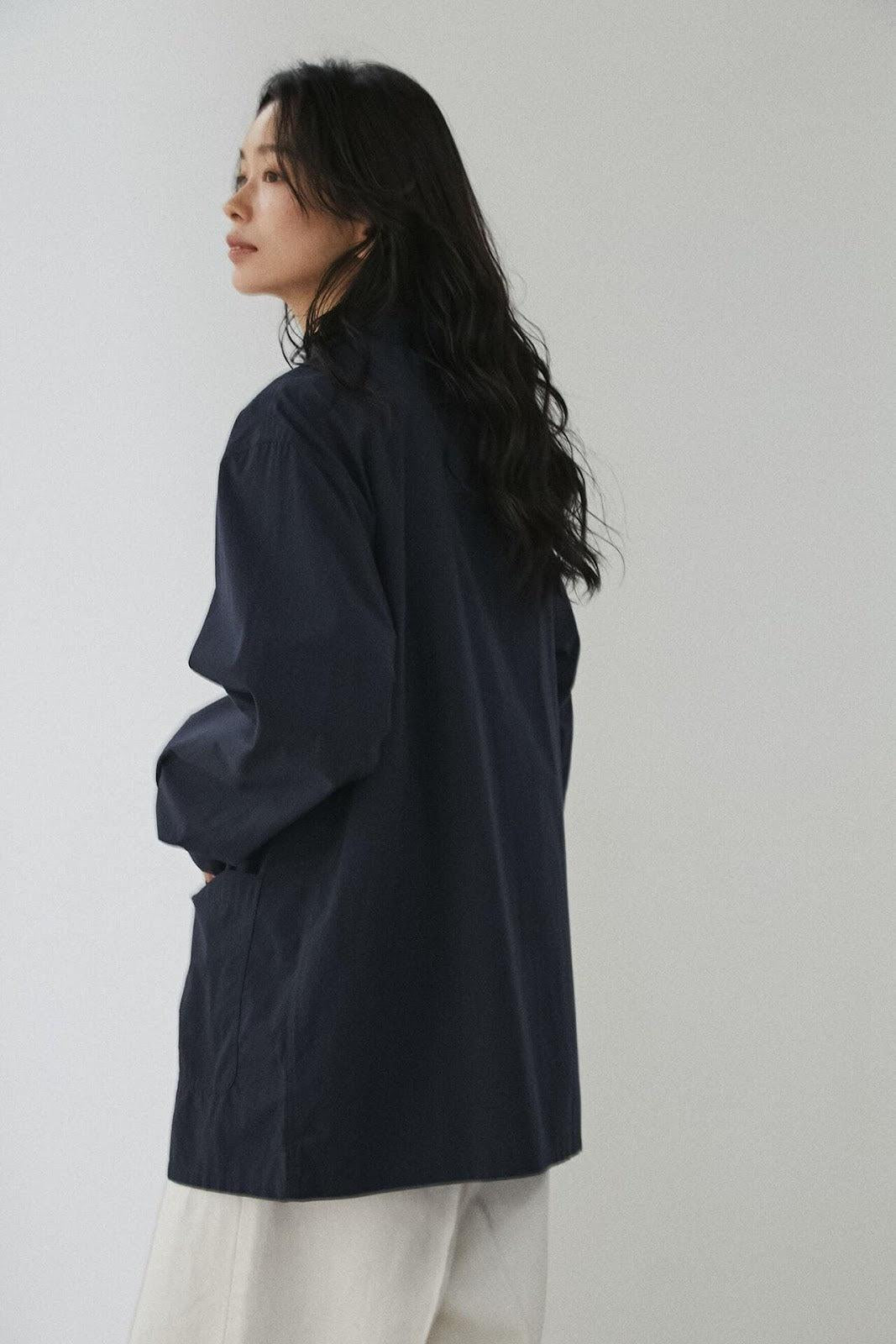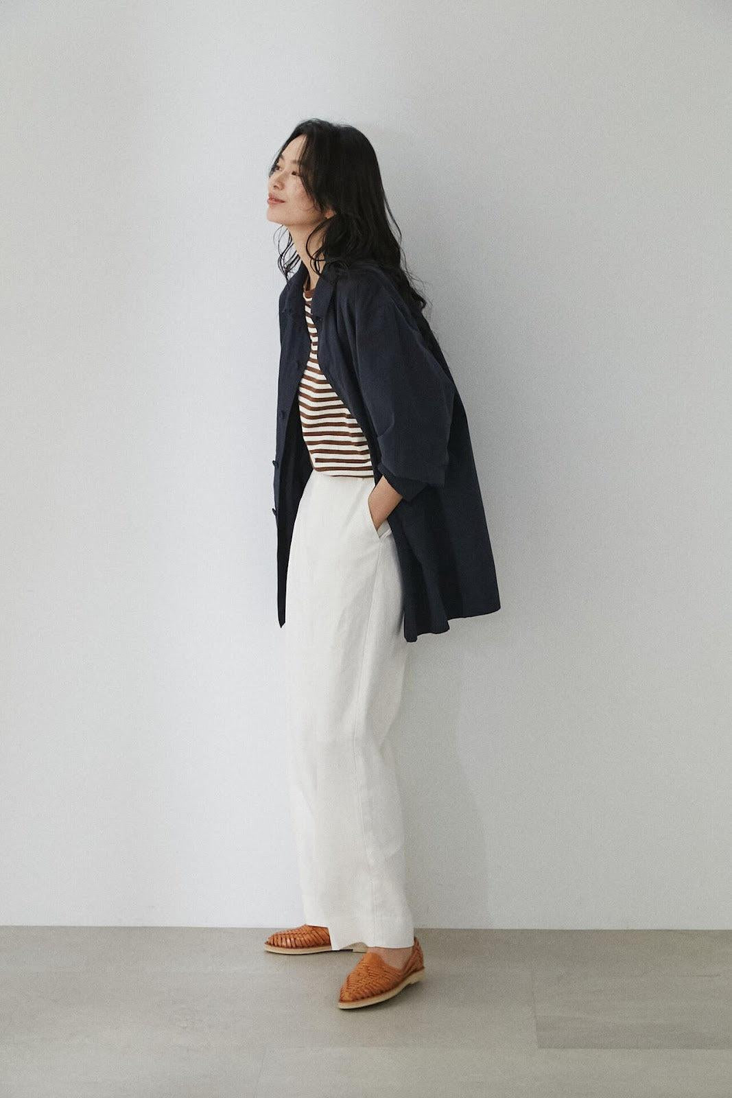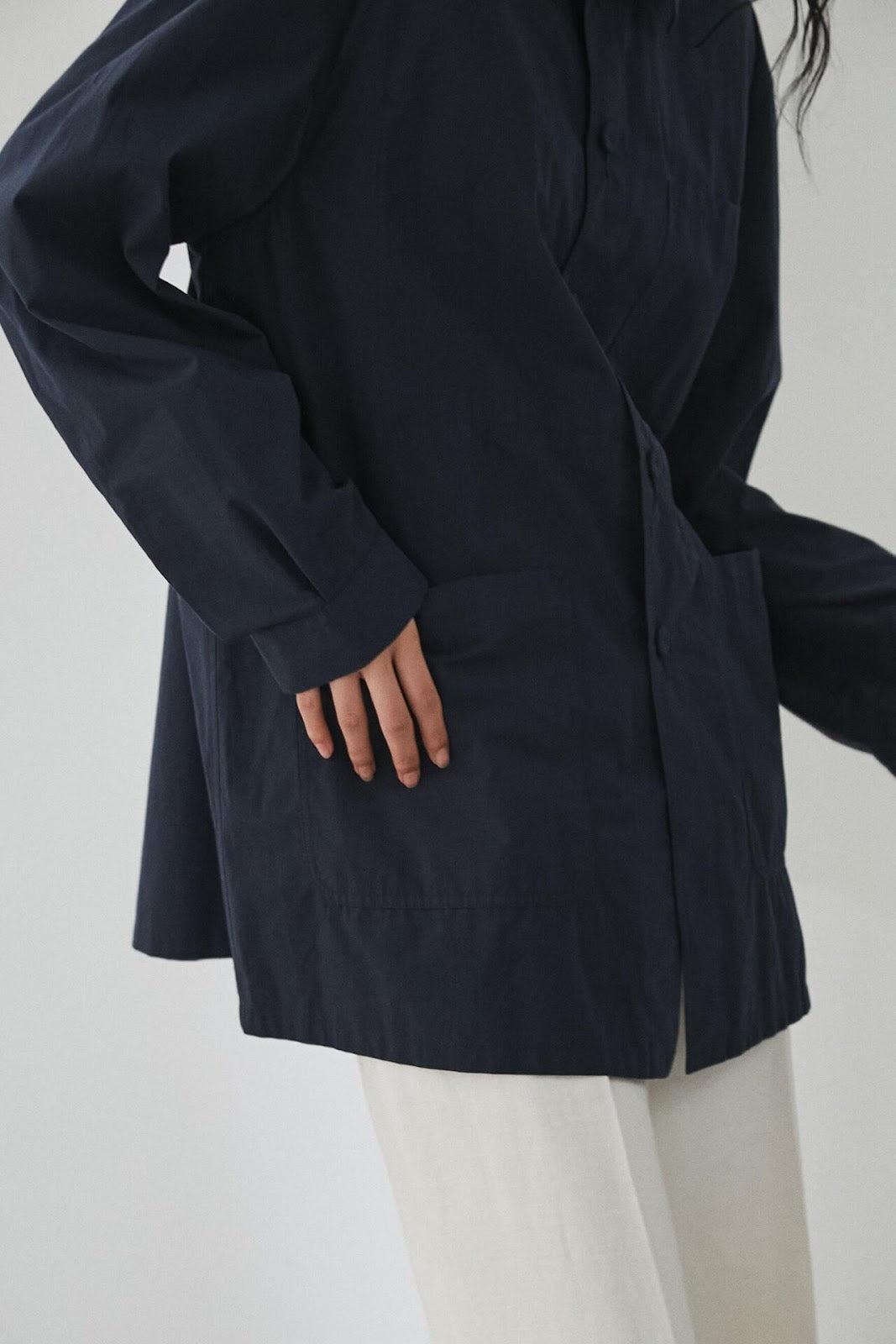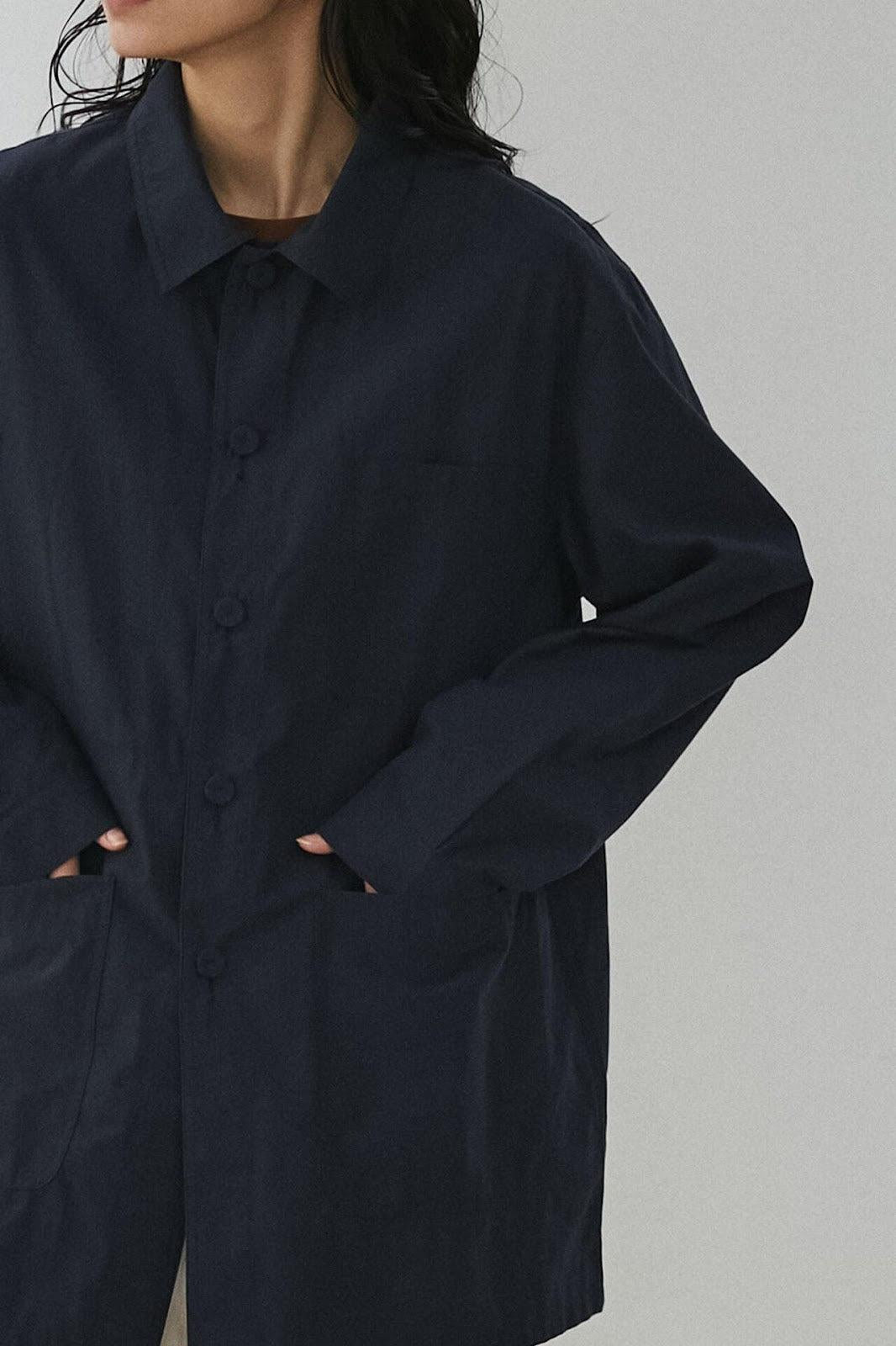 採用富有表現力的面料,打造優雅外觀的打字機夾克 [設計要點] 在輕質面料上採用復古工裝夾克製成的春裝夾克。這款西裝外套採用輕質面料,以復古工作夾克為原型。夾克採用棉質打字機制成,是一種有機材料,並採用傳統的近江染色技術進行加工,可固定褶皺形狀,具有輕鬆的感覺。推薦座標:此款夾克推薦簡潔、休閒的風格。可與同材質的裙子和連衣裙搭配作為套裝穿著。