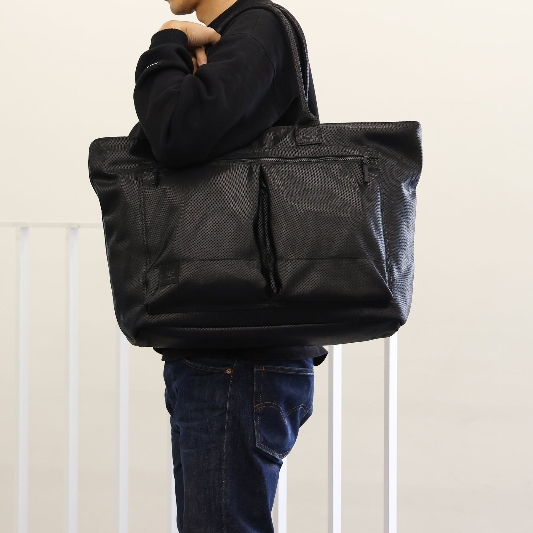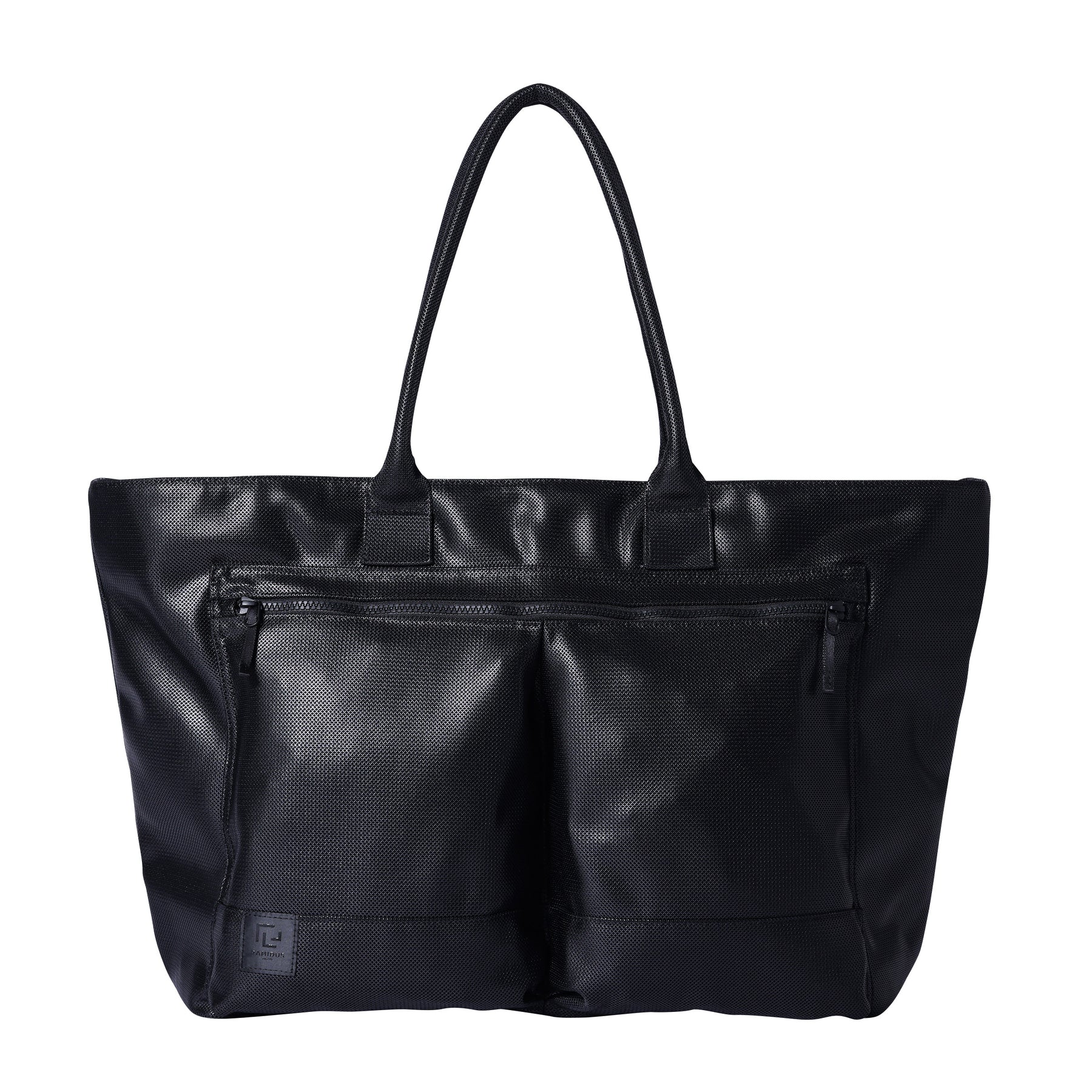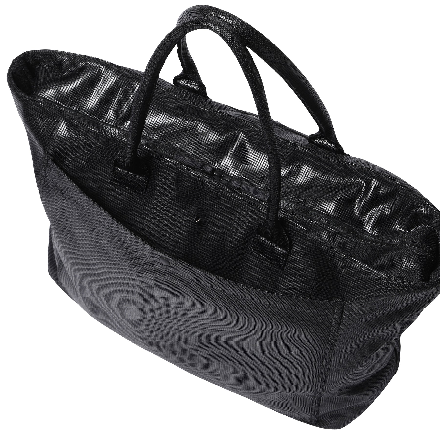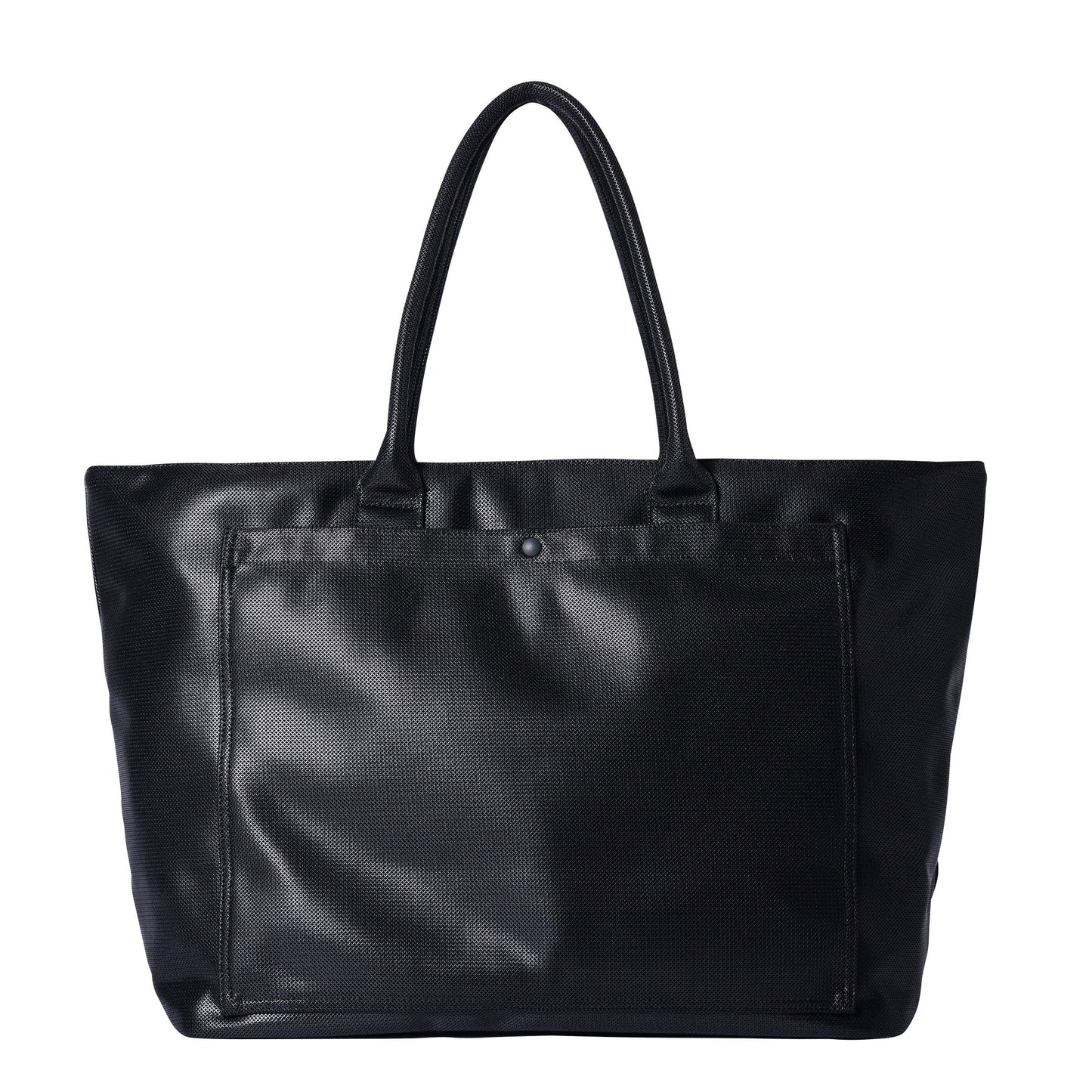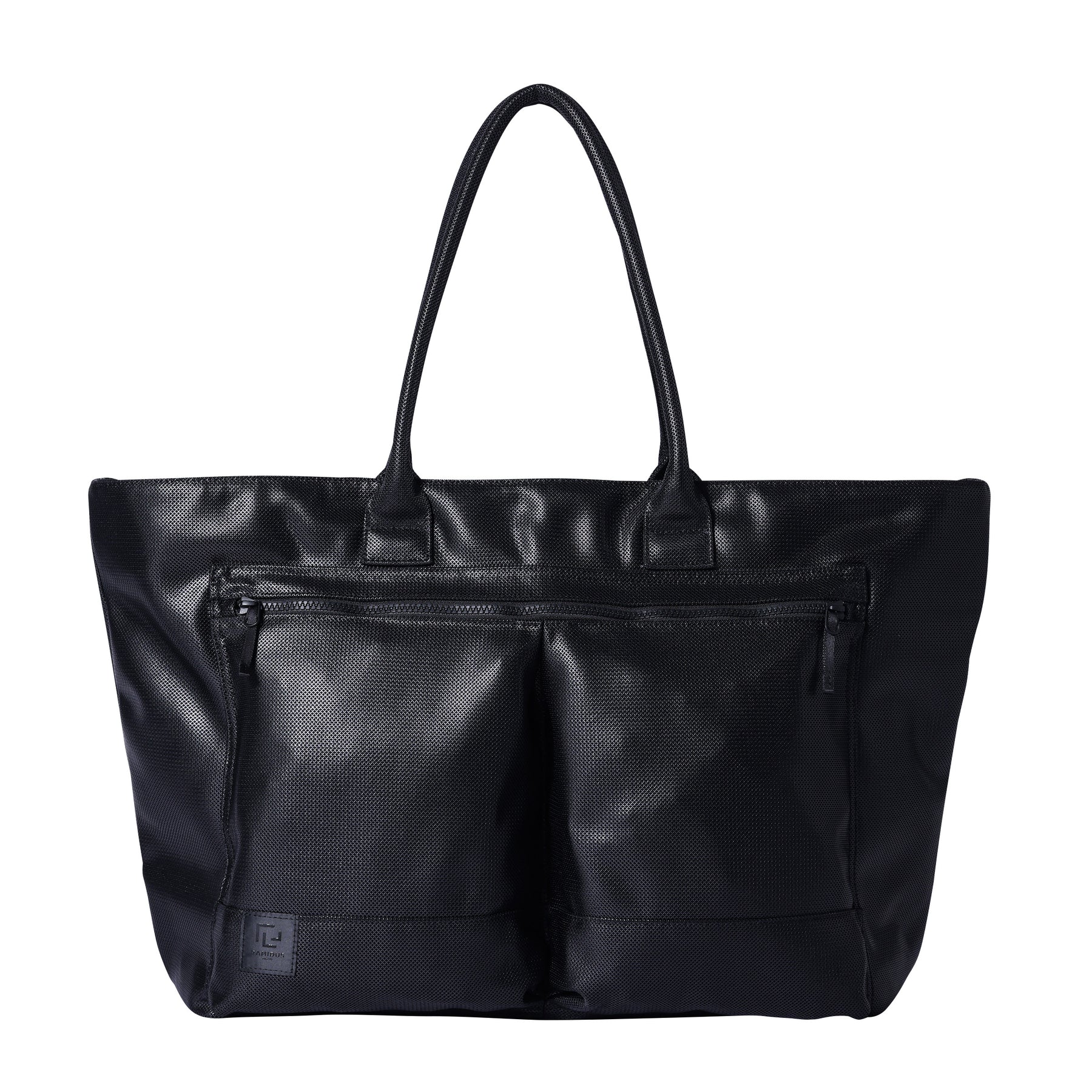 大型手提包,正面寬闊,存儲容量大。內部有一個網兜,可存放小件物品,兩側還有水壺袋,可存放塑料瓶和摺疊傘。與其他系列的同款產品相比,這款手袋的規格更加均衡,減少了手柄的體積。包包採用閃亮的👍穿孔材料製成,讓人聯想到皮革。
