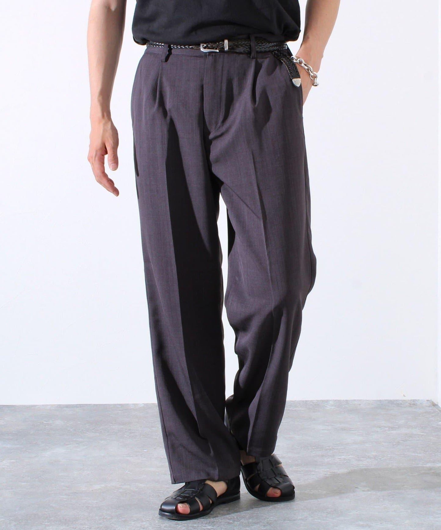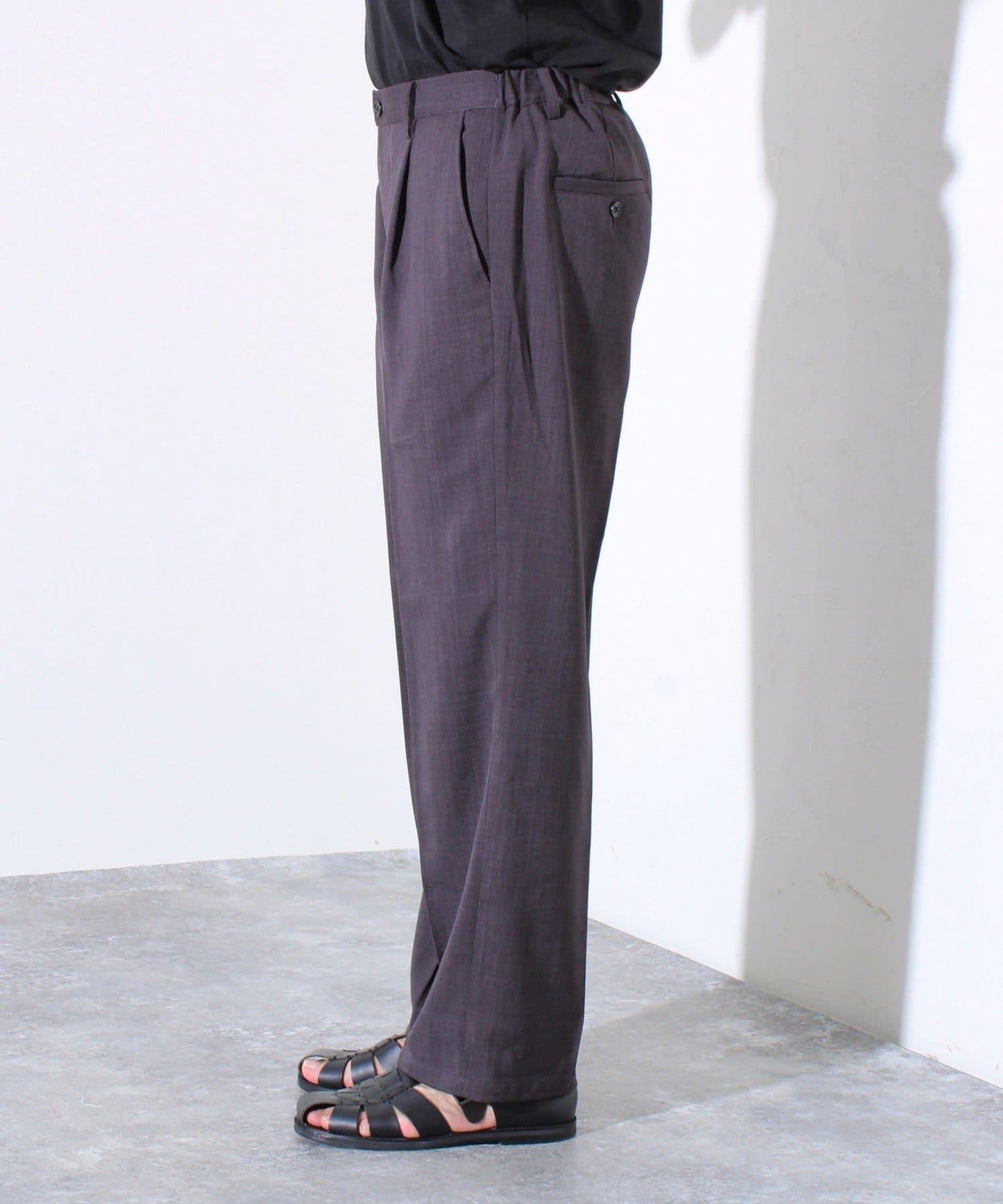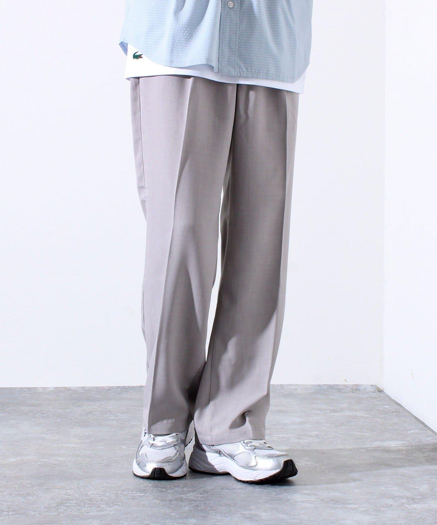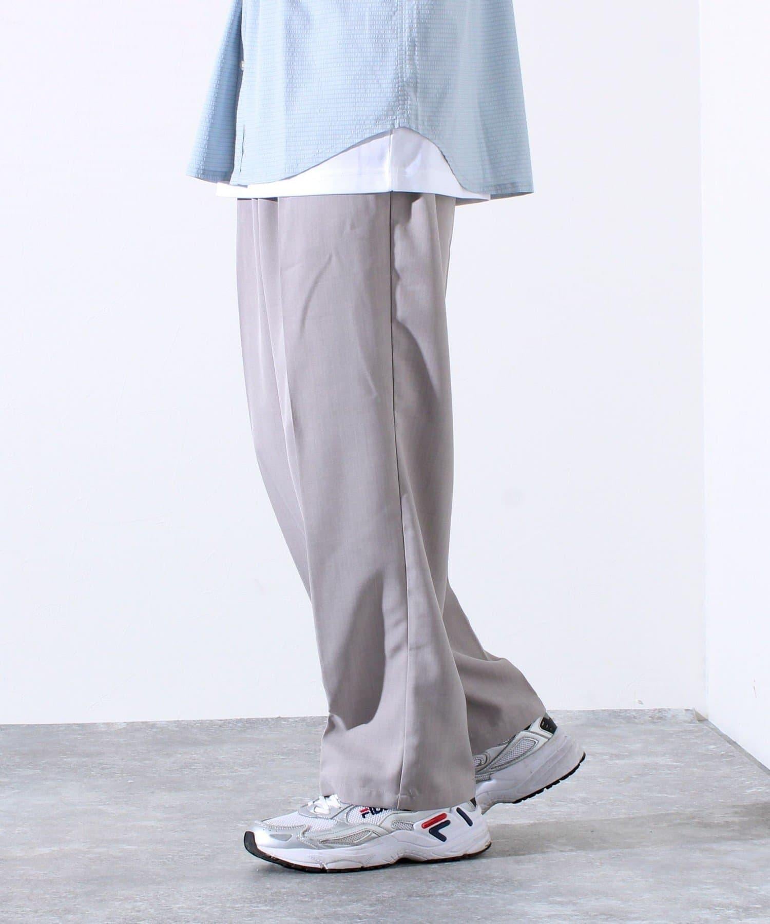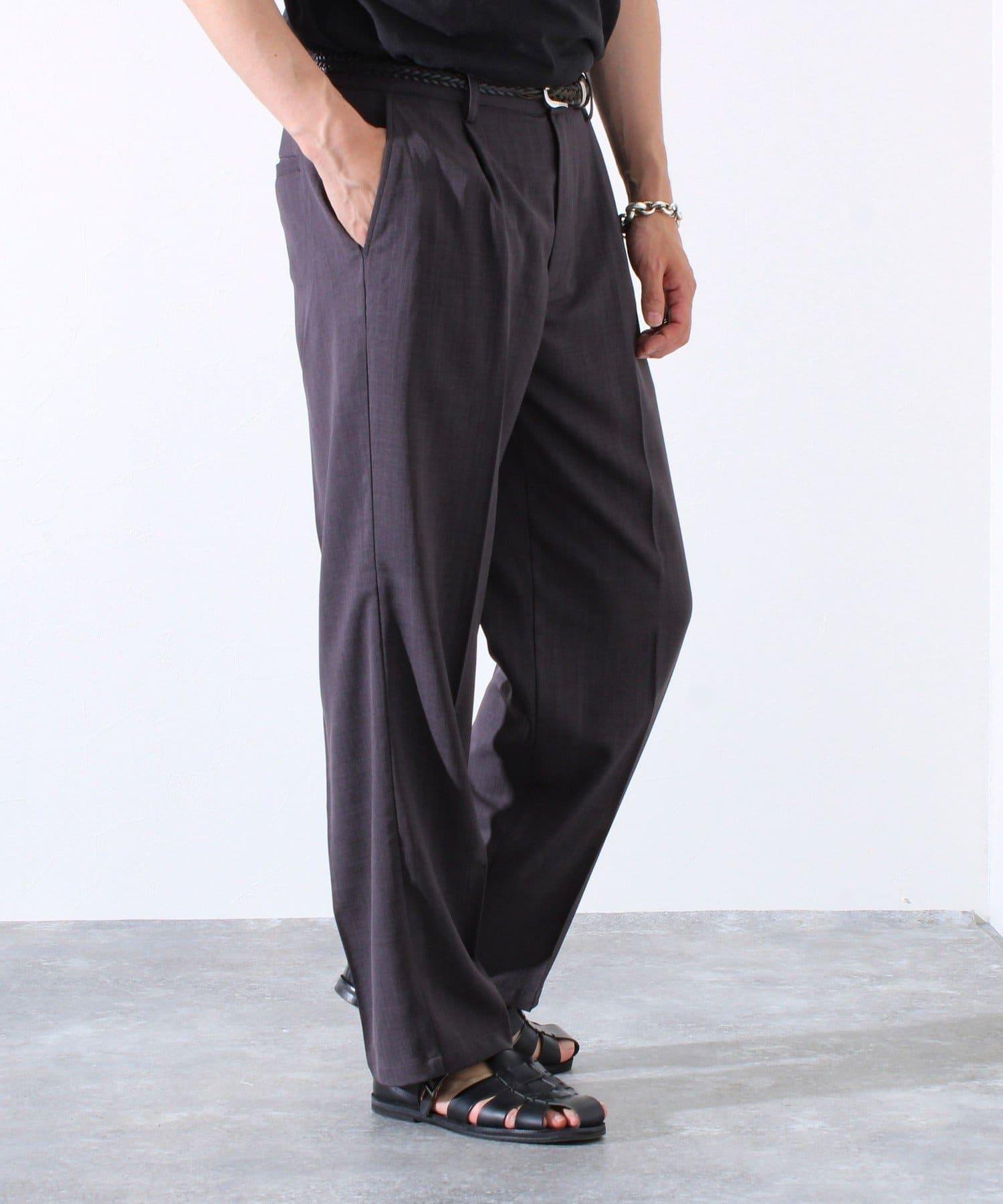 【GLOSTER】折褶設計 乾爽面料 寬鬆直筒 西褲褲裝