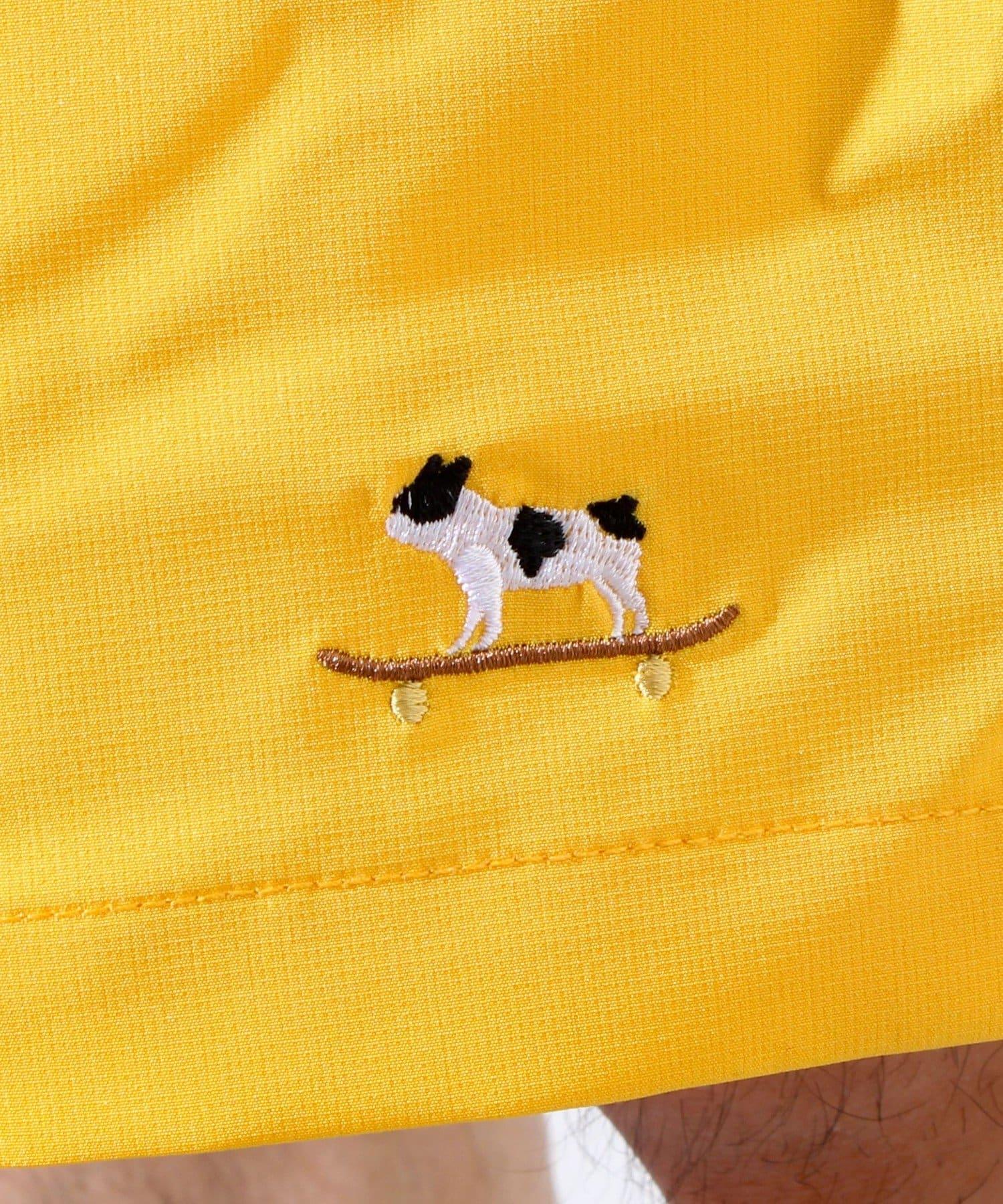 #Flexible shorts #4-way stretch #Summer coordination #Skateboard dog #Functional shorts #GLOSTER #One-mile wear #Dog embroidery #Men's shorts
