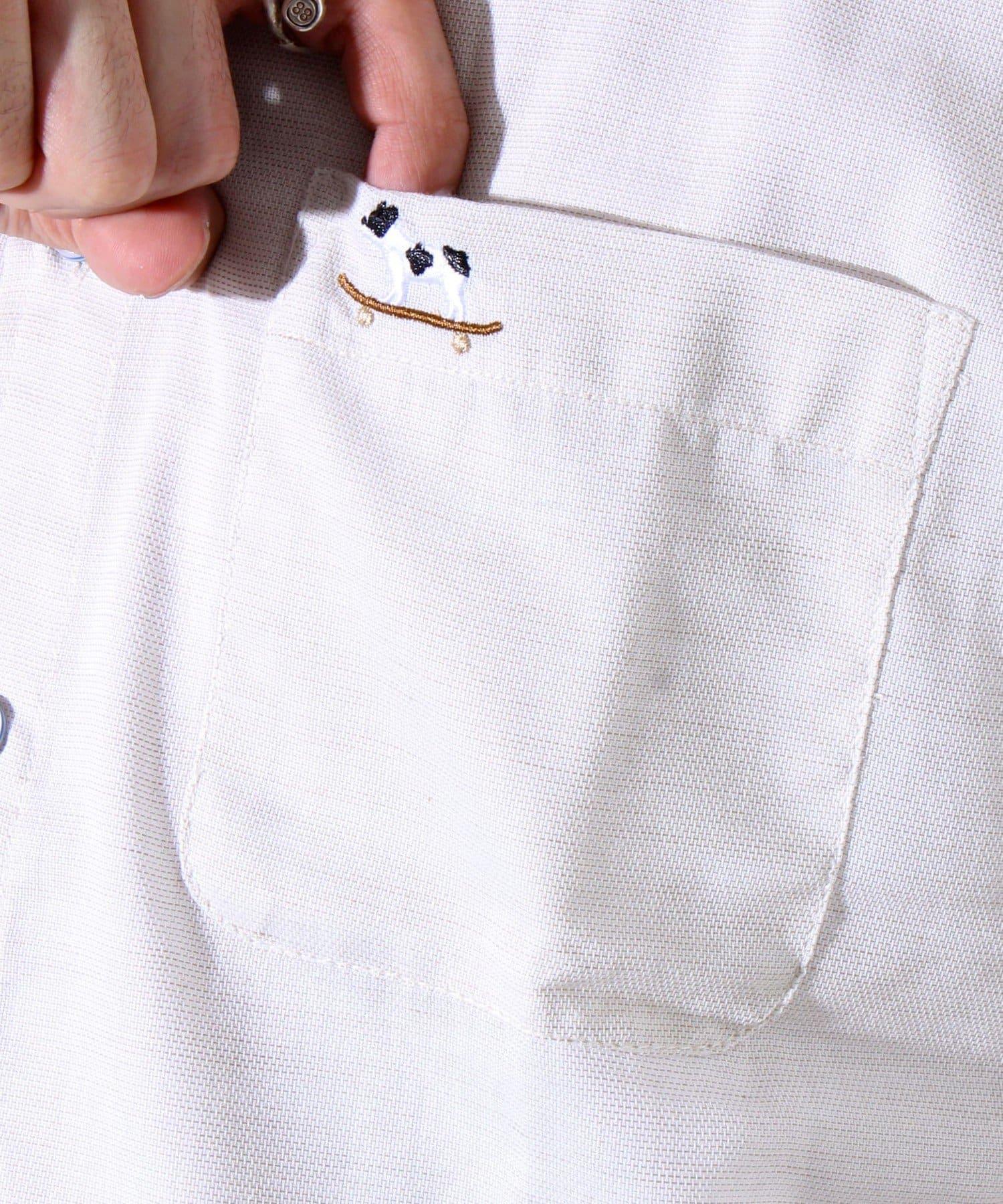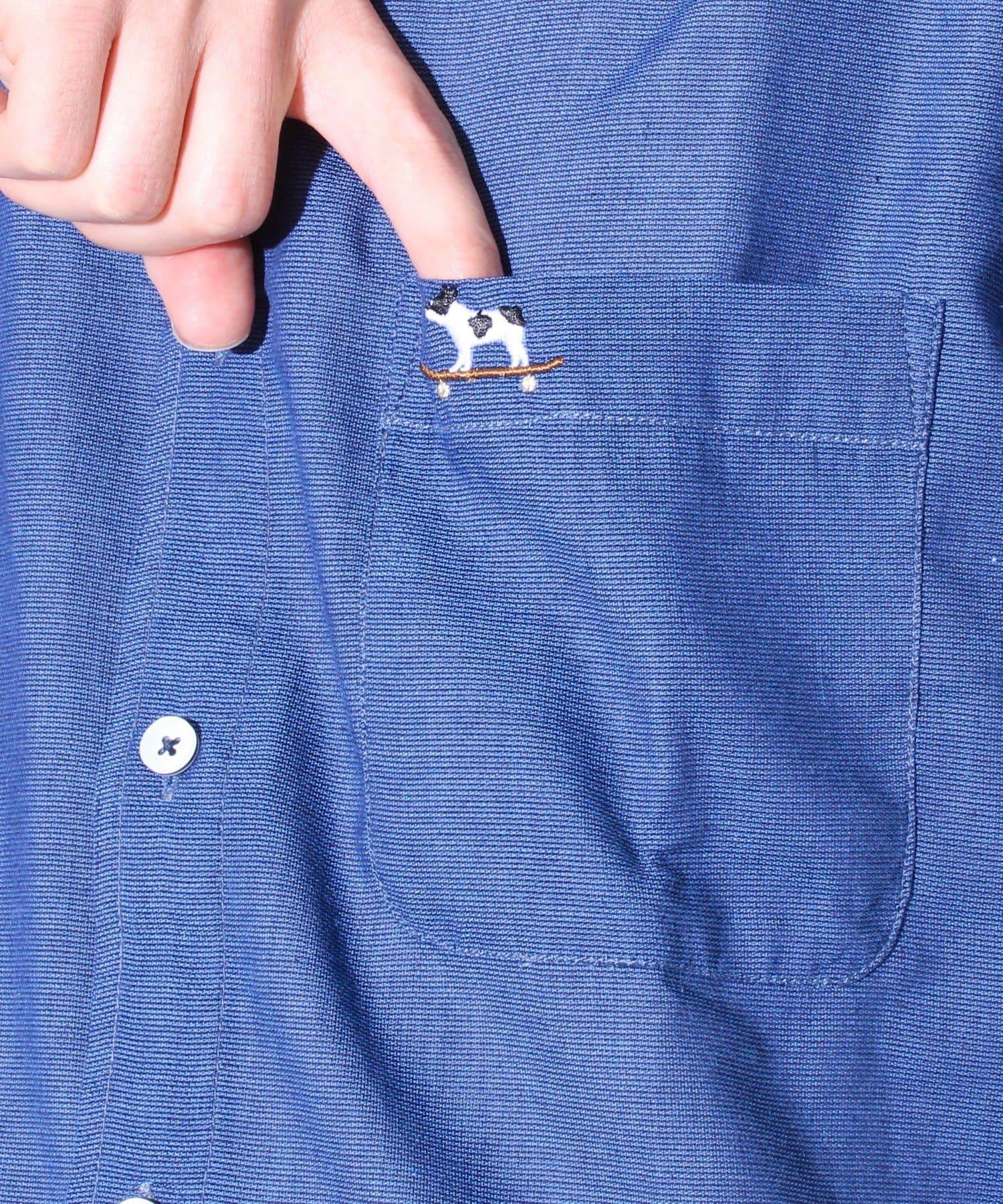 【GLOSTER】法國鬥牛犬刺繡 空中漂浮 短袖襯衫