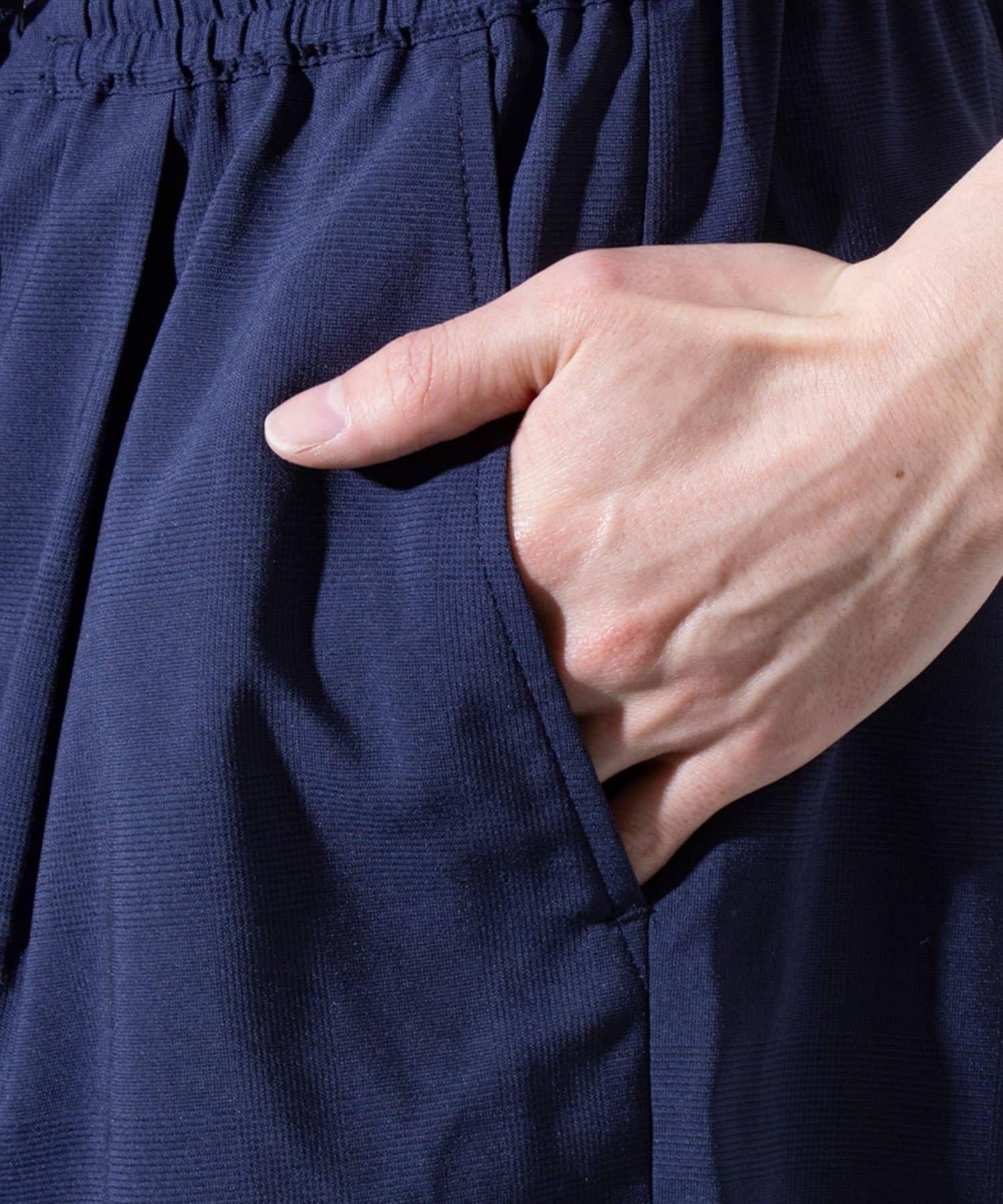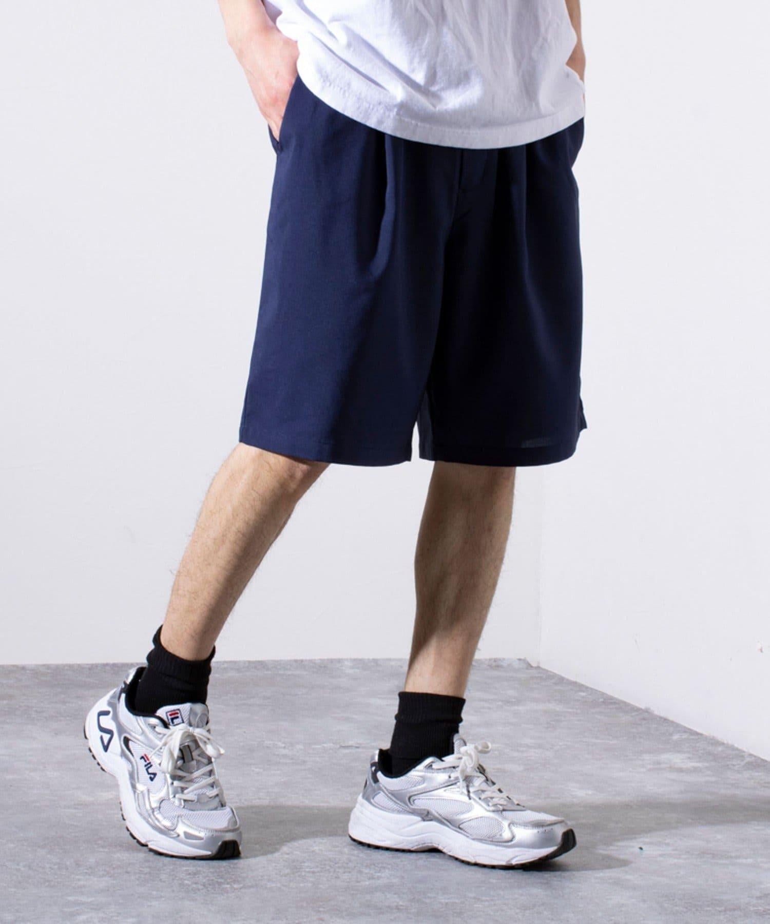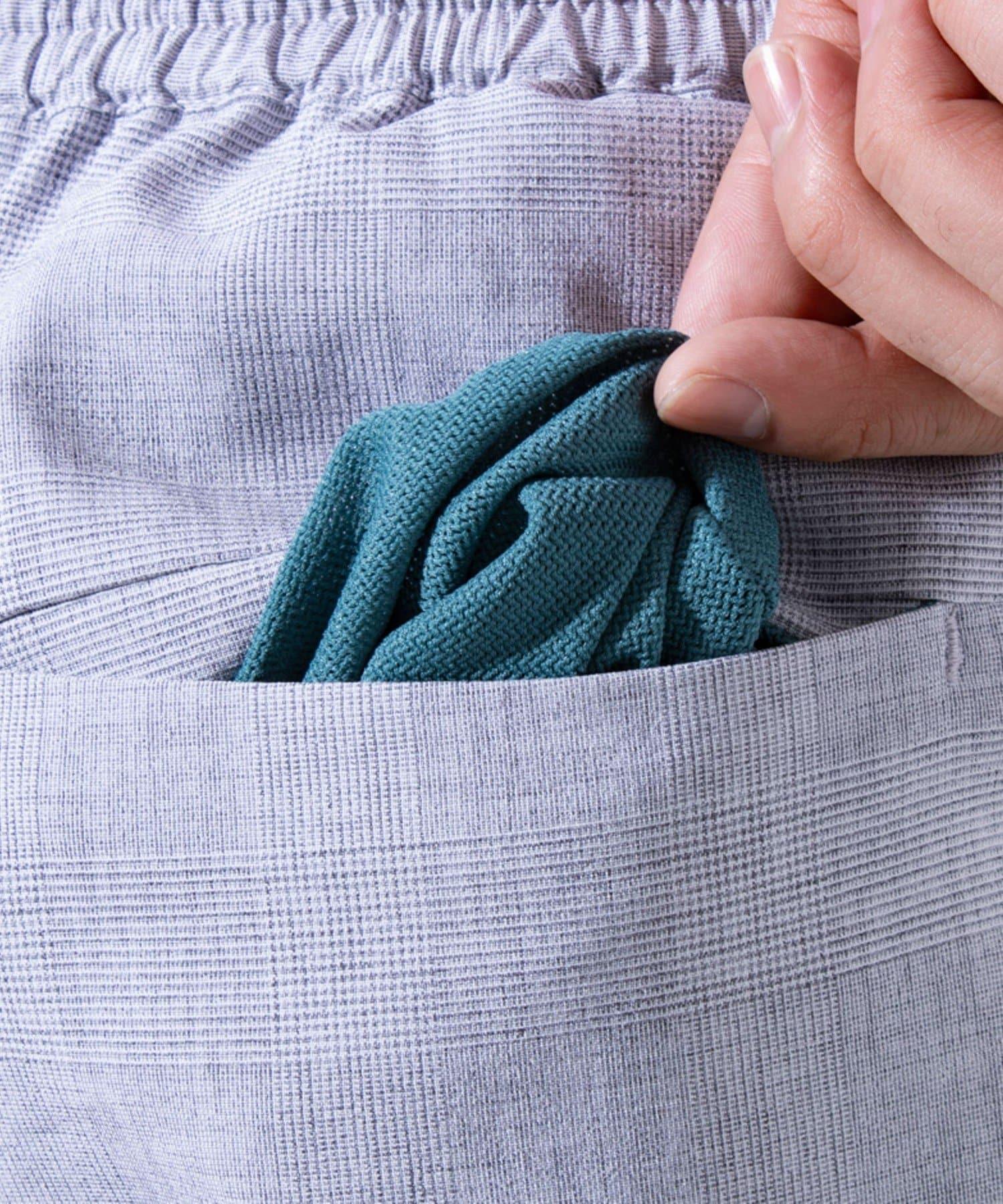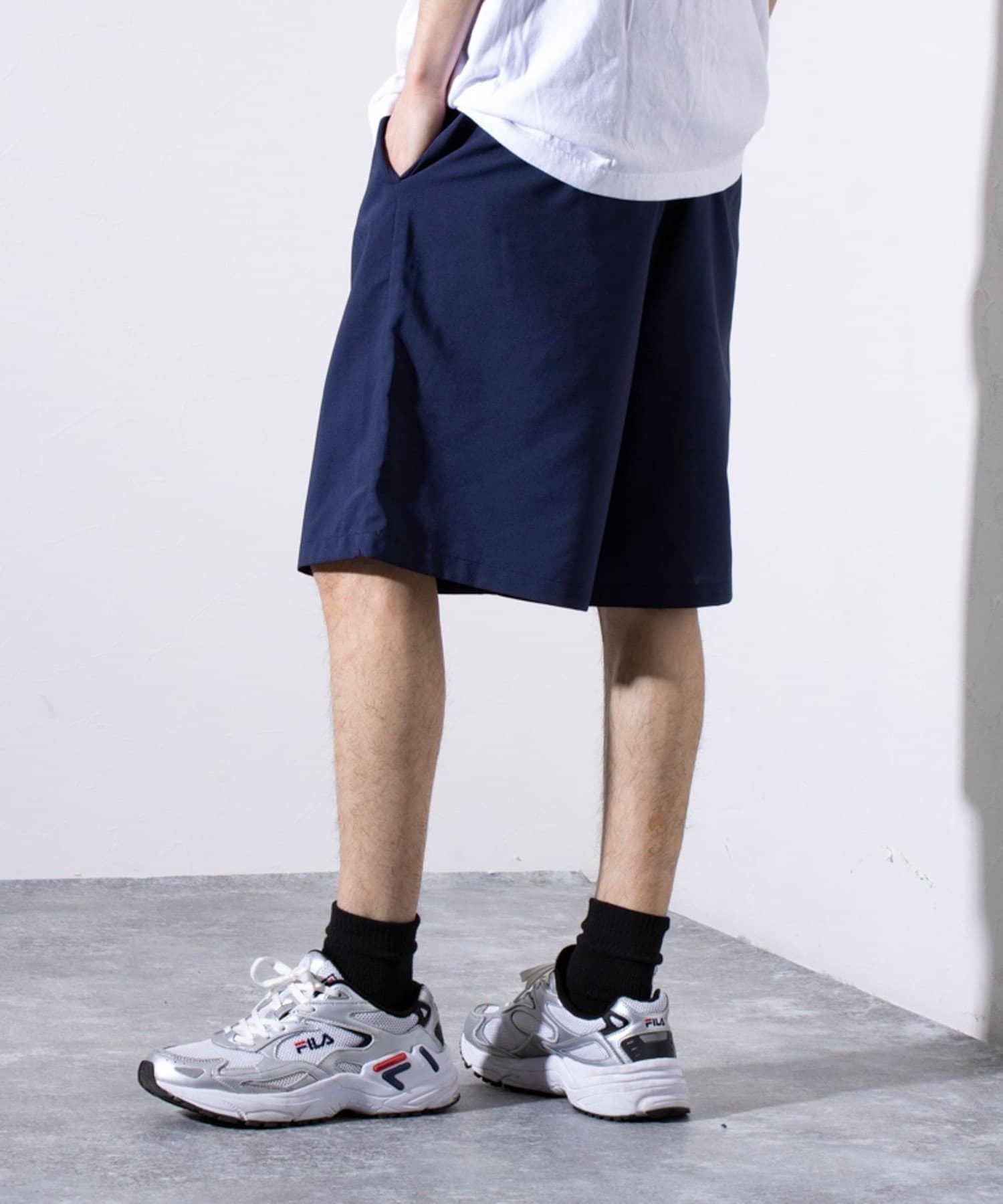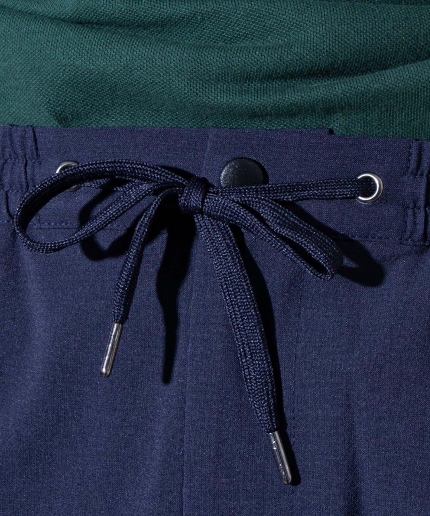 短褲由雙層吸水快乾面料製成,表面由棉紗編織而成,反面由 COOLMAX(一種涼爽的聚酯紗線)編織而成。