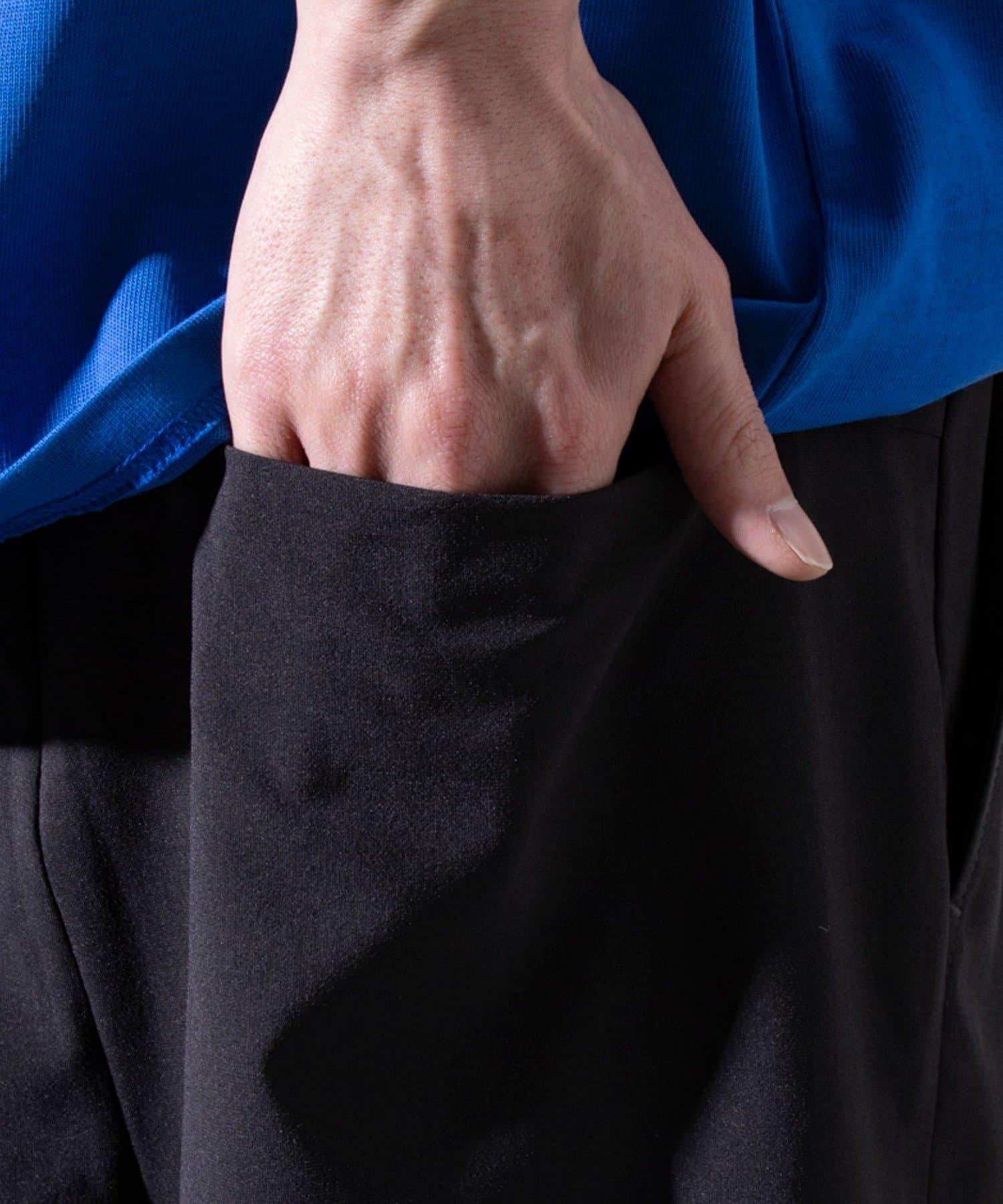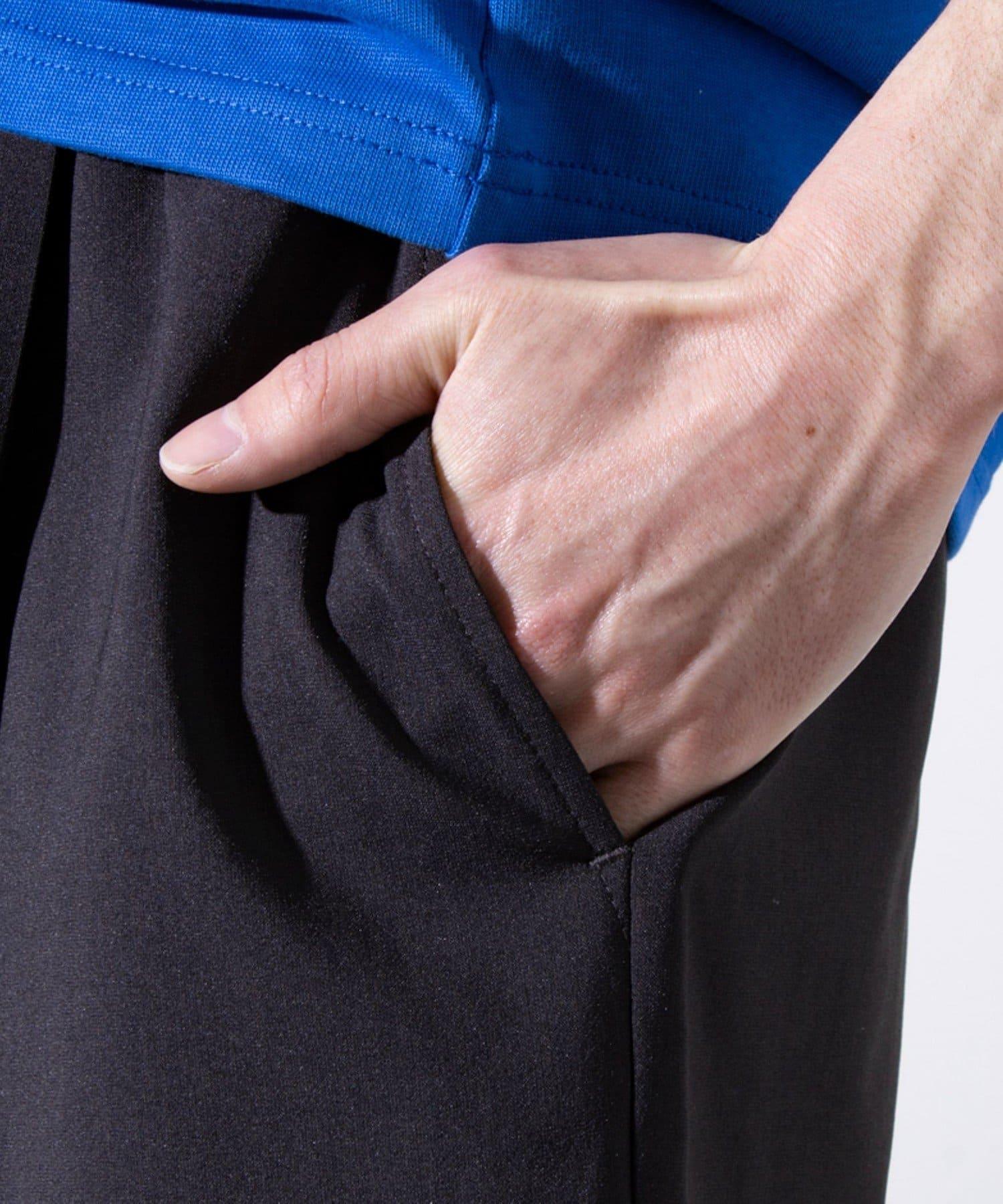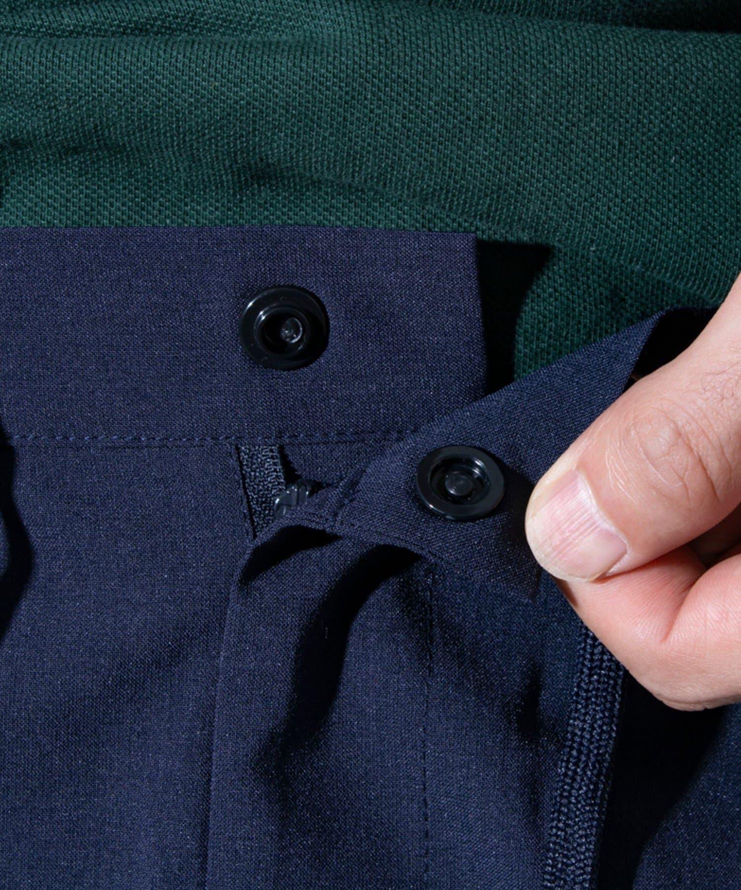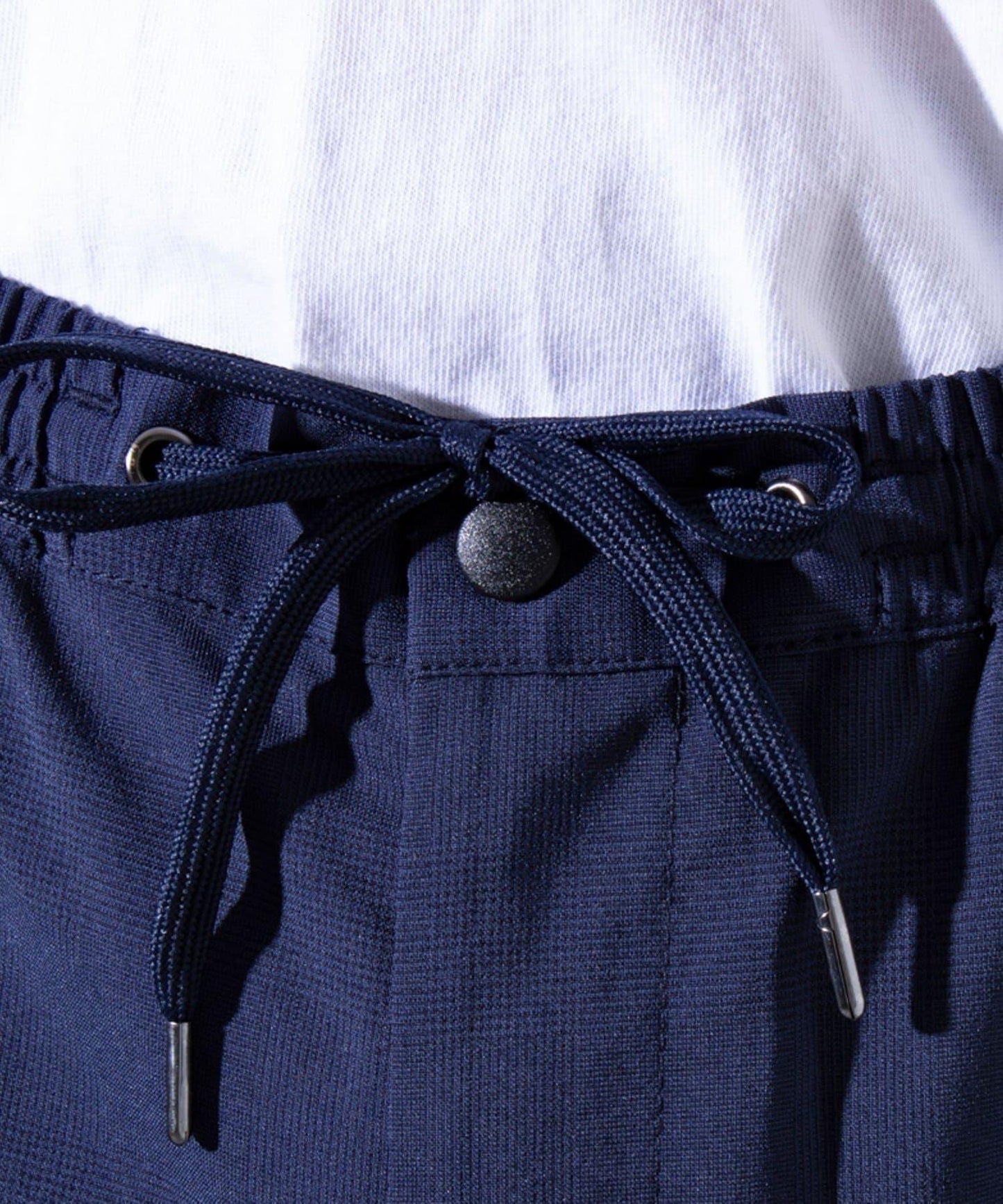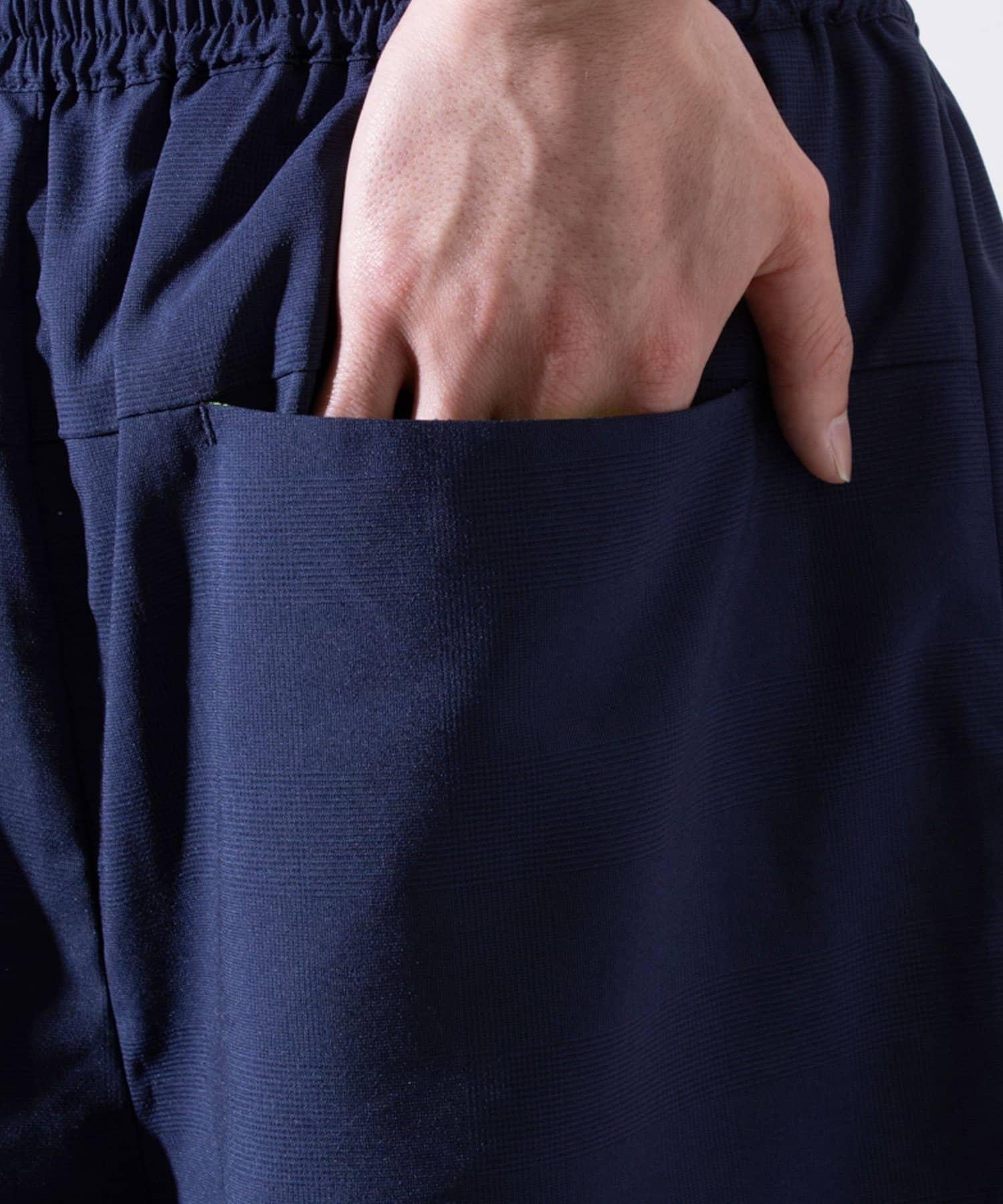 短褲由雙層吸水快乾面料製成,表面由棉紗編織而成,反面由 COOLMAX(一種涼爽的聚酯紗線)編織而成。