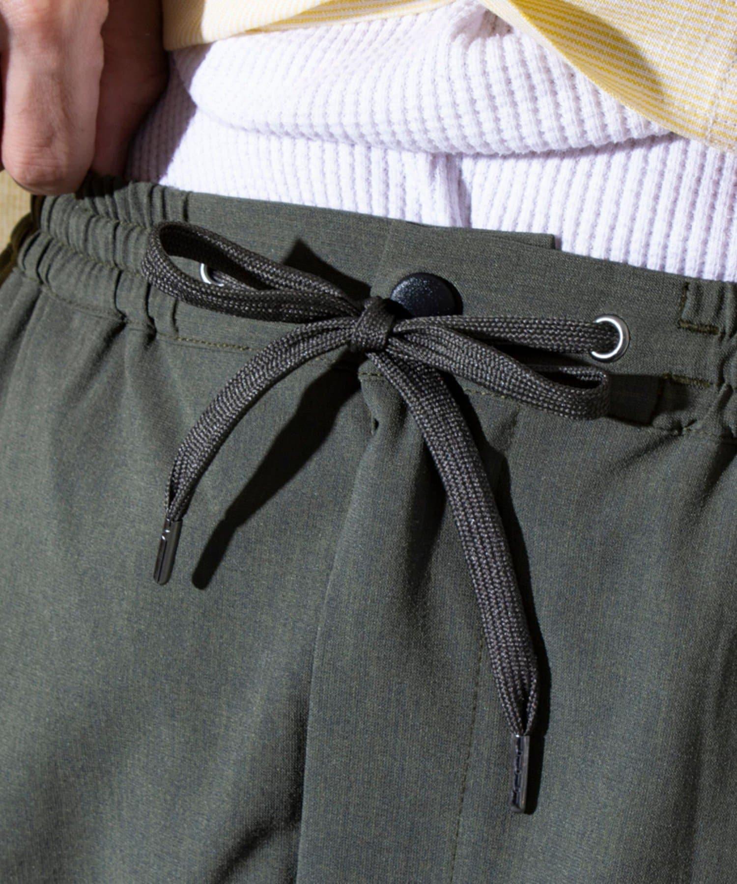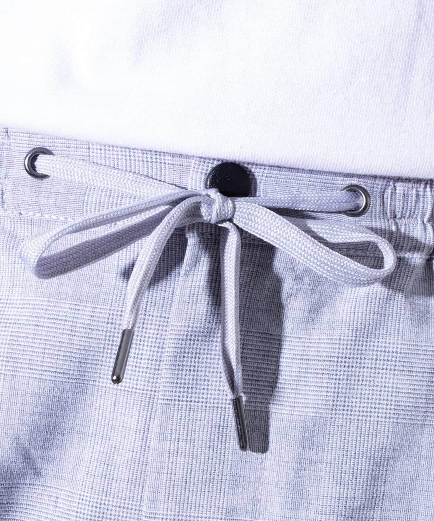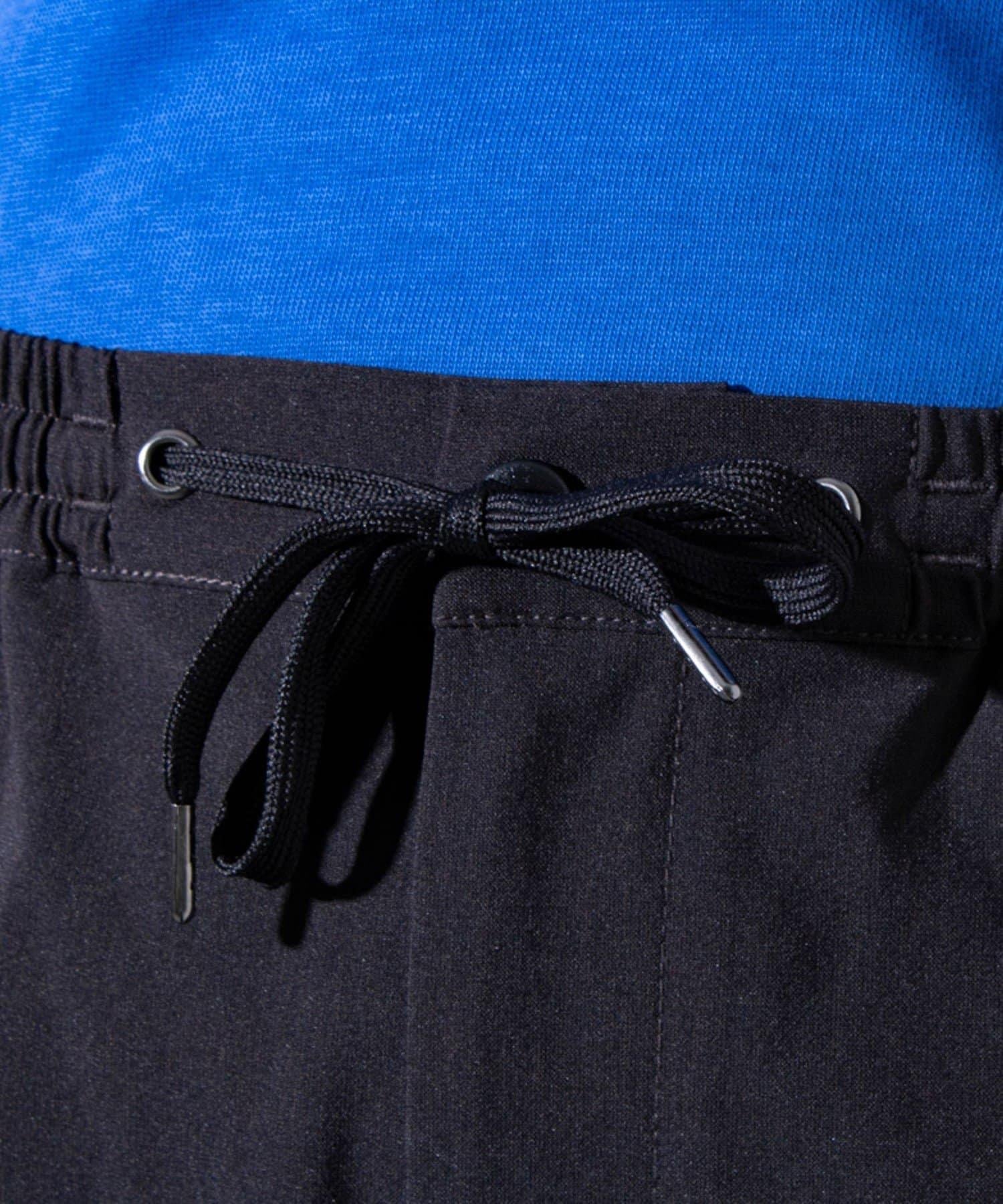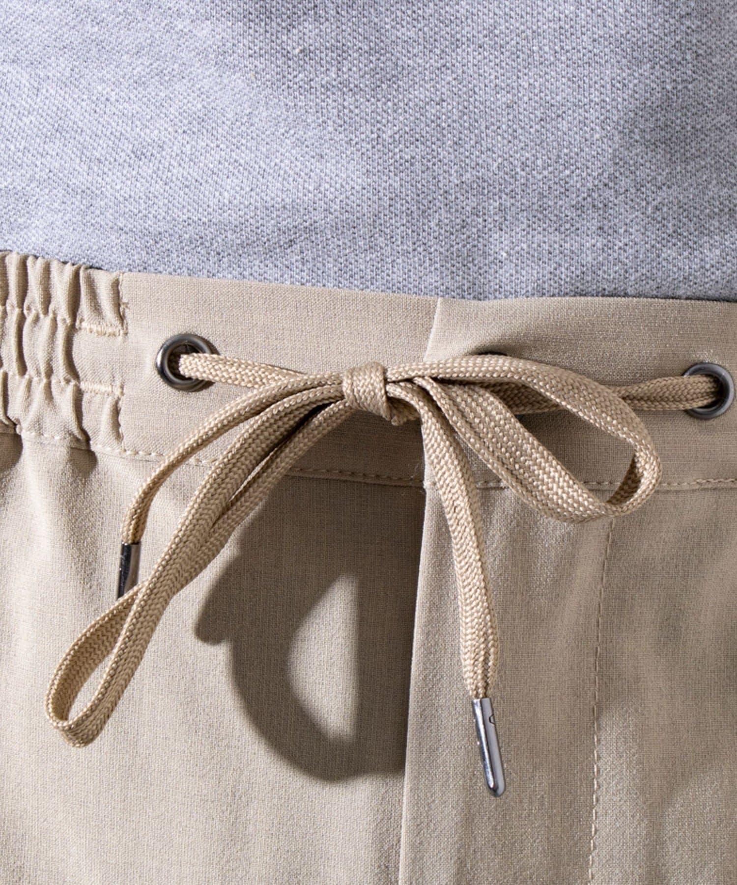 簡易褲型,腰部鬆緊帶和抽繩設計,寬鬆合體。