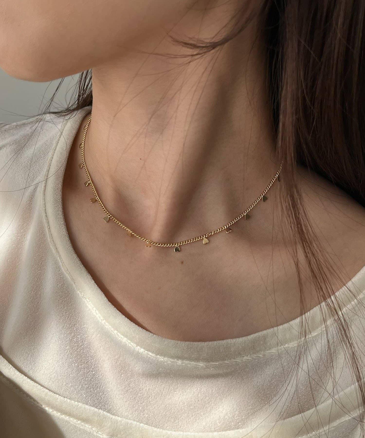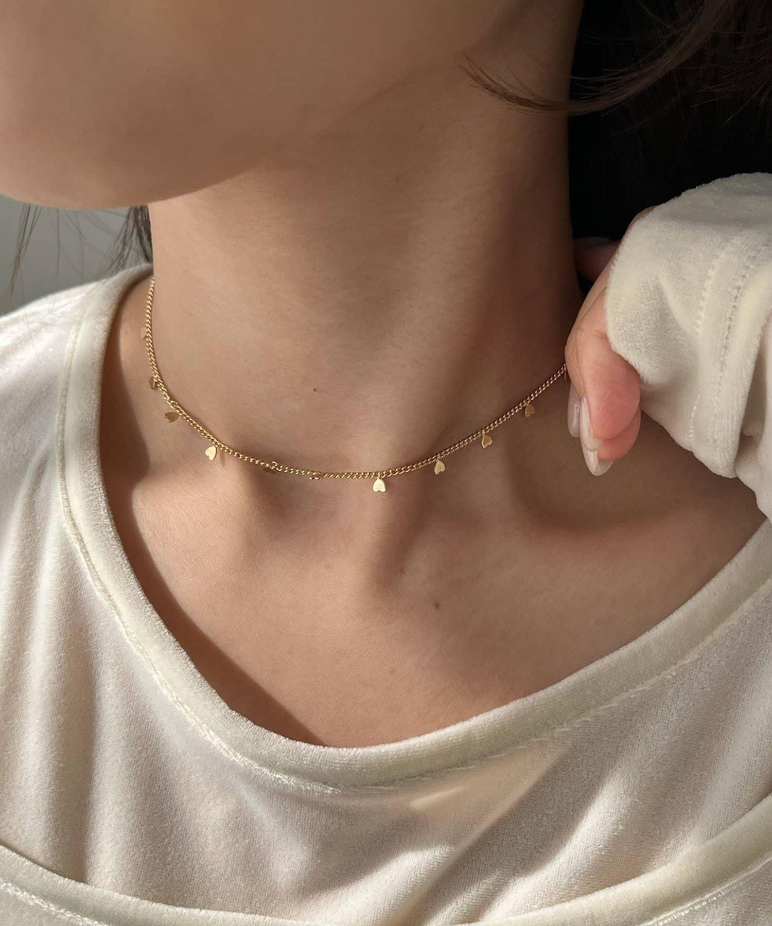 帶有迷你心形圖案的項鍊,精緻而易於佩戴,適合成年女性。
