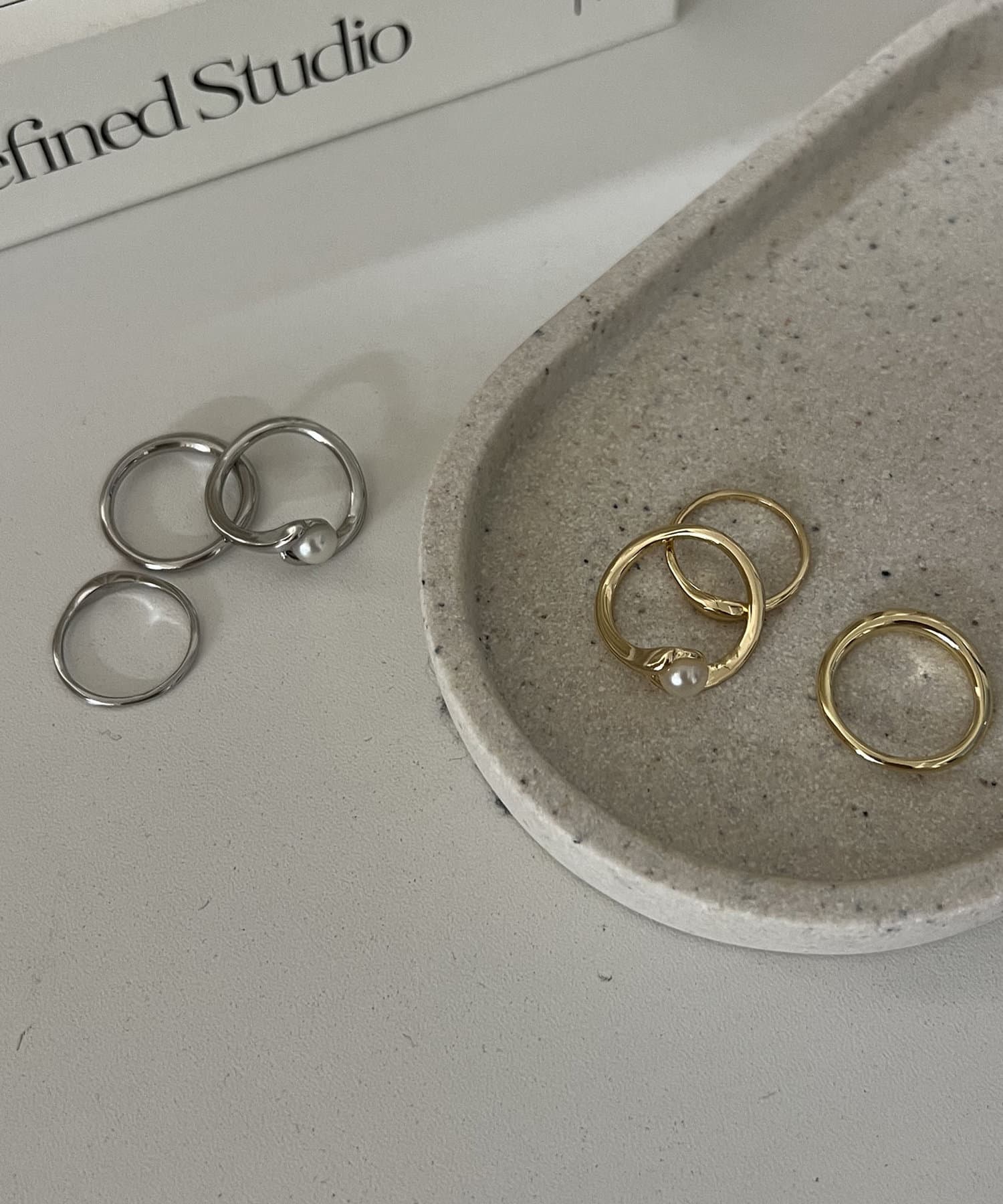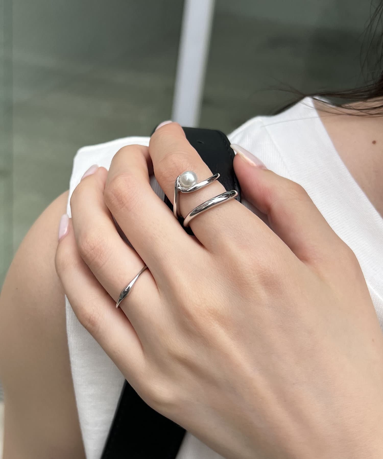 設計為一套三枚戒指:線條細膩的珍珠戒指與簡潔的戒指相結合。