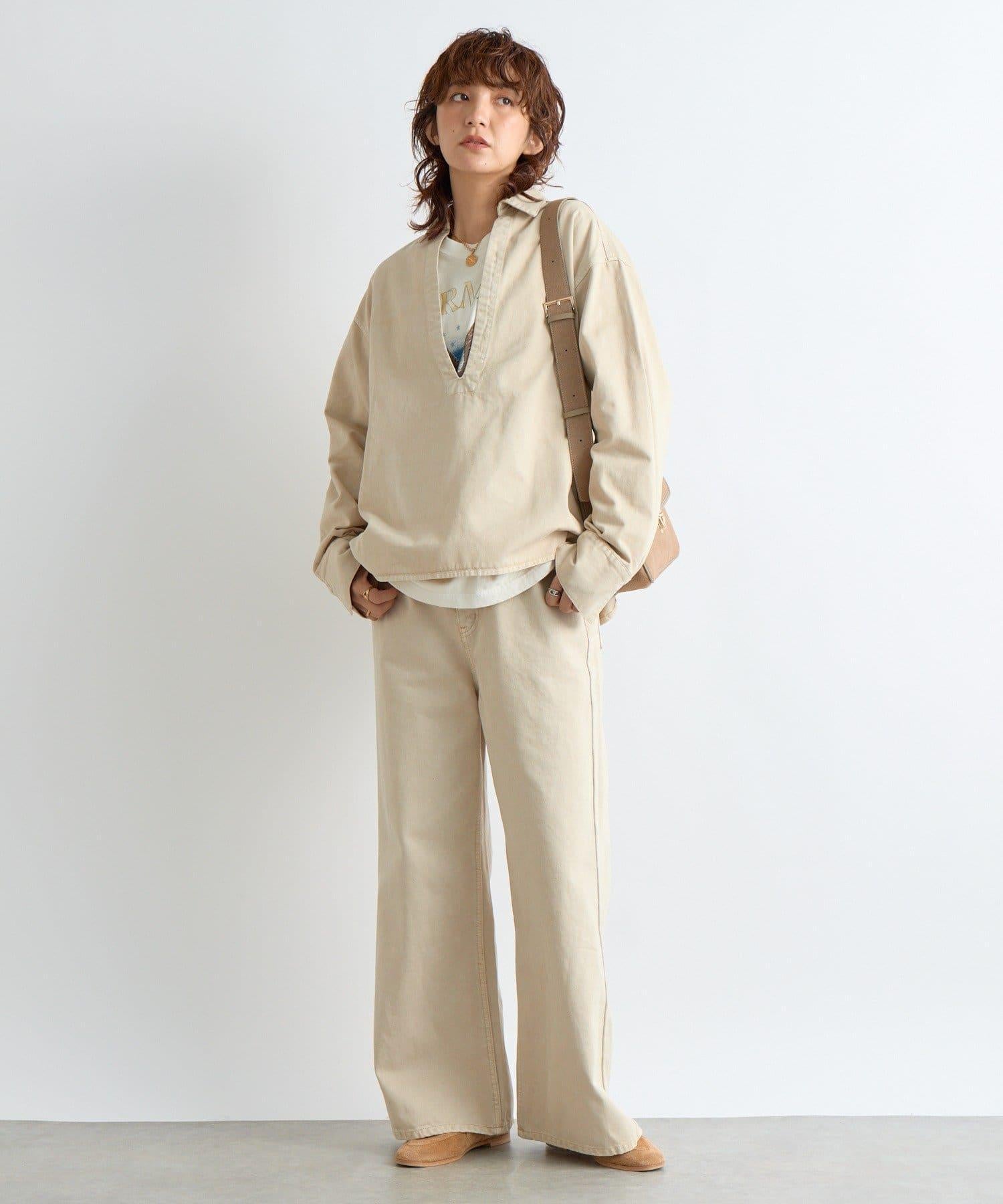 由於加工特性,表面會隨著反覆穿著和洗滌而逐漸變白,因此每次洗滌時您都可以欣賞到服裝的色調變化。