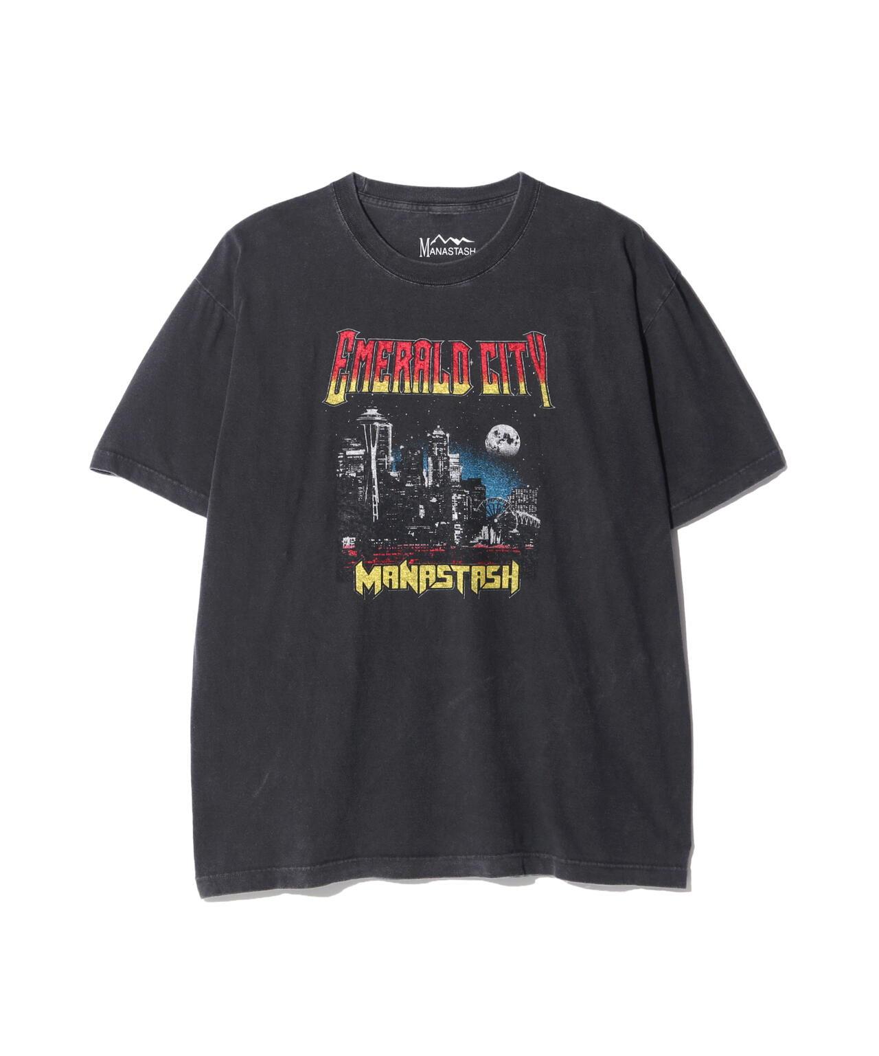 GOOD ROCK SPEED x MANASTASH 特別定製翡翠城合作款 T 恤《男/女/中性》特別設計融入了 MANASTASH 的創立地西雅圖的街道。西雅圖別名 "翡翠之城 "的圖案被印在復古廂式 T 上。此特別設計僅在 MANASTASH 有售!建議女士穿 M 碼。敢於搭配裙子或乾淨的長褲 ◎推薦男士 L 和 XL 尺寸。肉感適中的 T 恤。
