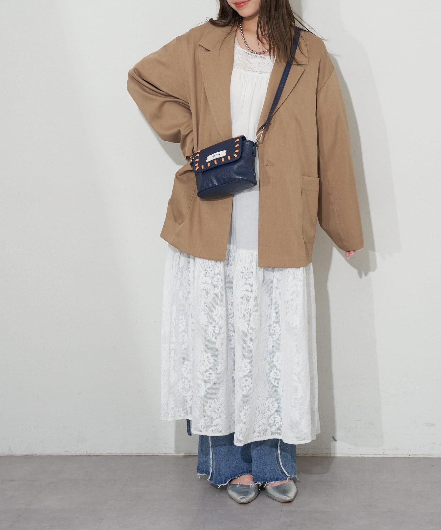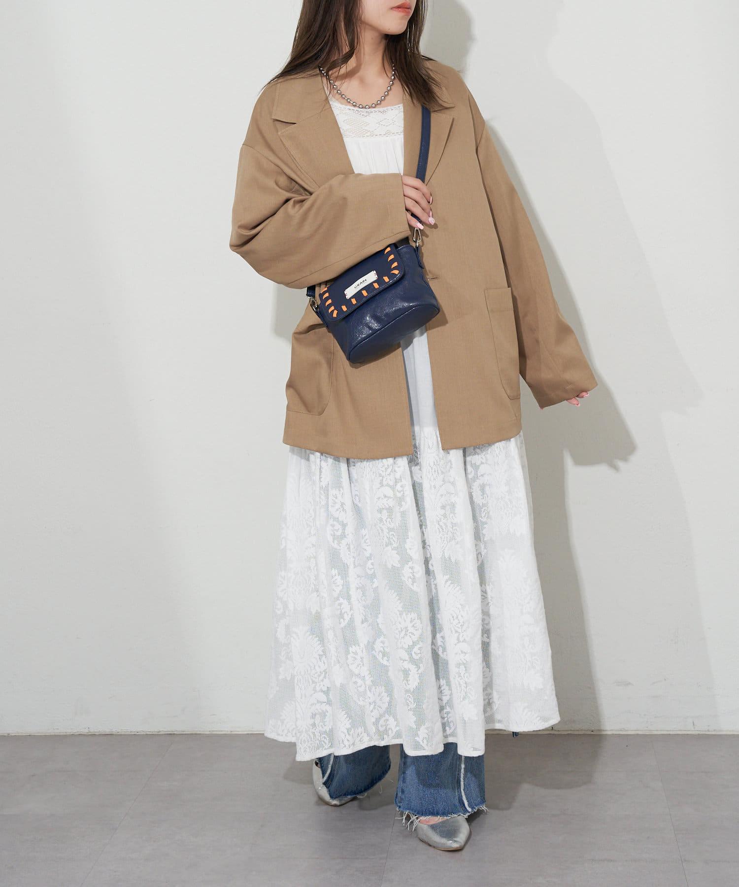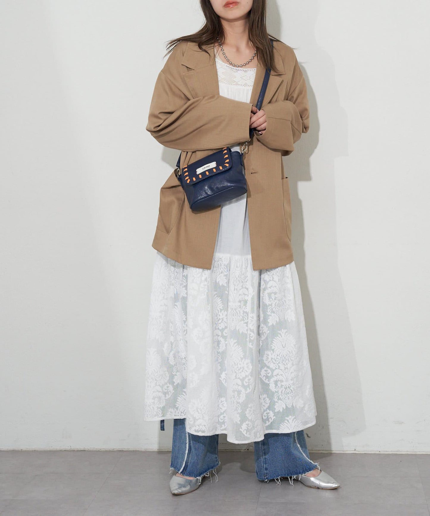 只需將其搭配牛仔褲和白 T 的簡約款式,即可營造出閒適的時尚印象。